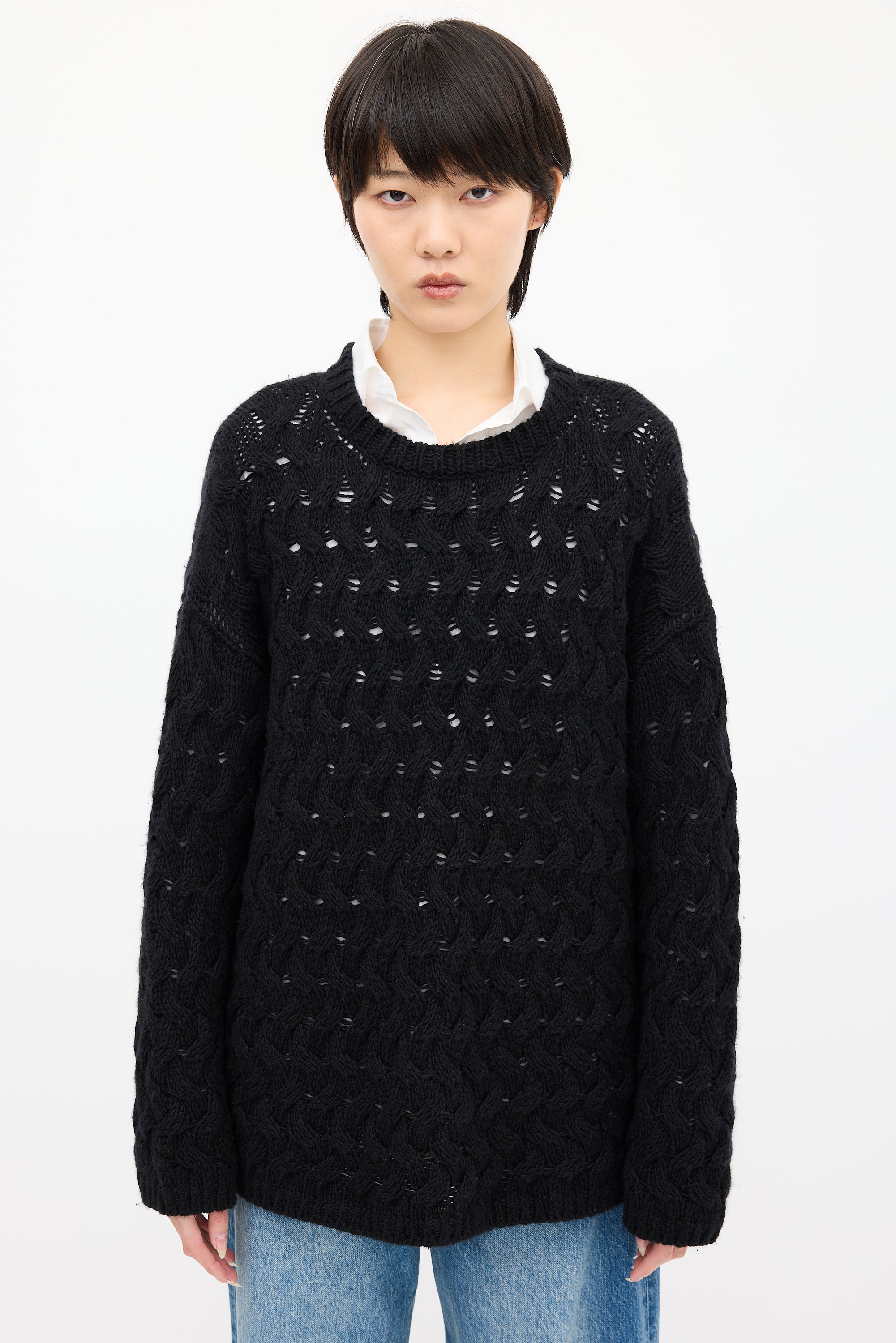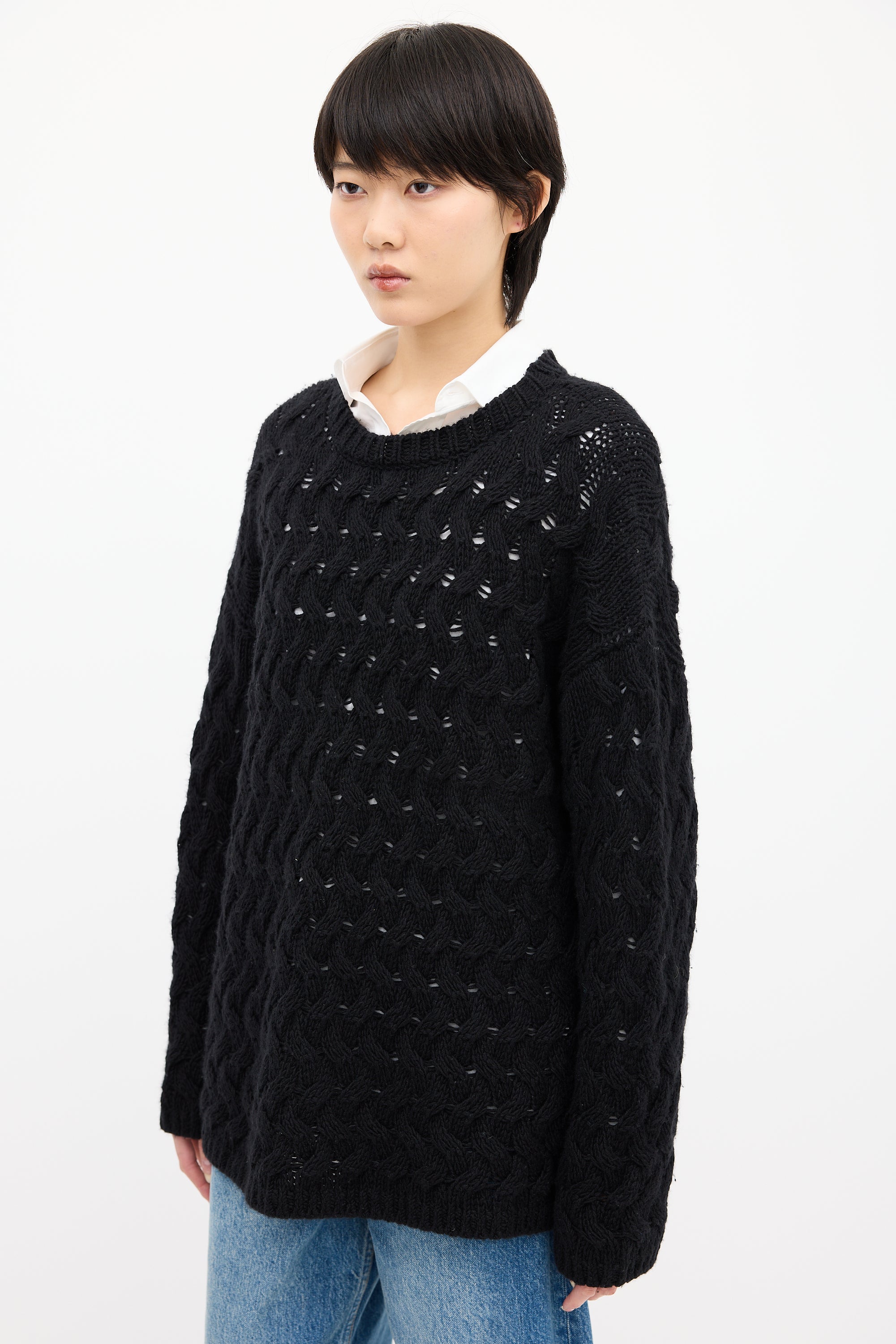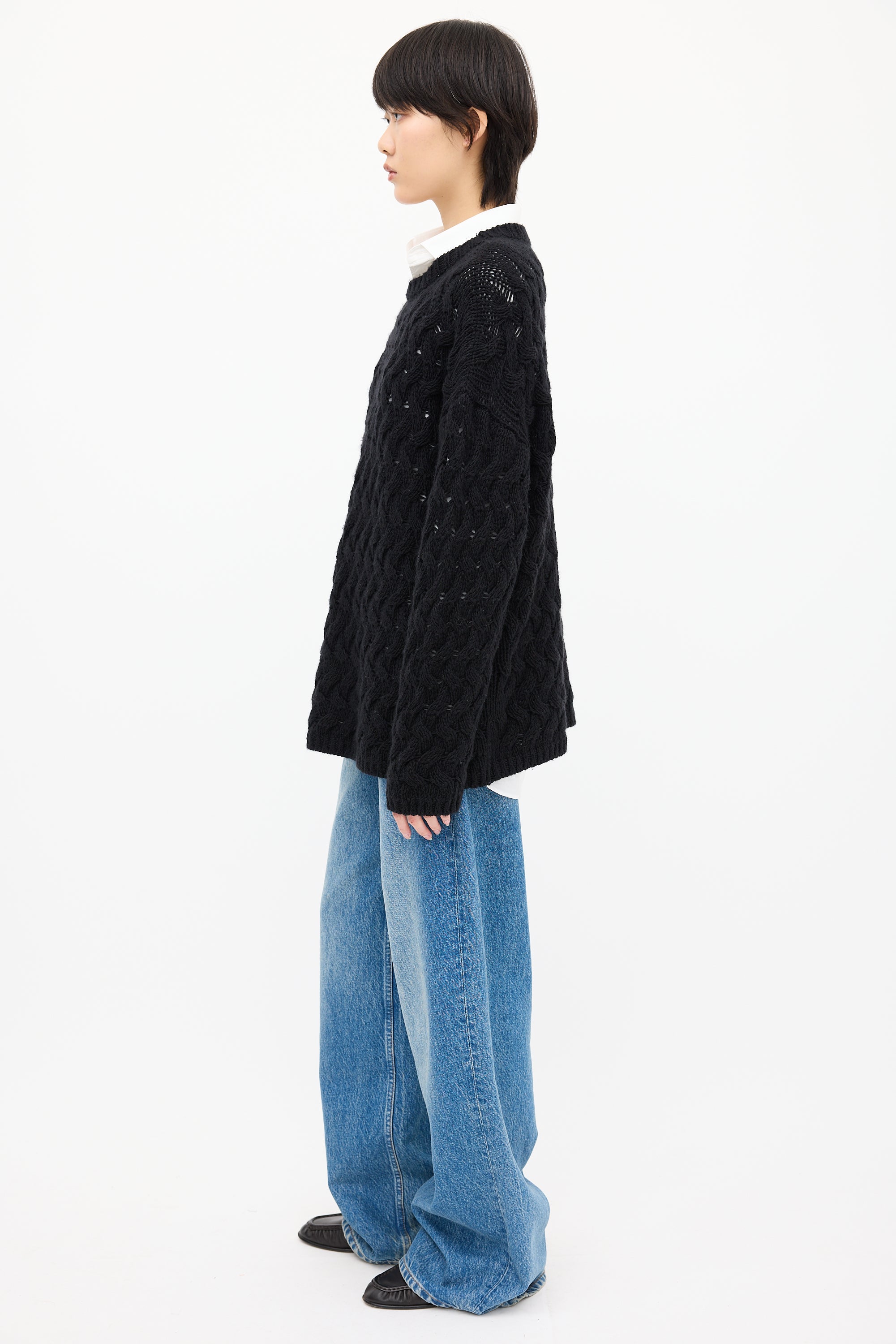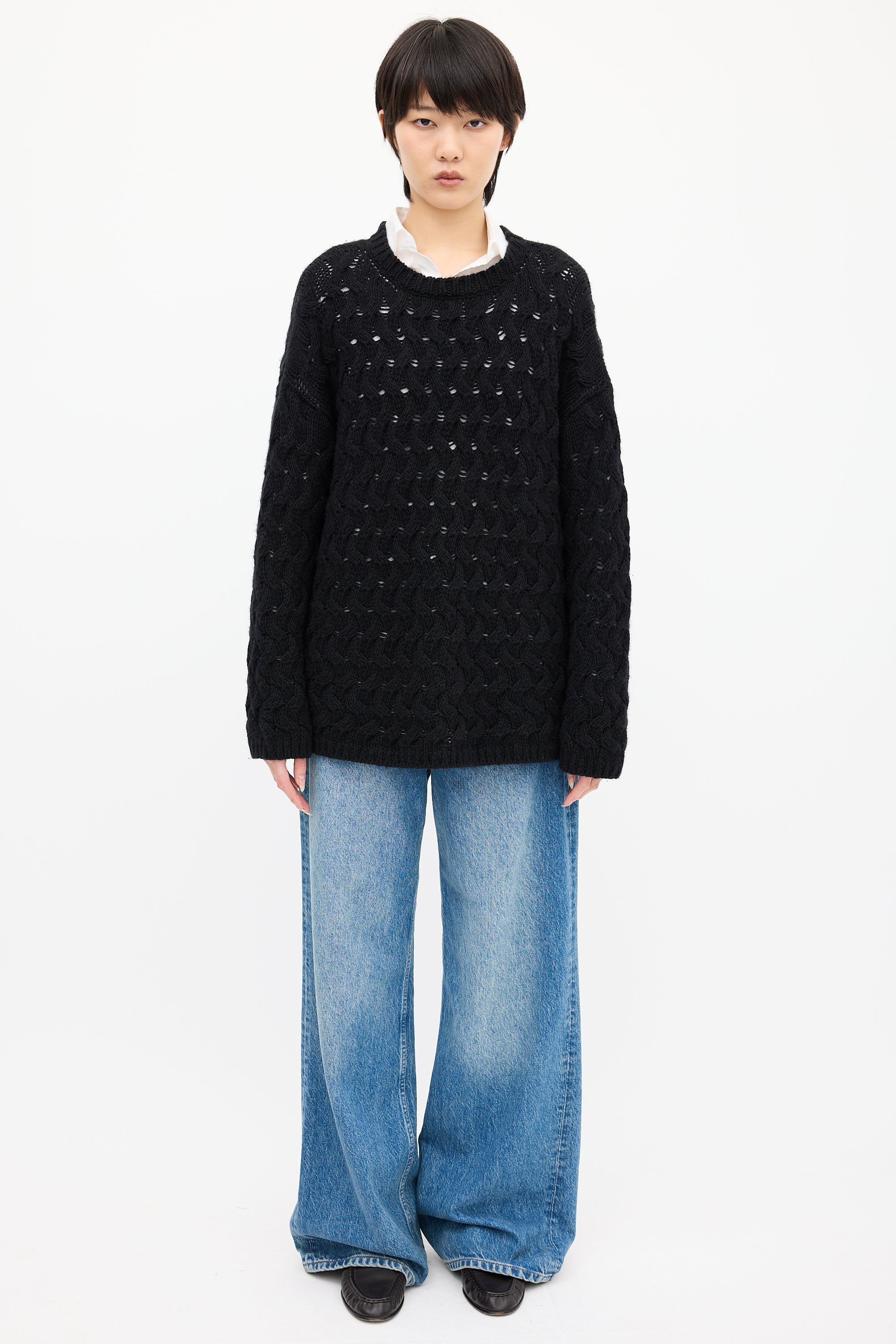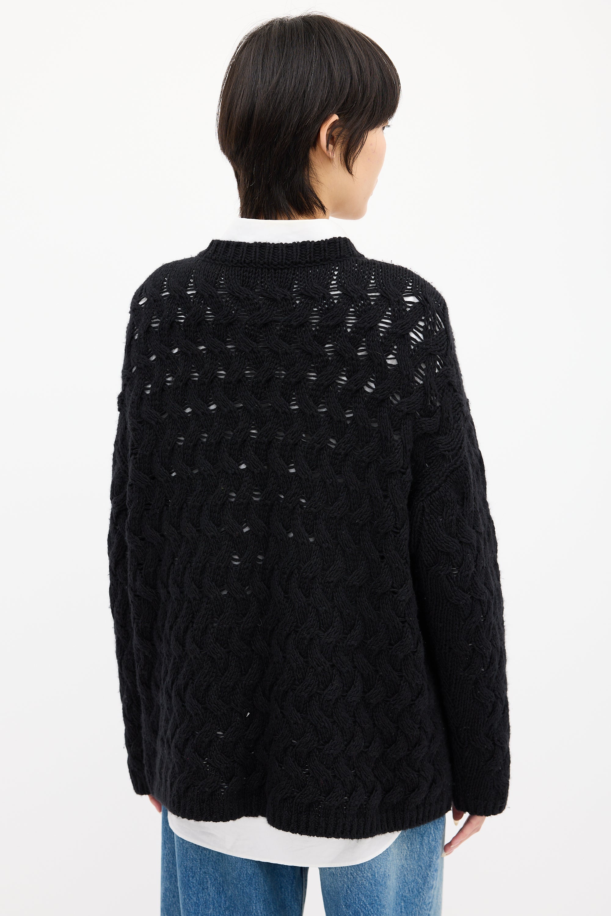 Pre-owned The Row black cashmere and silk sweater featuring crew neckline, swirl cable knit, and ribbed hem.