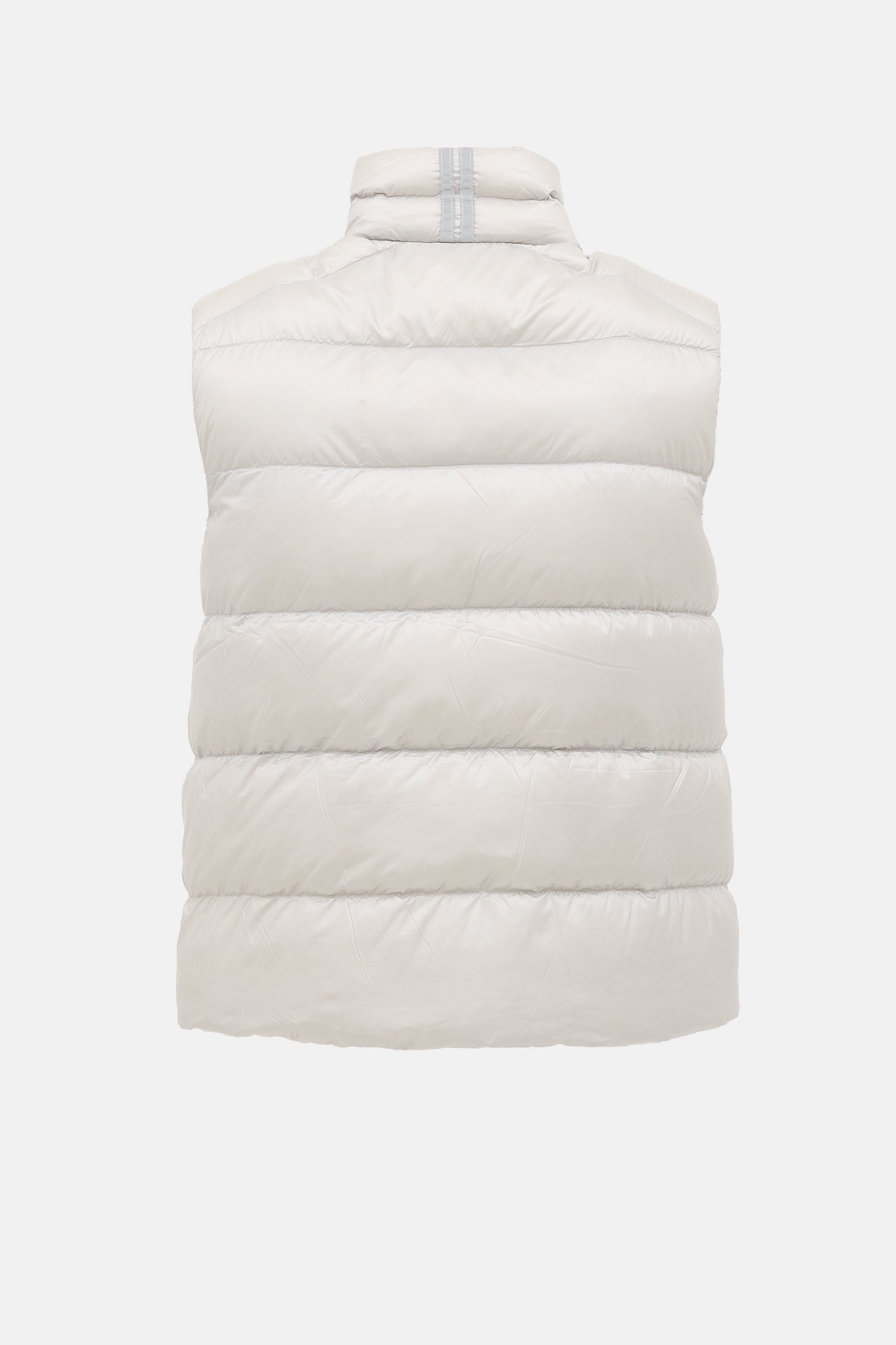 Pre-owned Canada Goose grey down-filled Cypress Arctic Florals vest featuring a stand collar, two way zip front, white rubber logo patch at chest, two zip pockets at hip, and reflective striping at back collar.