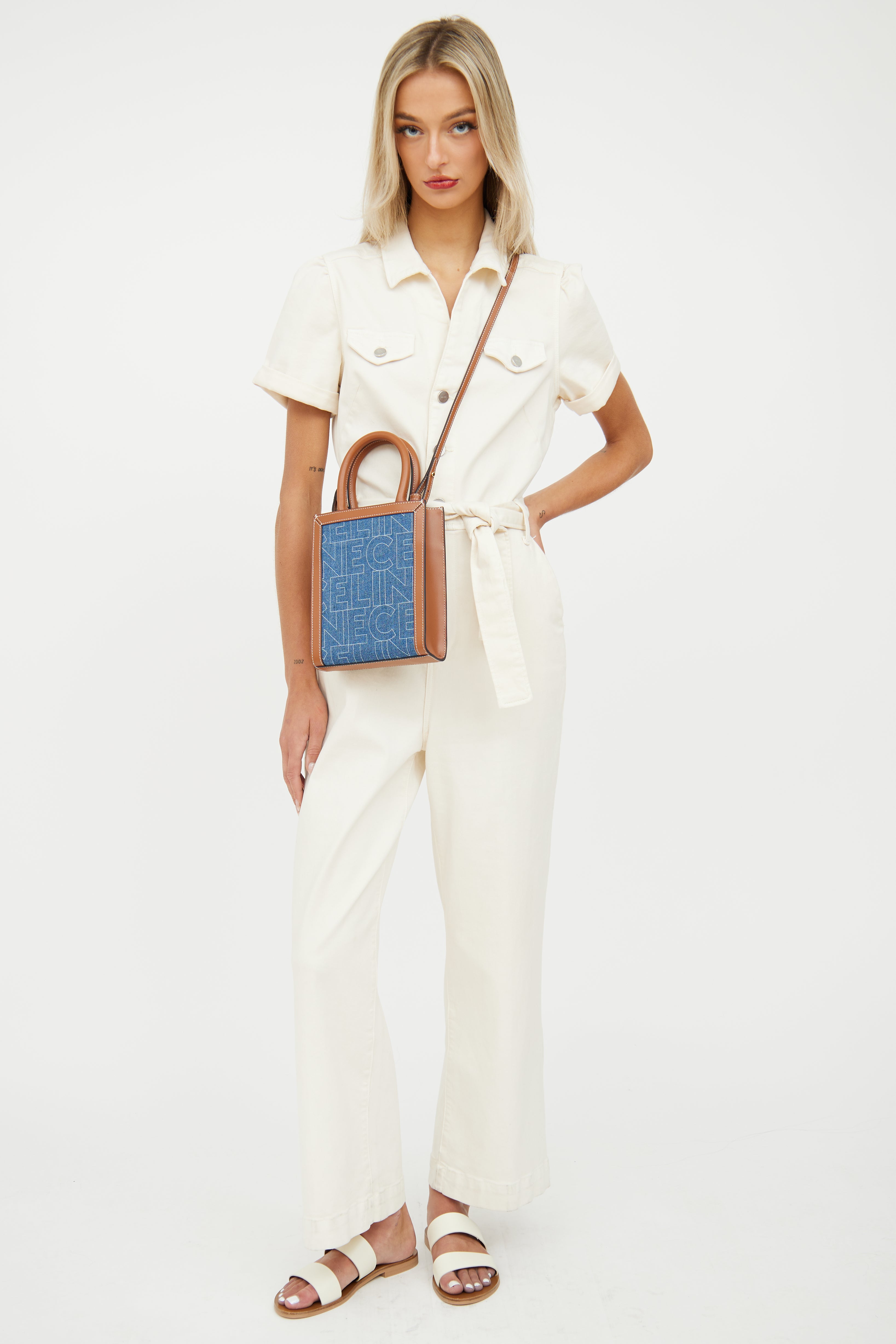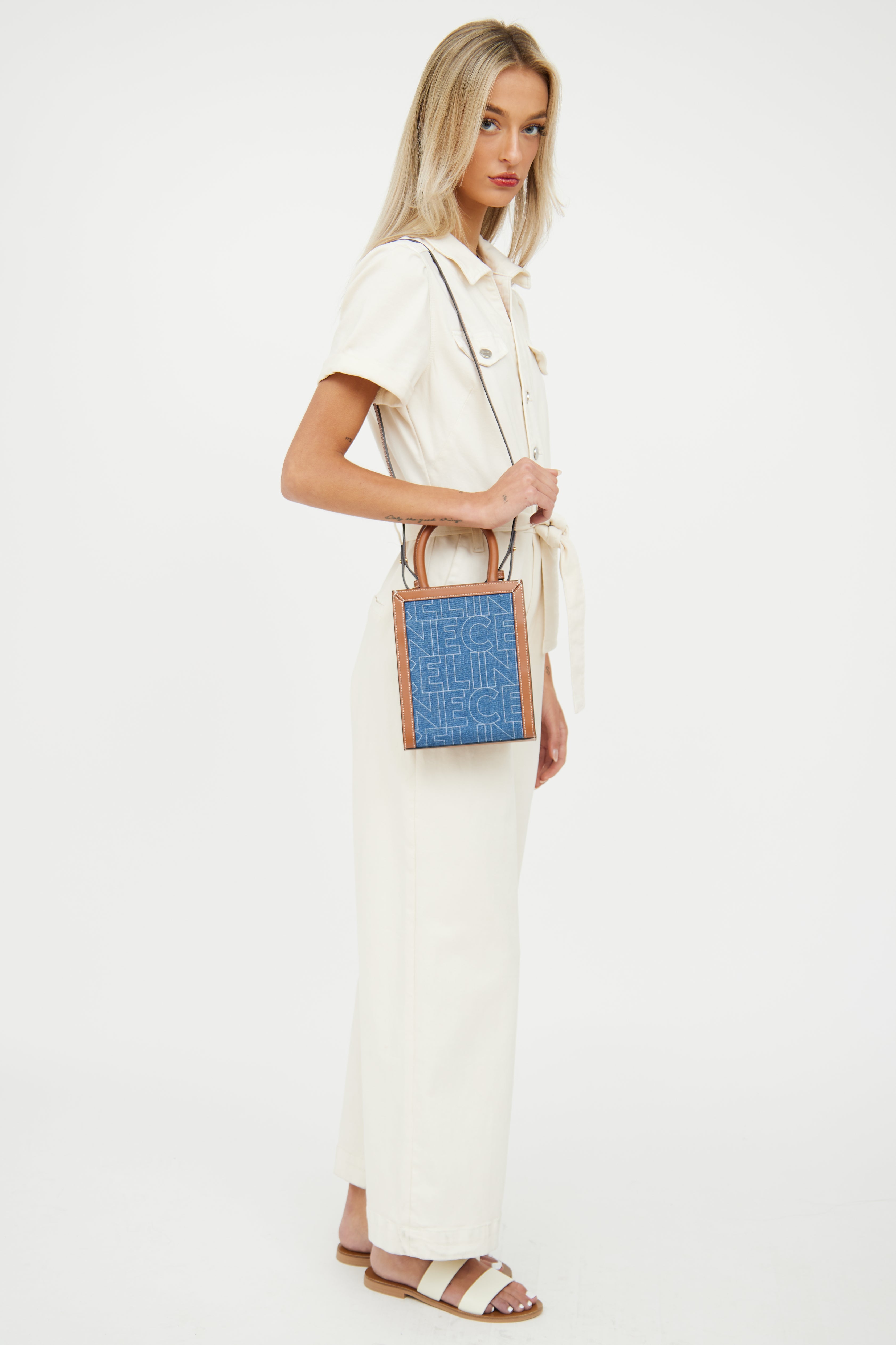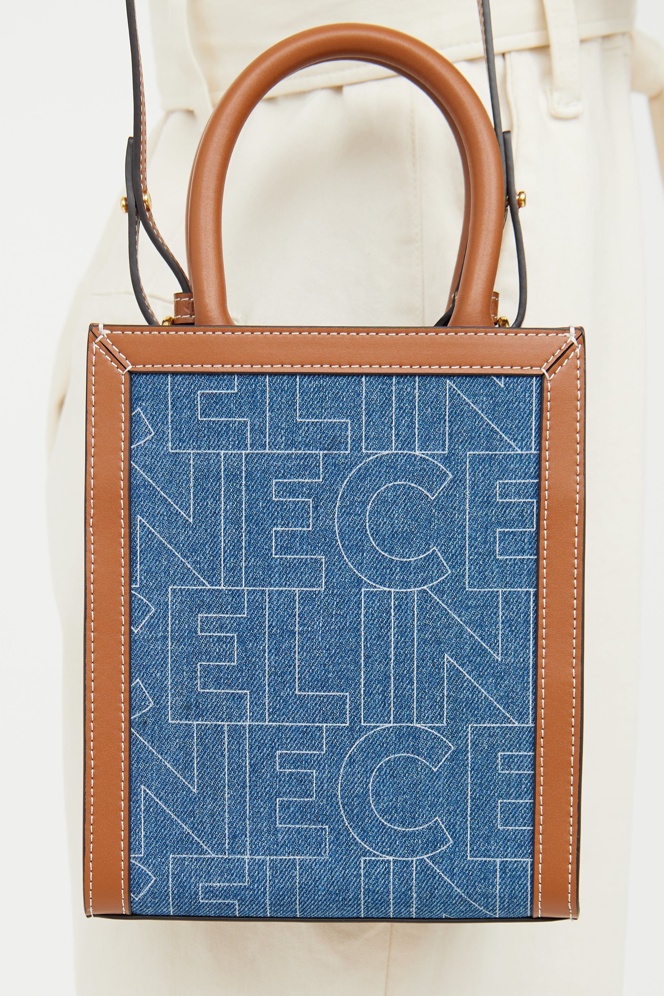 Denim & Brown Leather Mini Vertical Cabas Bag