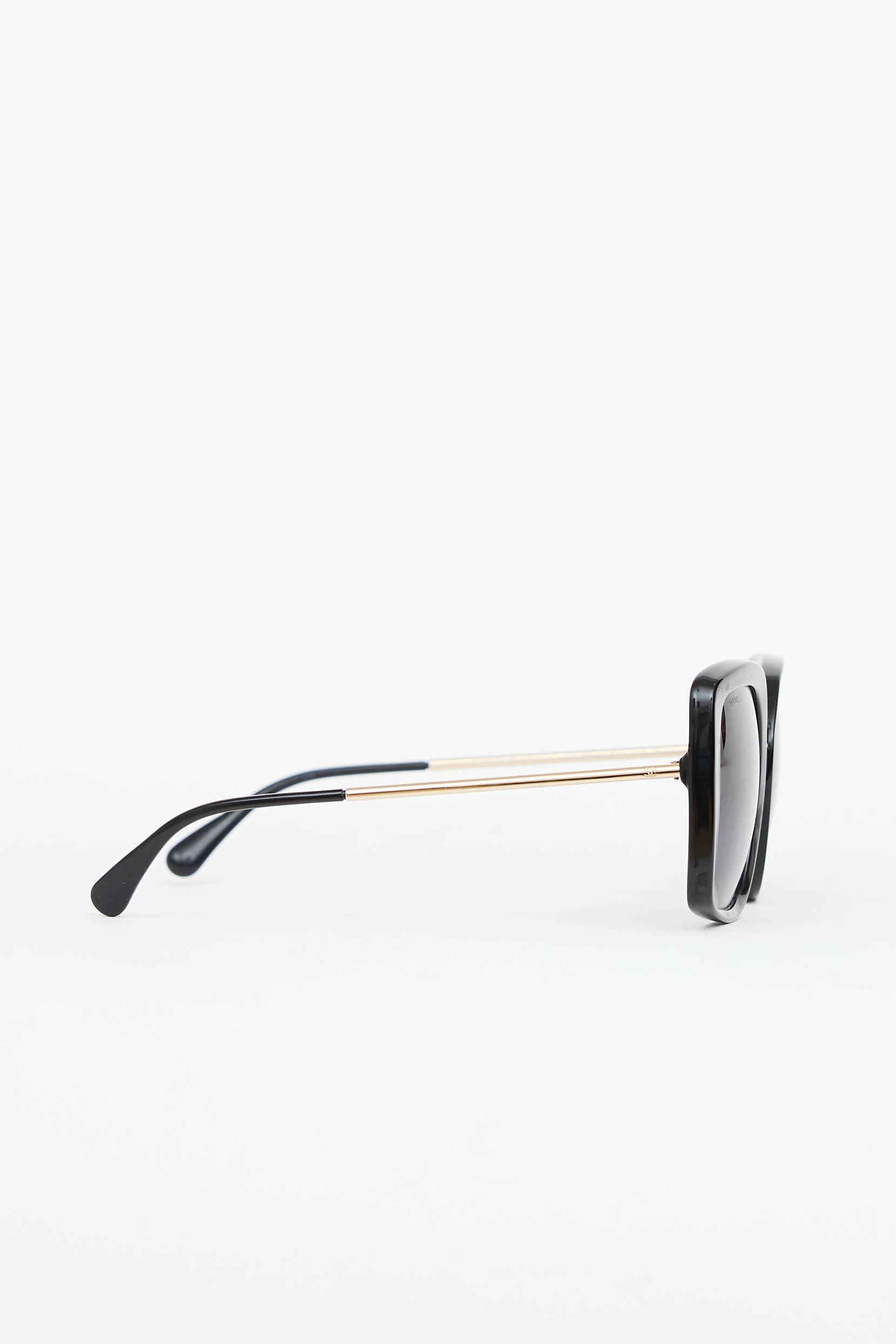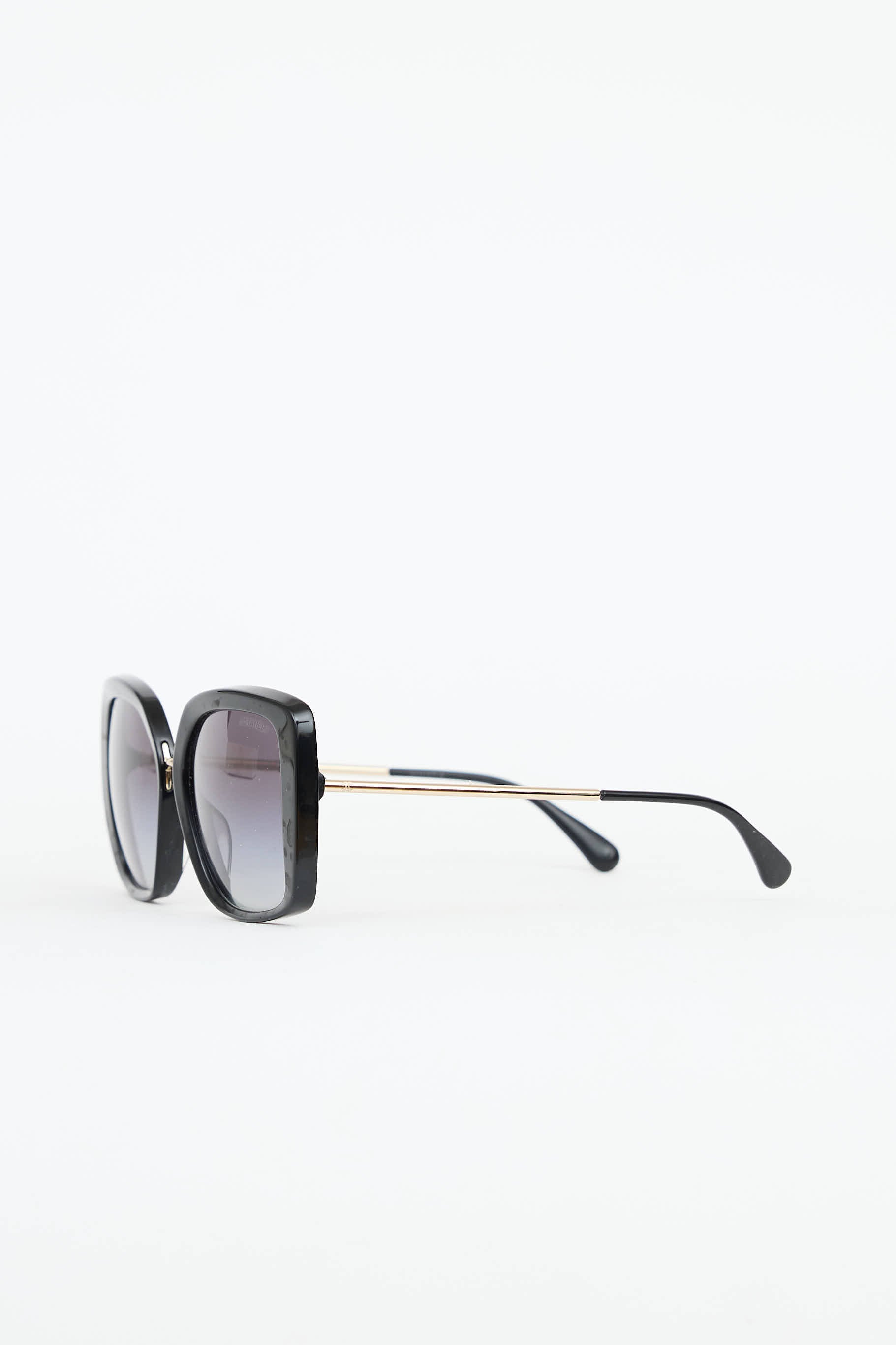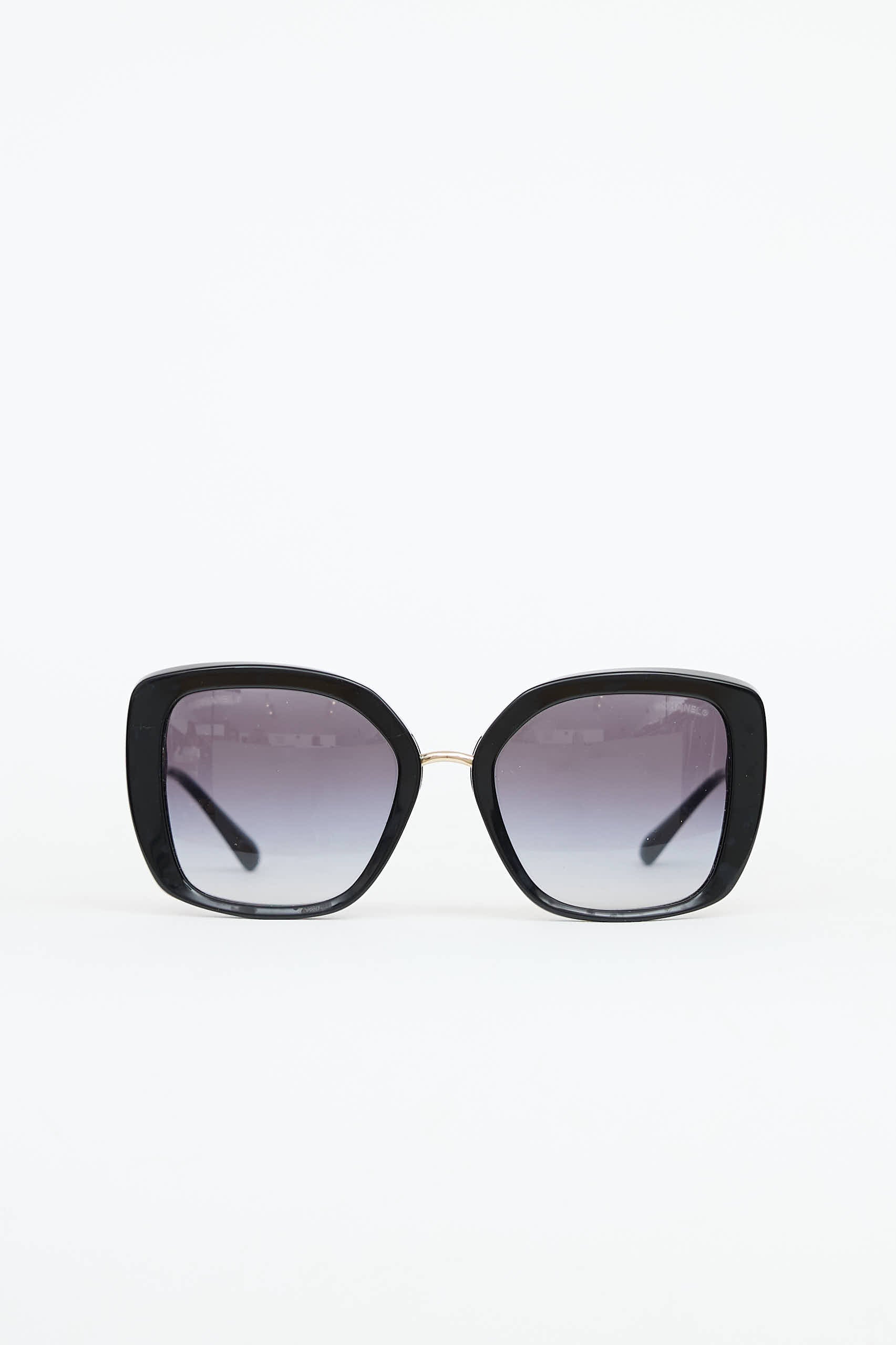 Pre-owned Chanel 5401-A sunglasses featuring black square frames, grey gradient lenses, silver tone hardware, and debossed logo at temples.