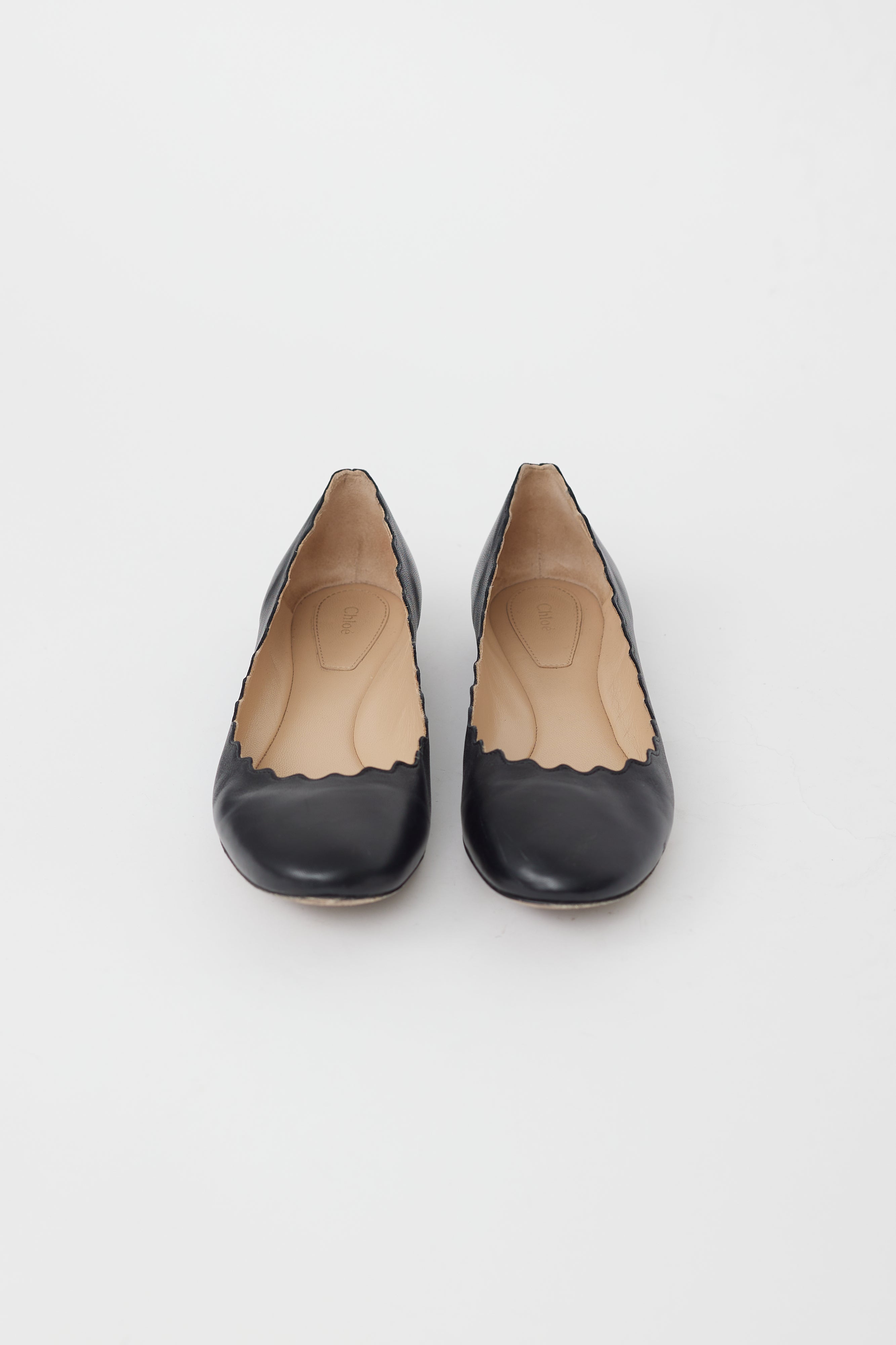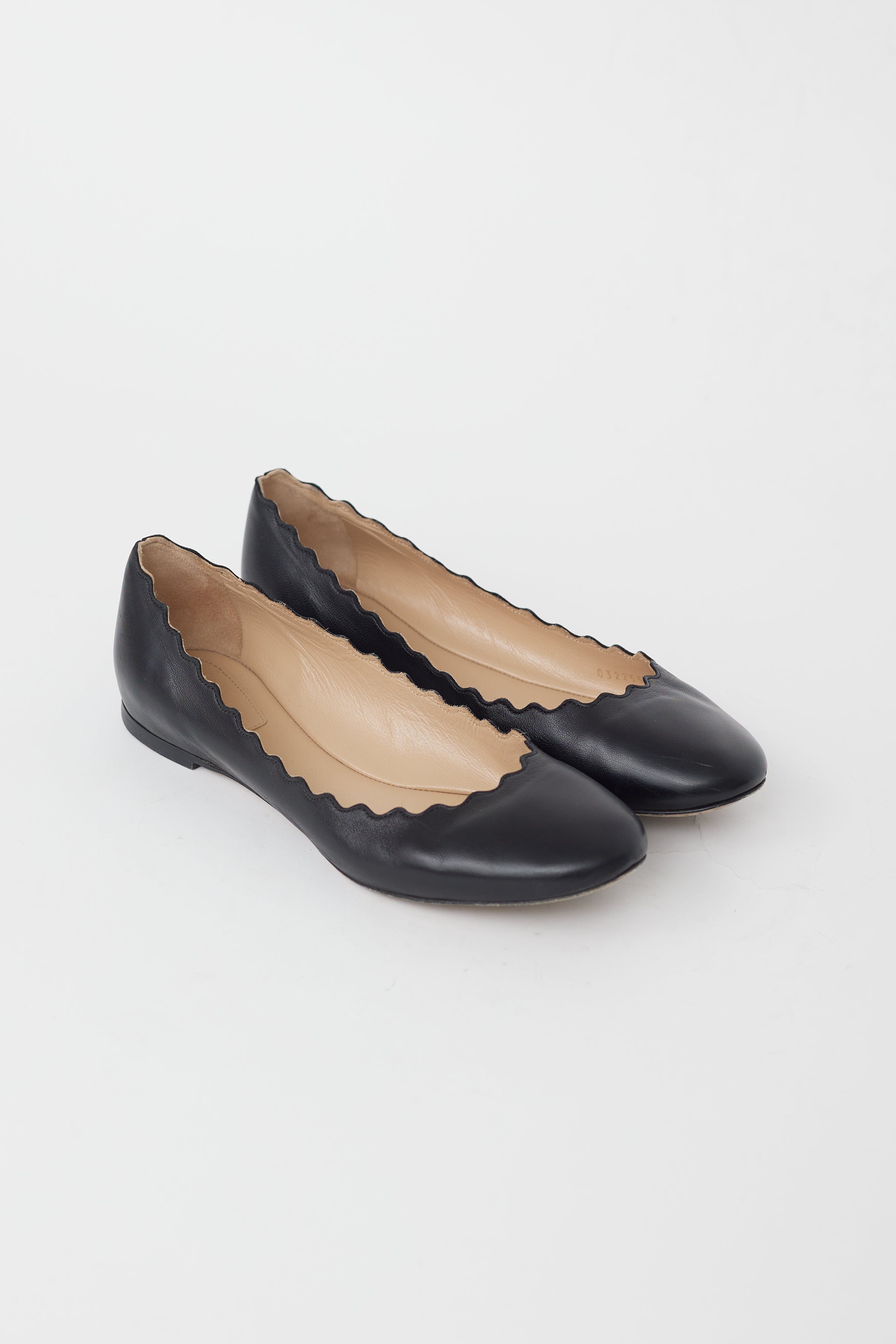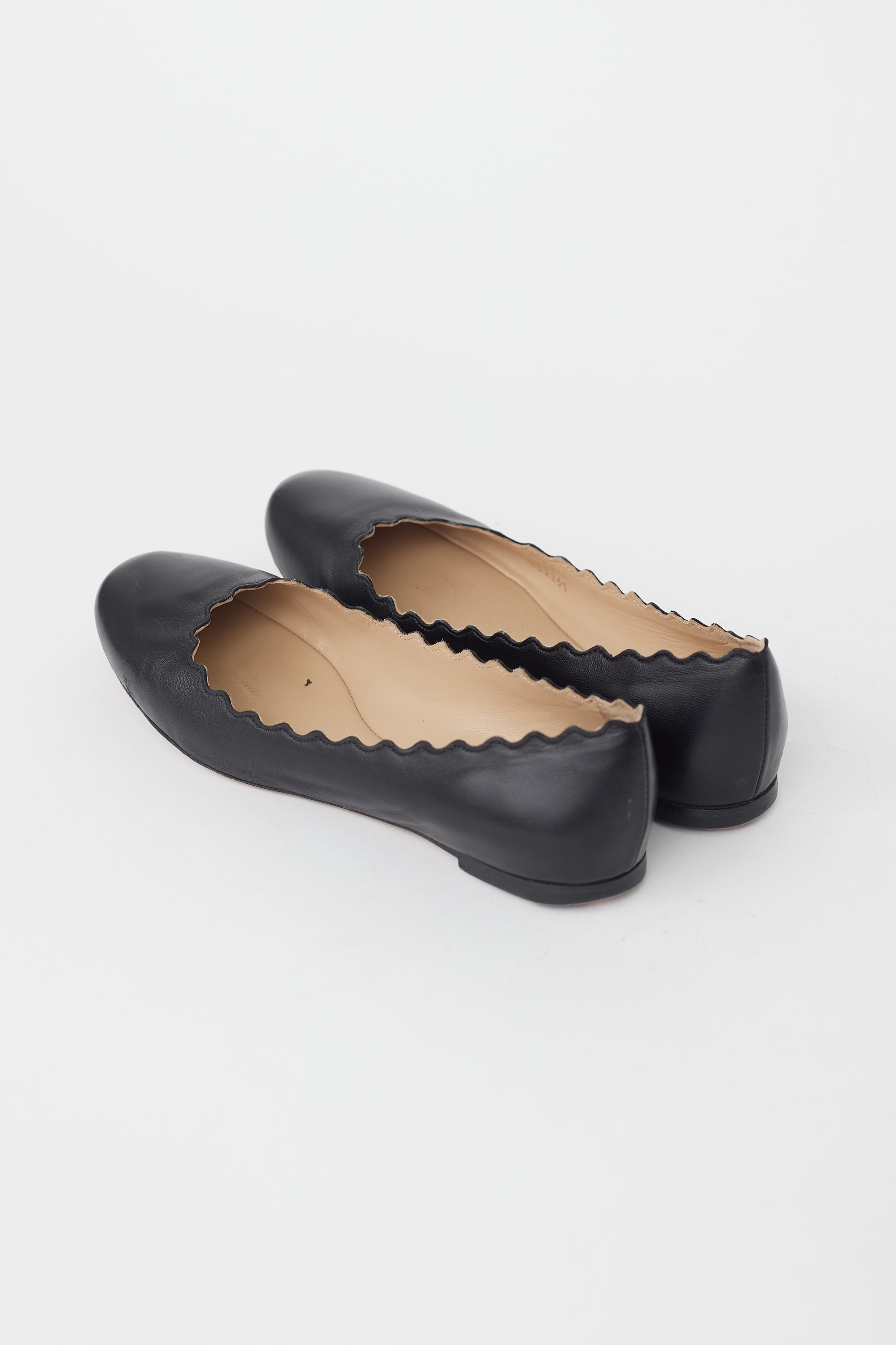 Pre-owned Chloé black leather Lauren ballet flat featuring a rounded toe, scalloped top line, leather insole, and a leather outsole. Comes with orignal dustbag.