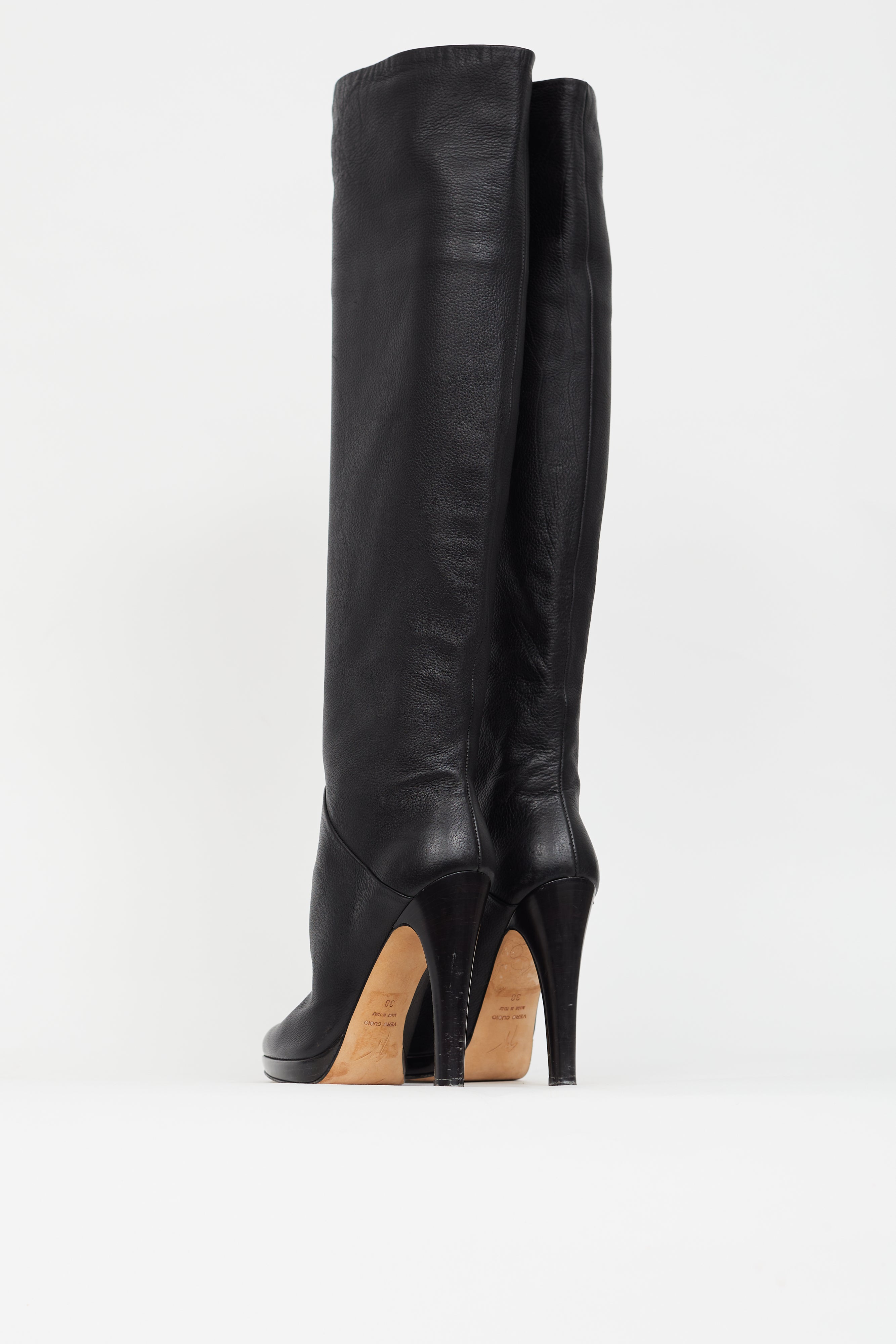 Black Suede Platform Knee High Boot IT 38 Size Guide