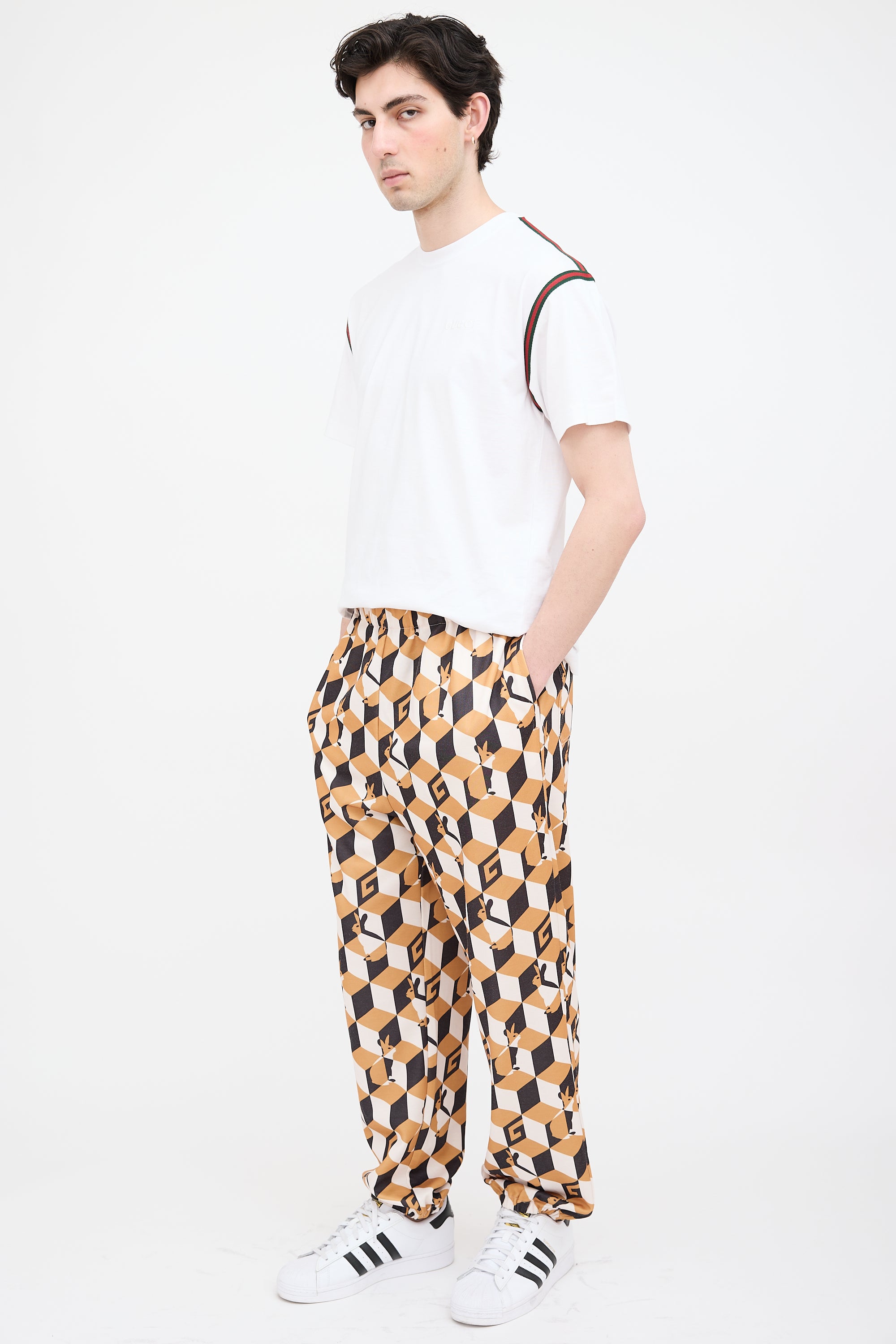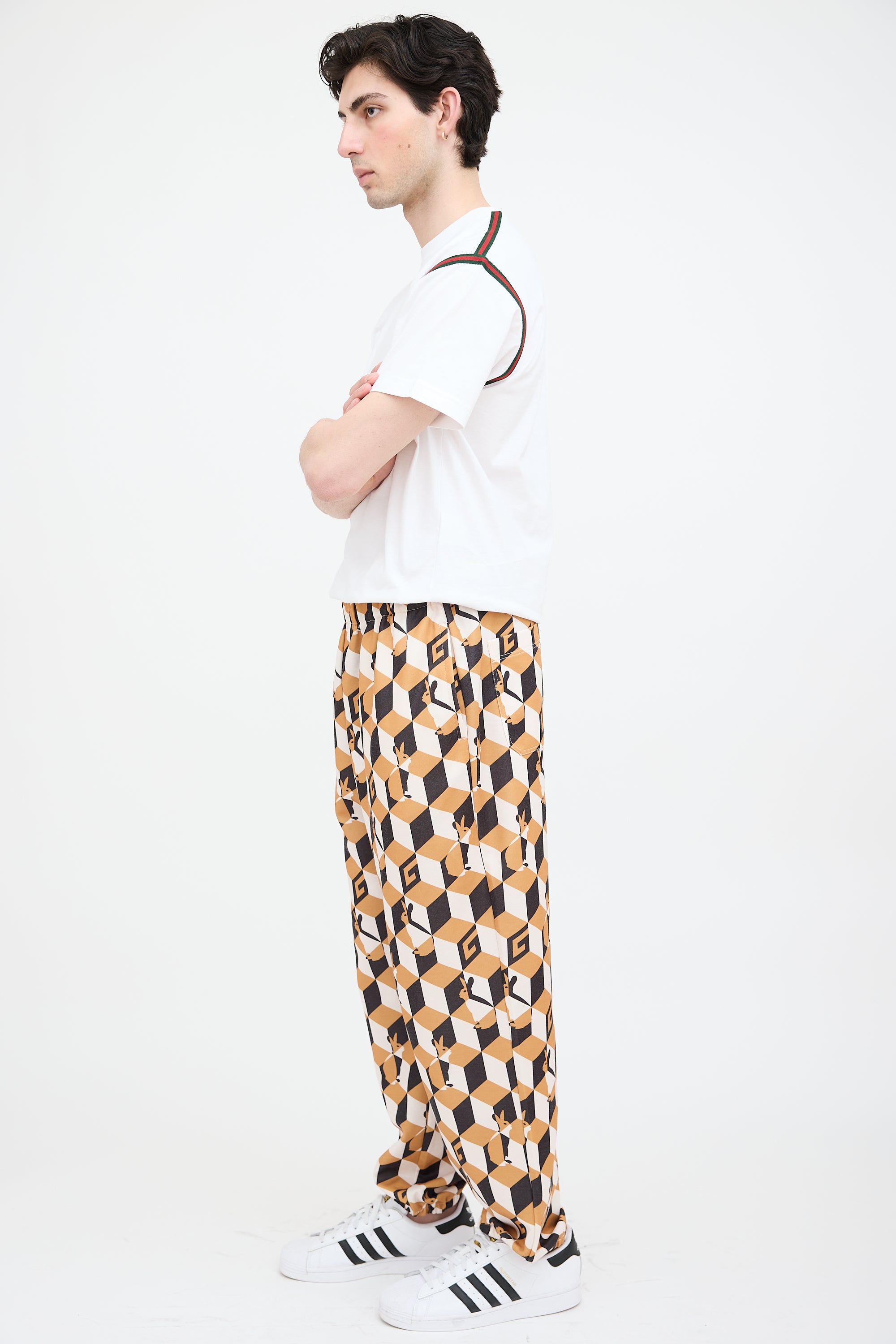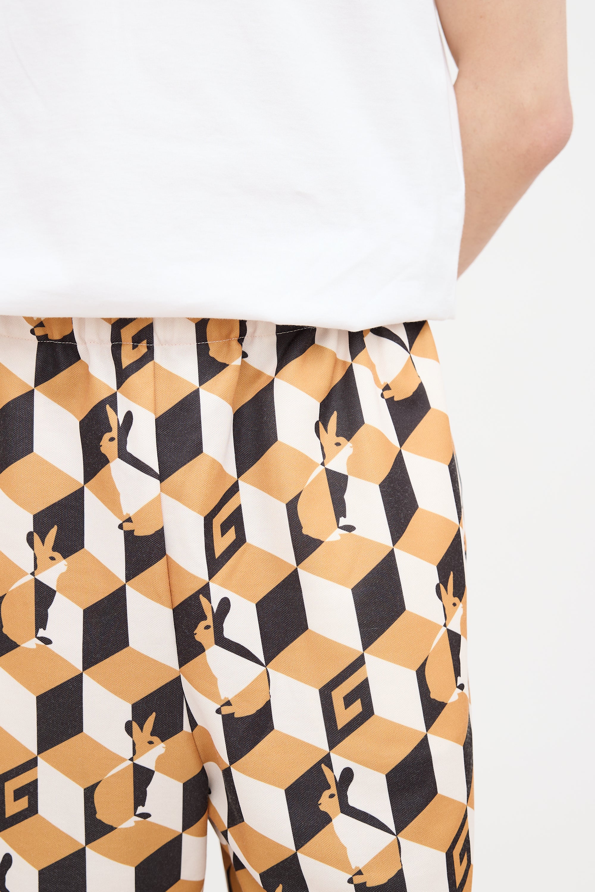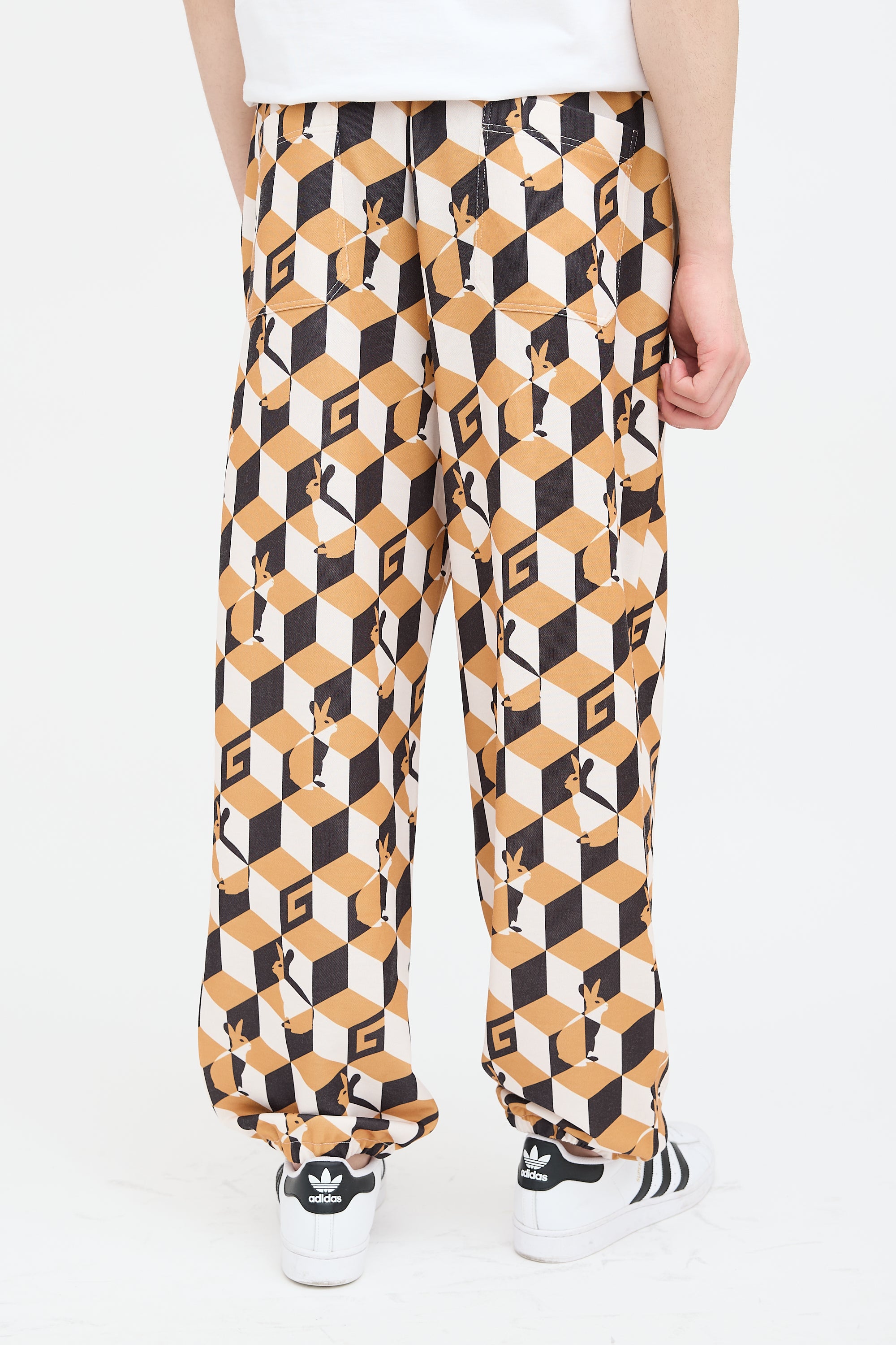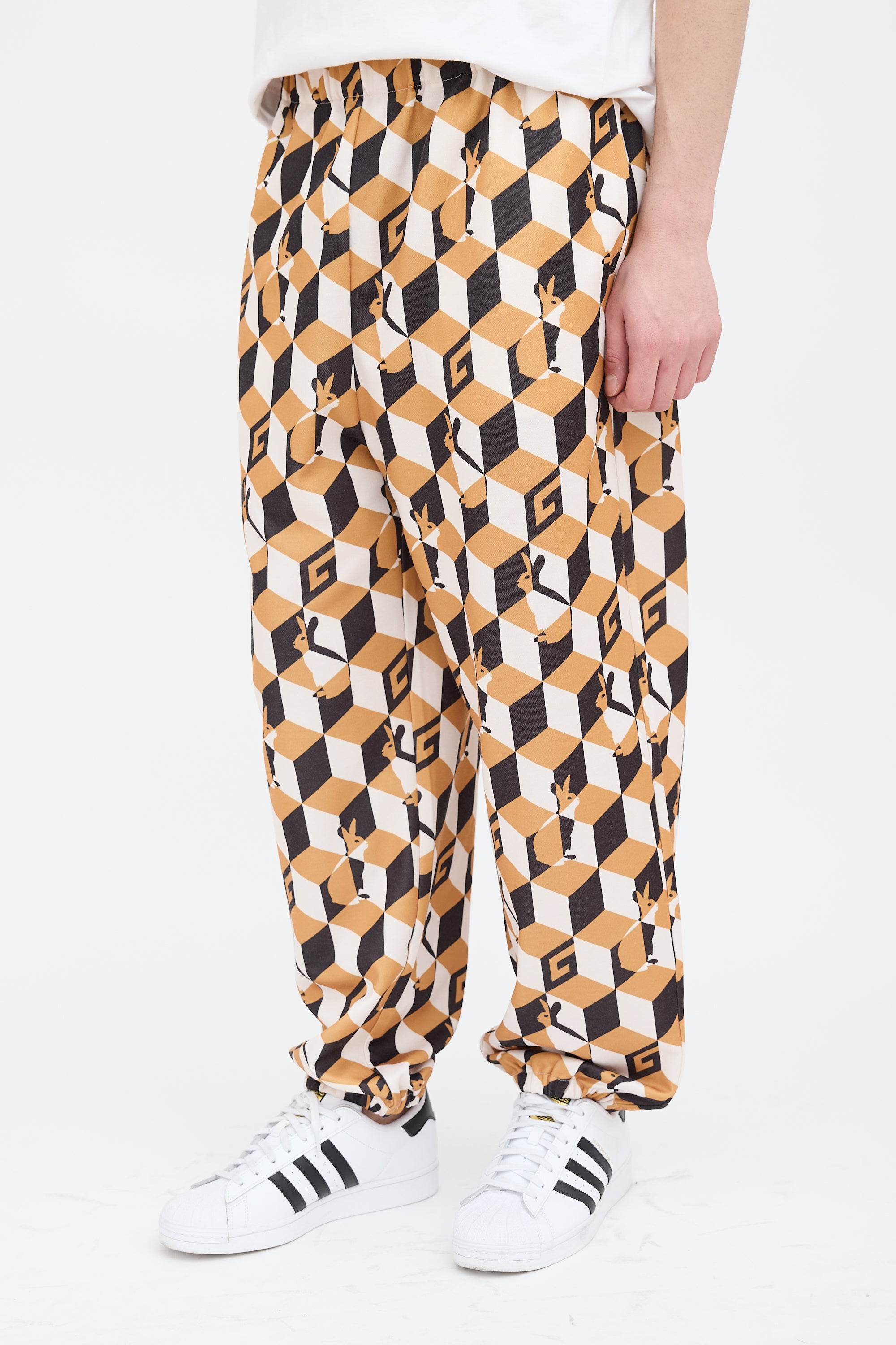 Pre-owned Gucci yellow and multicolour GG cube and rabbit printed track pants featuring an elasticized drawstring waist, two welt pockets at hip, two patch pockets at back, and elasticized cuffs.