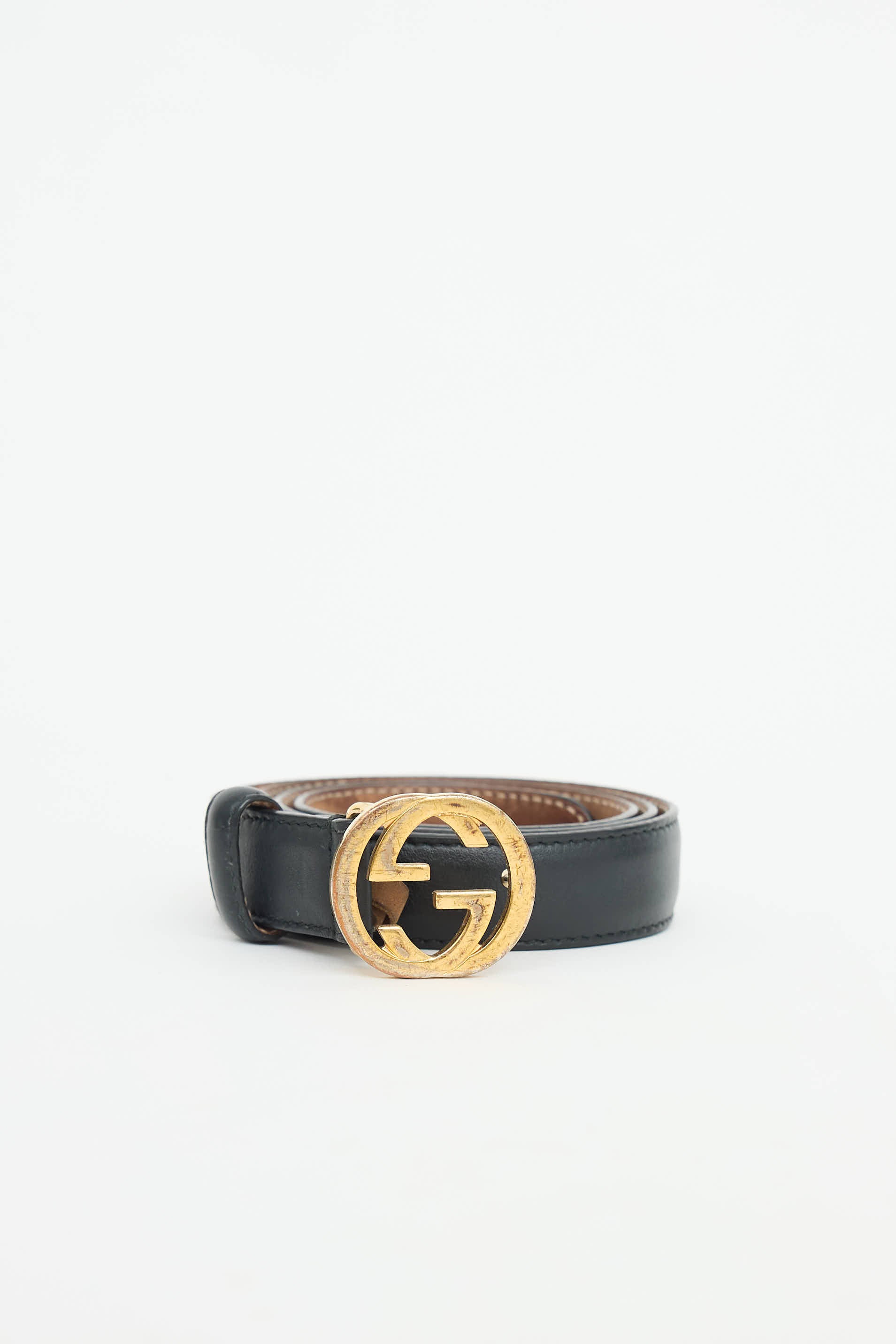 Leather Interlocking GG Buckle Belt