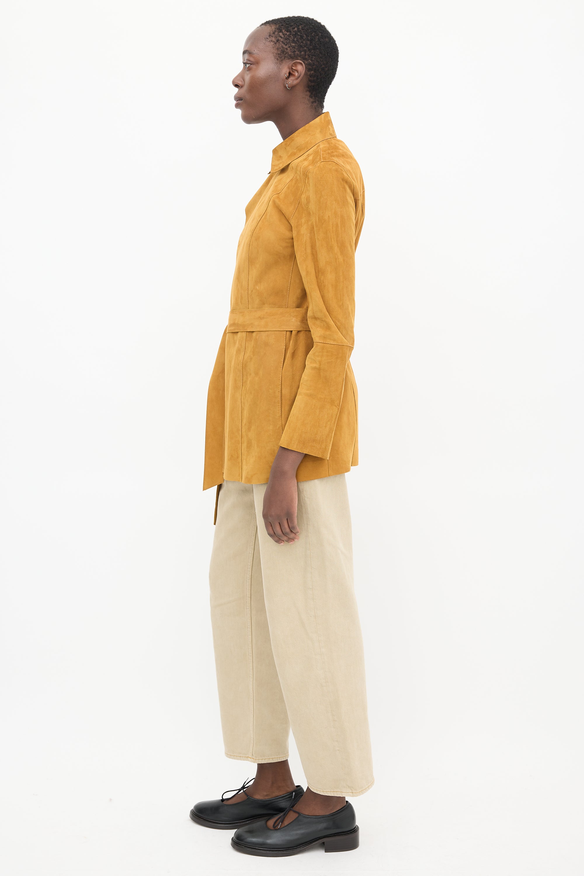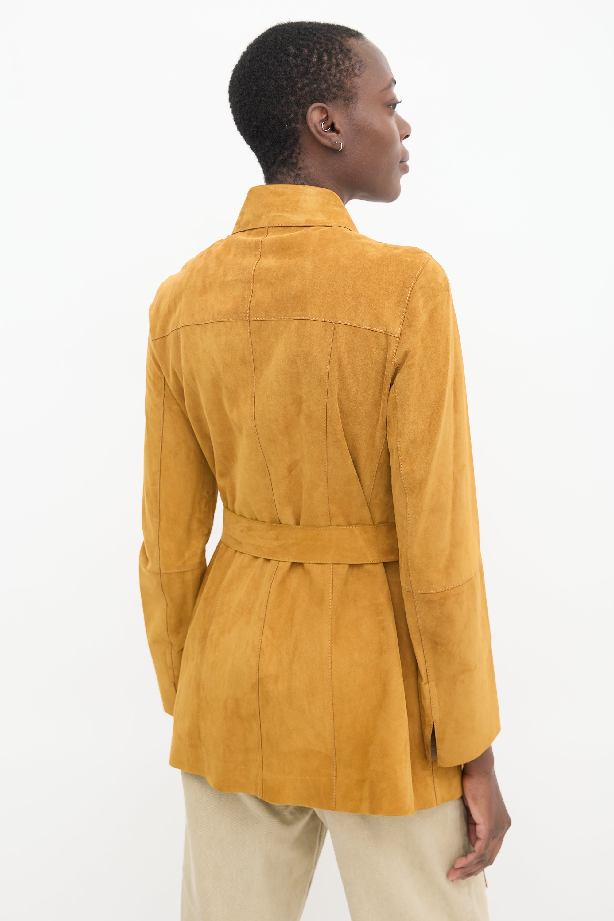Brown Suede Belted Jacket Small Size Guide