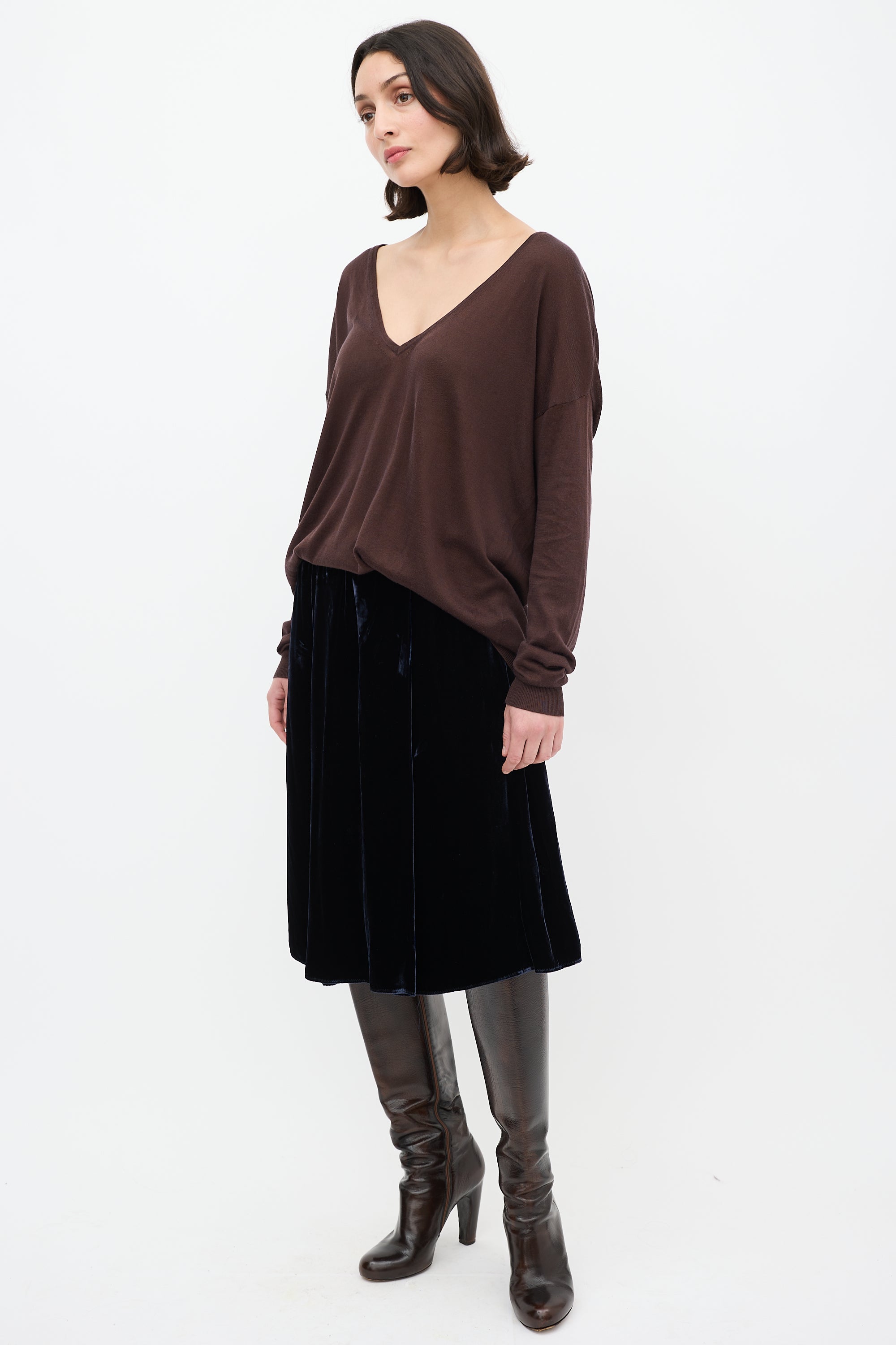 2006 Navy Velvet Midi Skirt FR 42 Size Guide