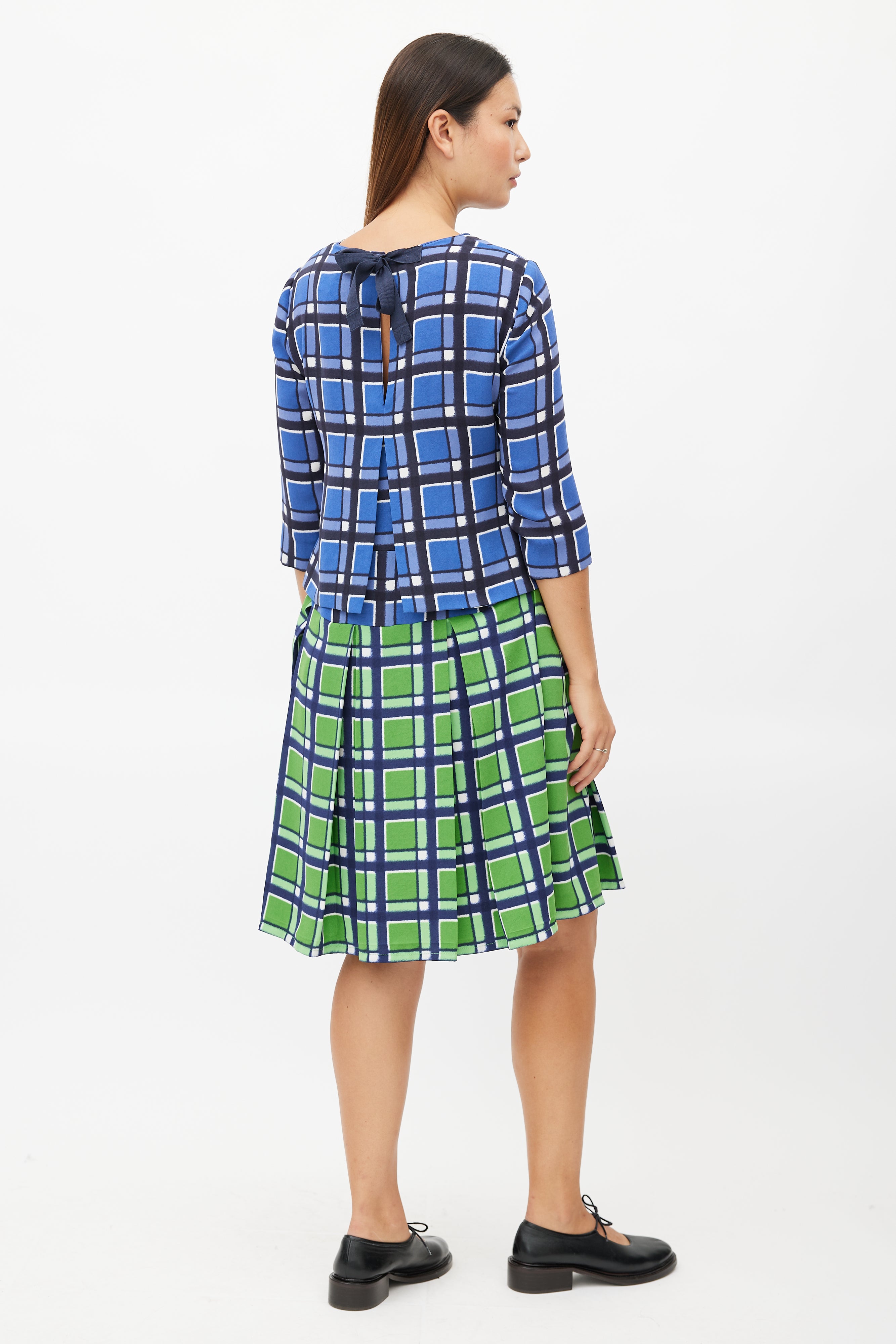Blue & Green Plaid Pleated Dress Medium Size Guide