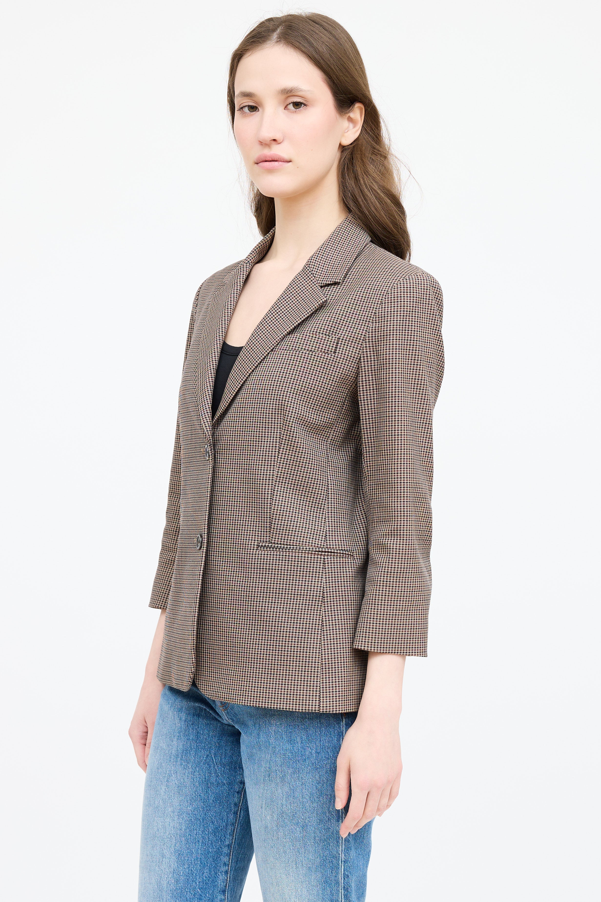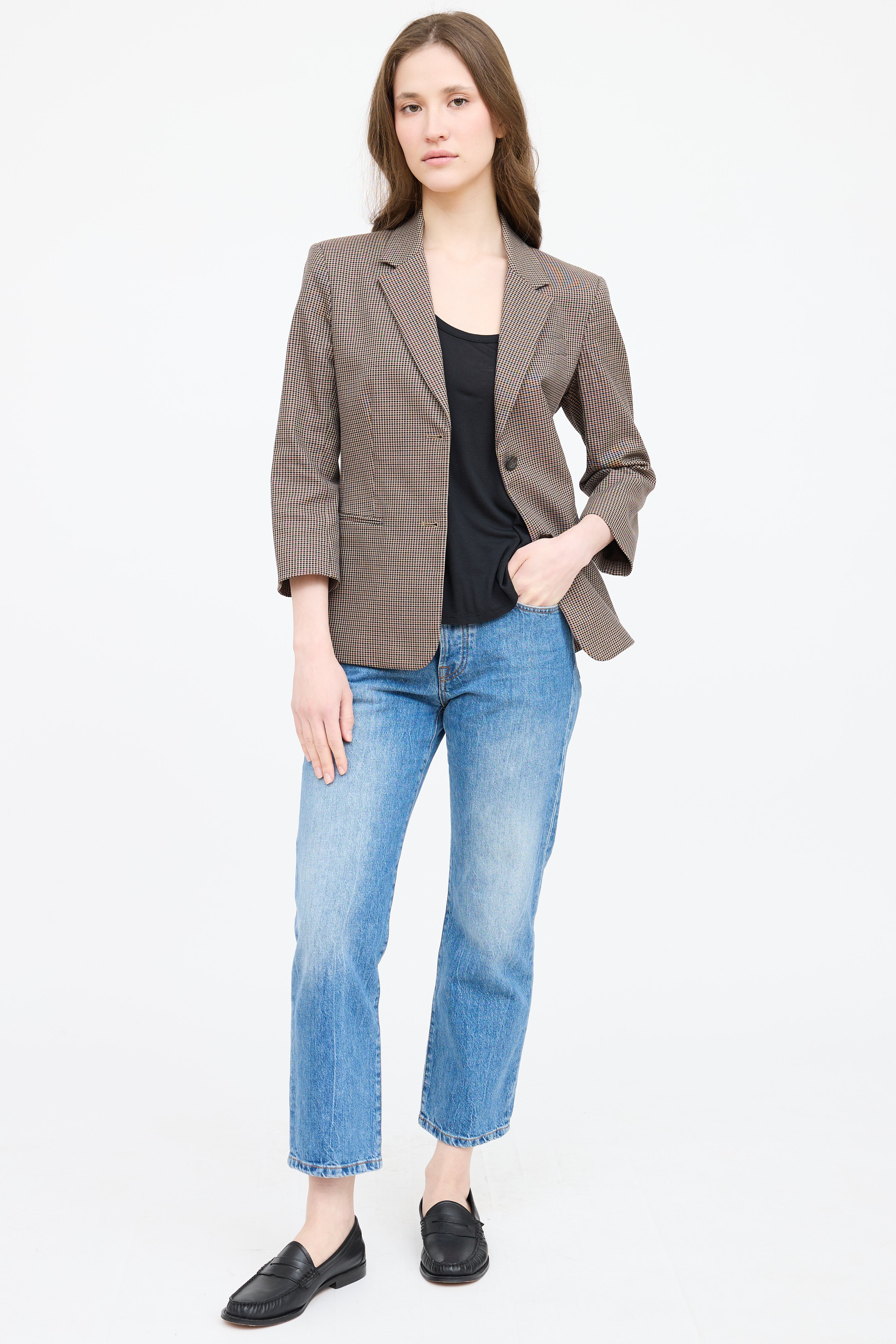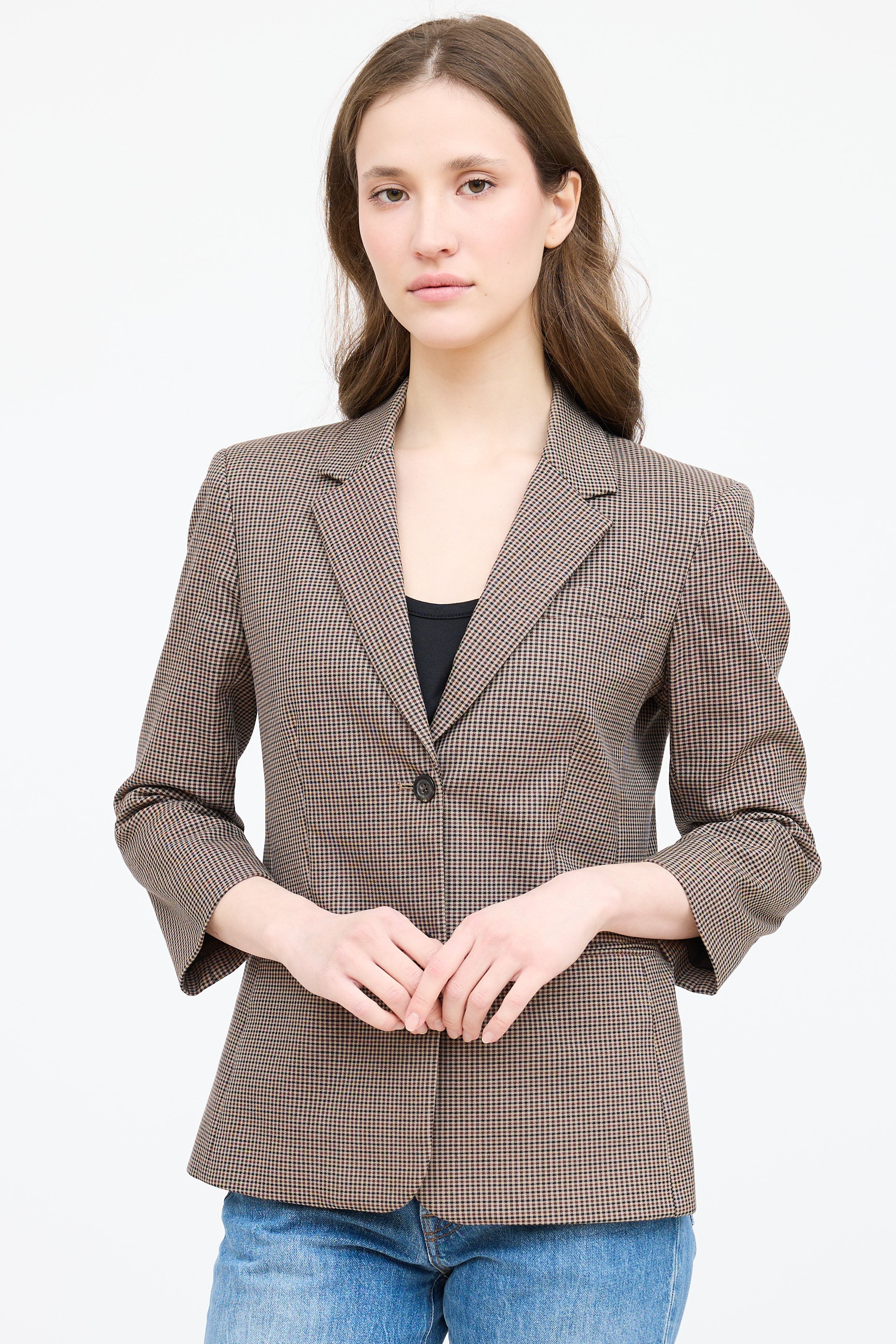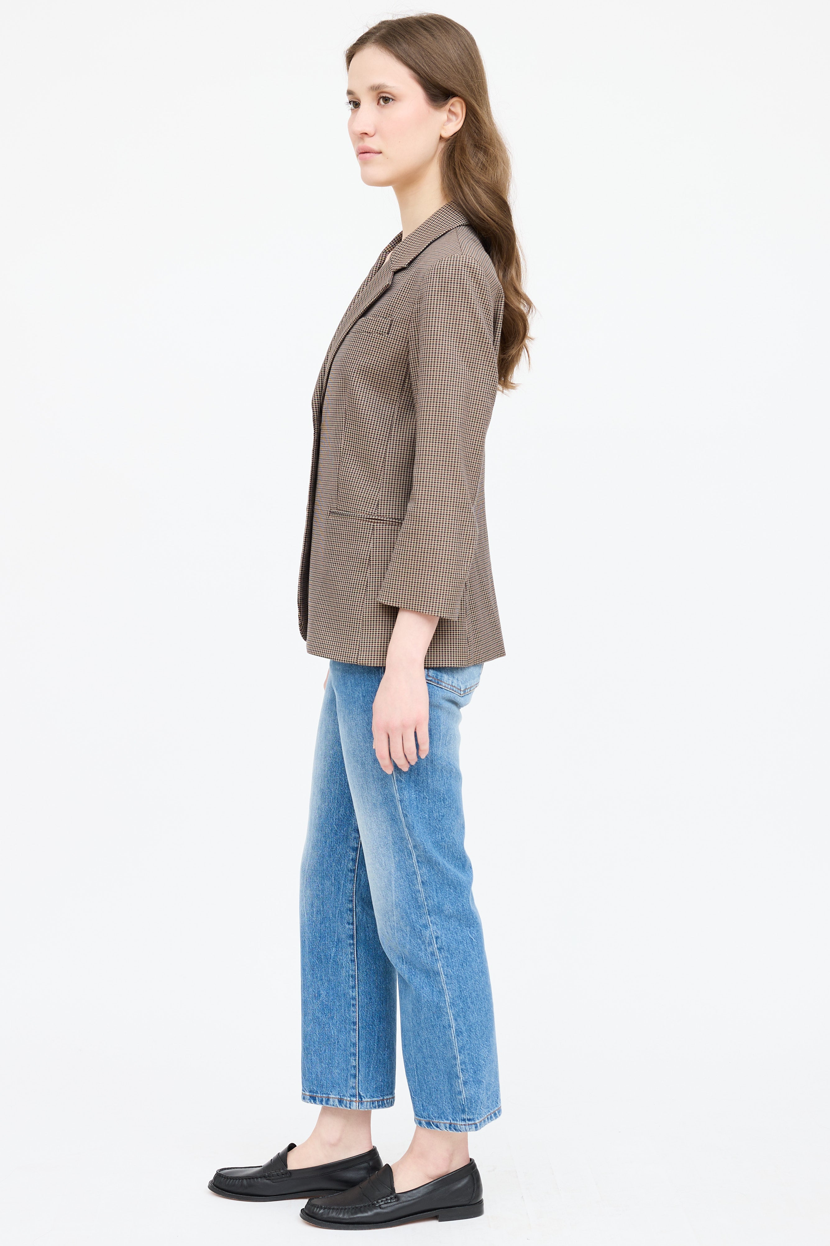 Pre-owned The Row brown check blazer feautring notch lapel, dual button front closure, and decorative pocket slits at chest and front. Fully lined.