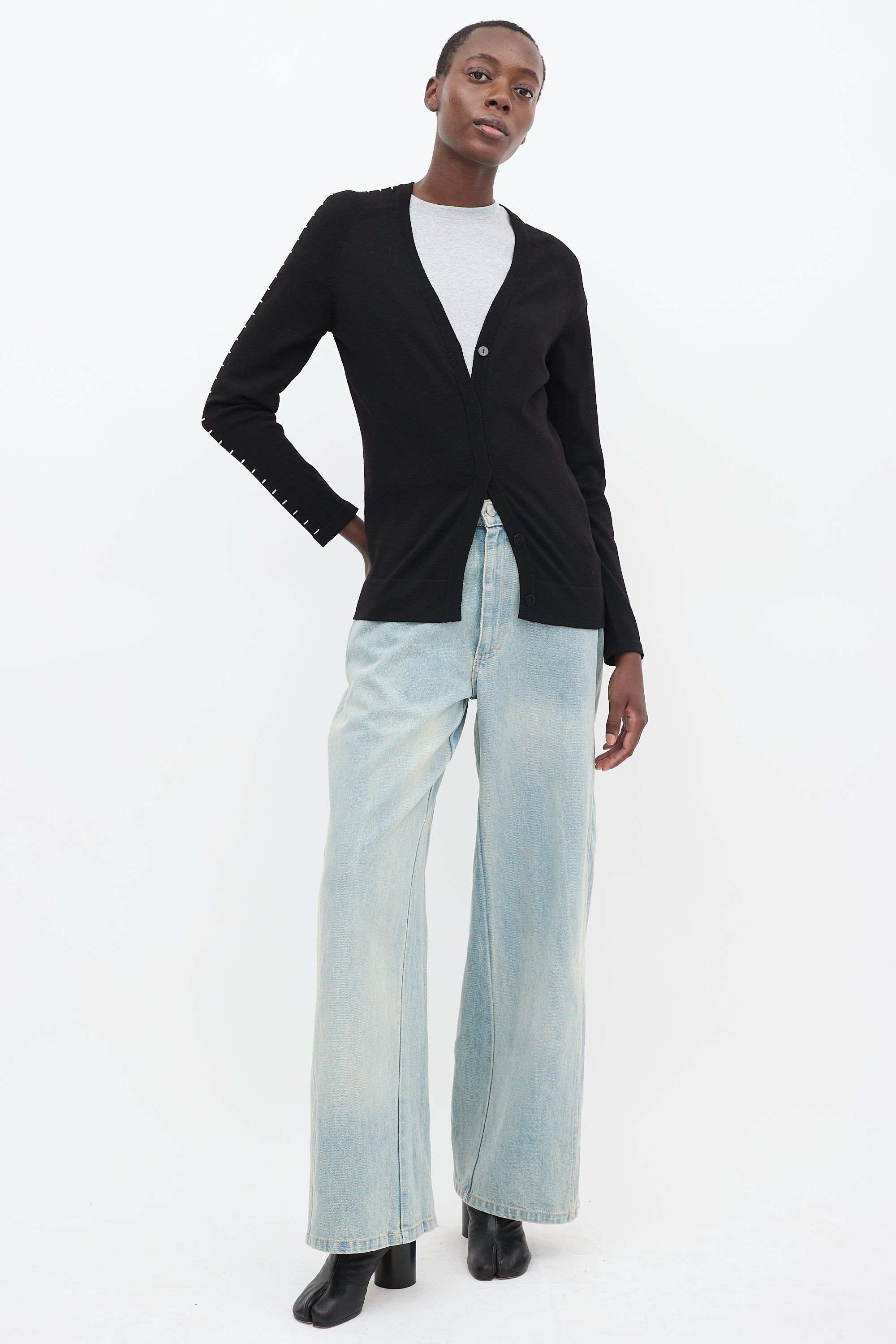 Black Wool Stapled Cardigan FR 38 Size Guide