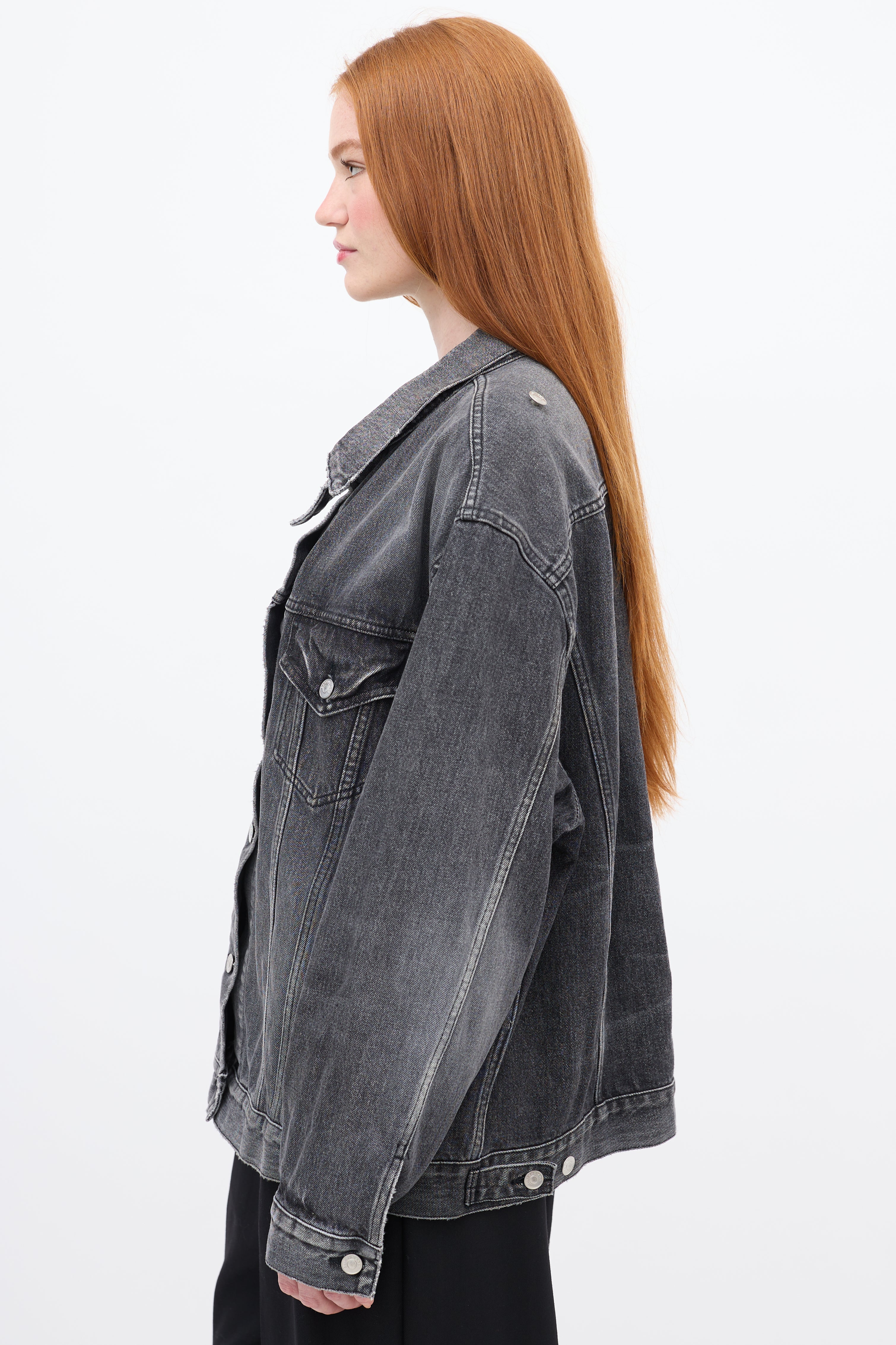Grey Asymmetrical Pulled Denim Jacket FR 40 Size Guide