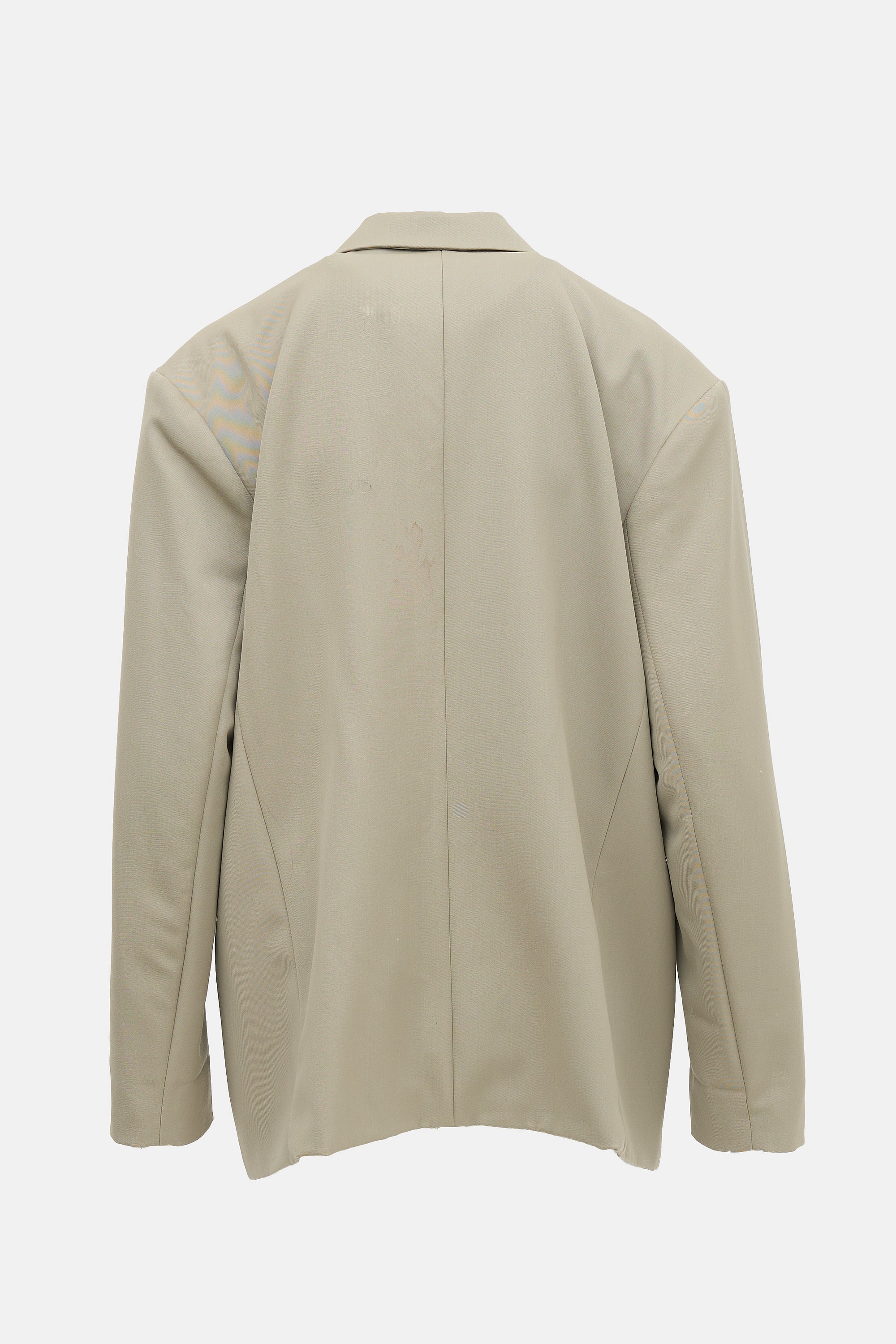 Pre-owned Anine Bing green oversized Quinn blazer featuring peak lapel, button front, one welt pocket at chest, and two flap pocket at hips. Lined.