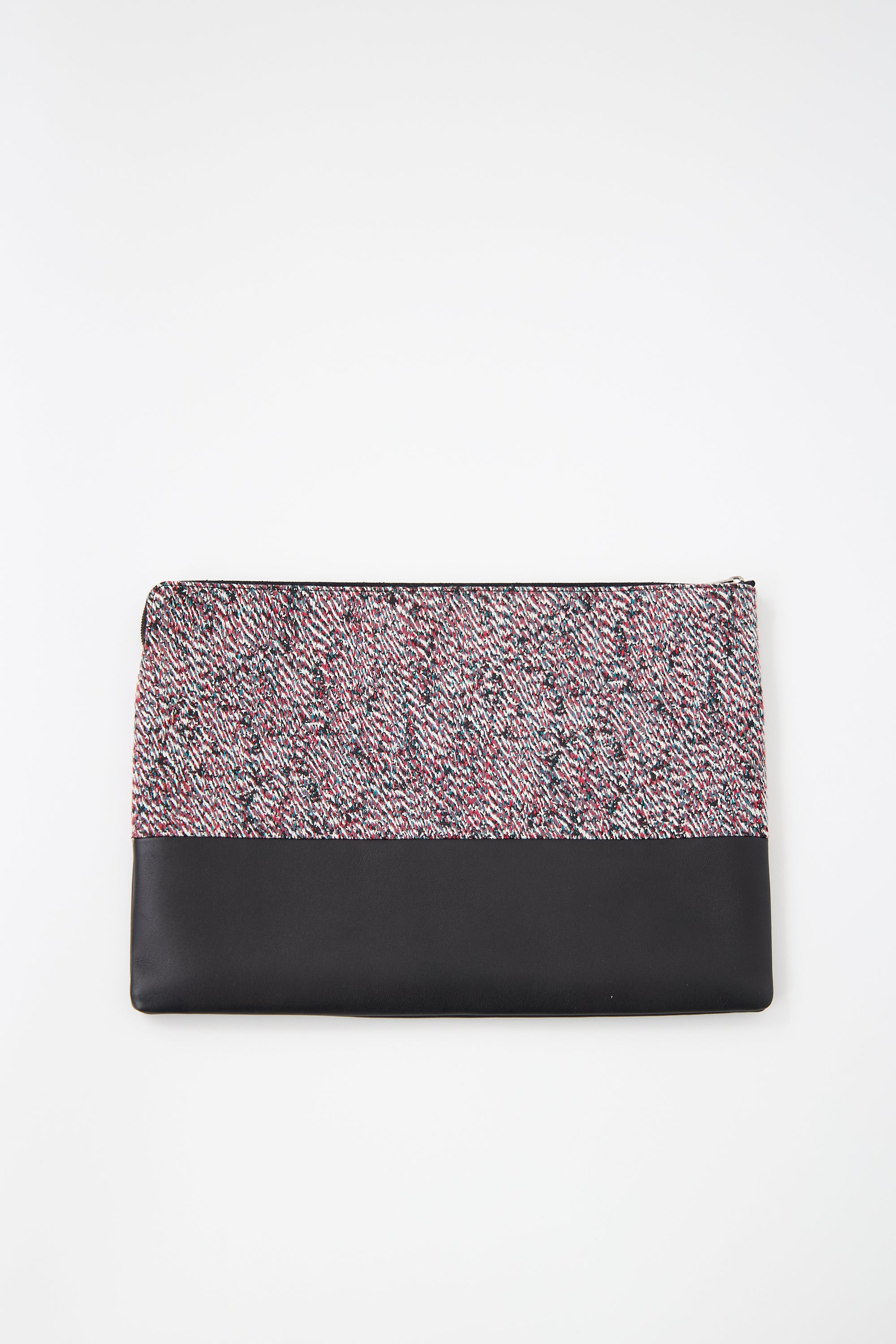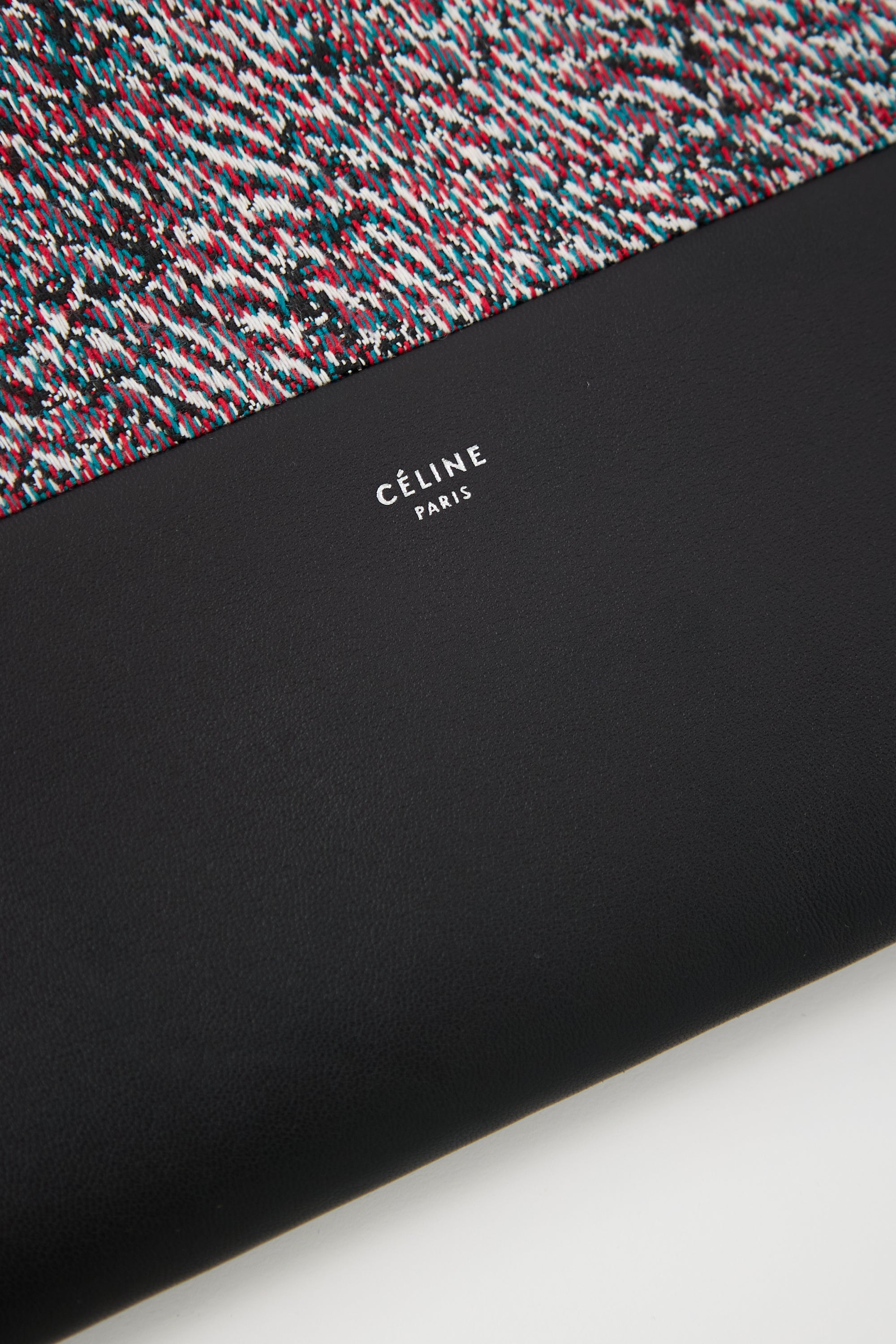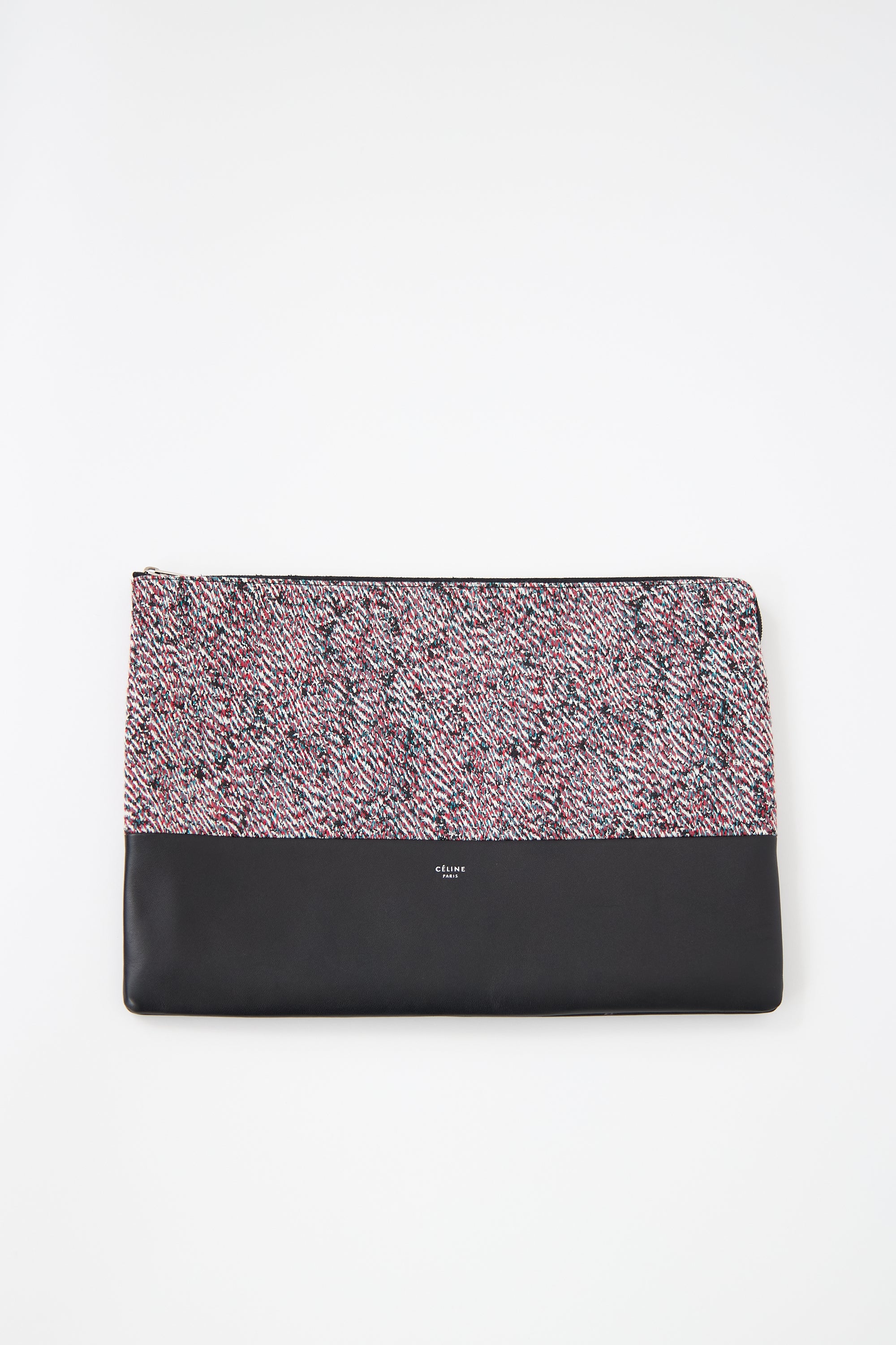 Pre-owned Celine black and multicolour pouch featuring tweed and leather exterior, silver stamped logo, zip closure, one main compartment, and two card slots inside. Comes with original dust bag.