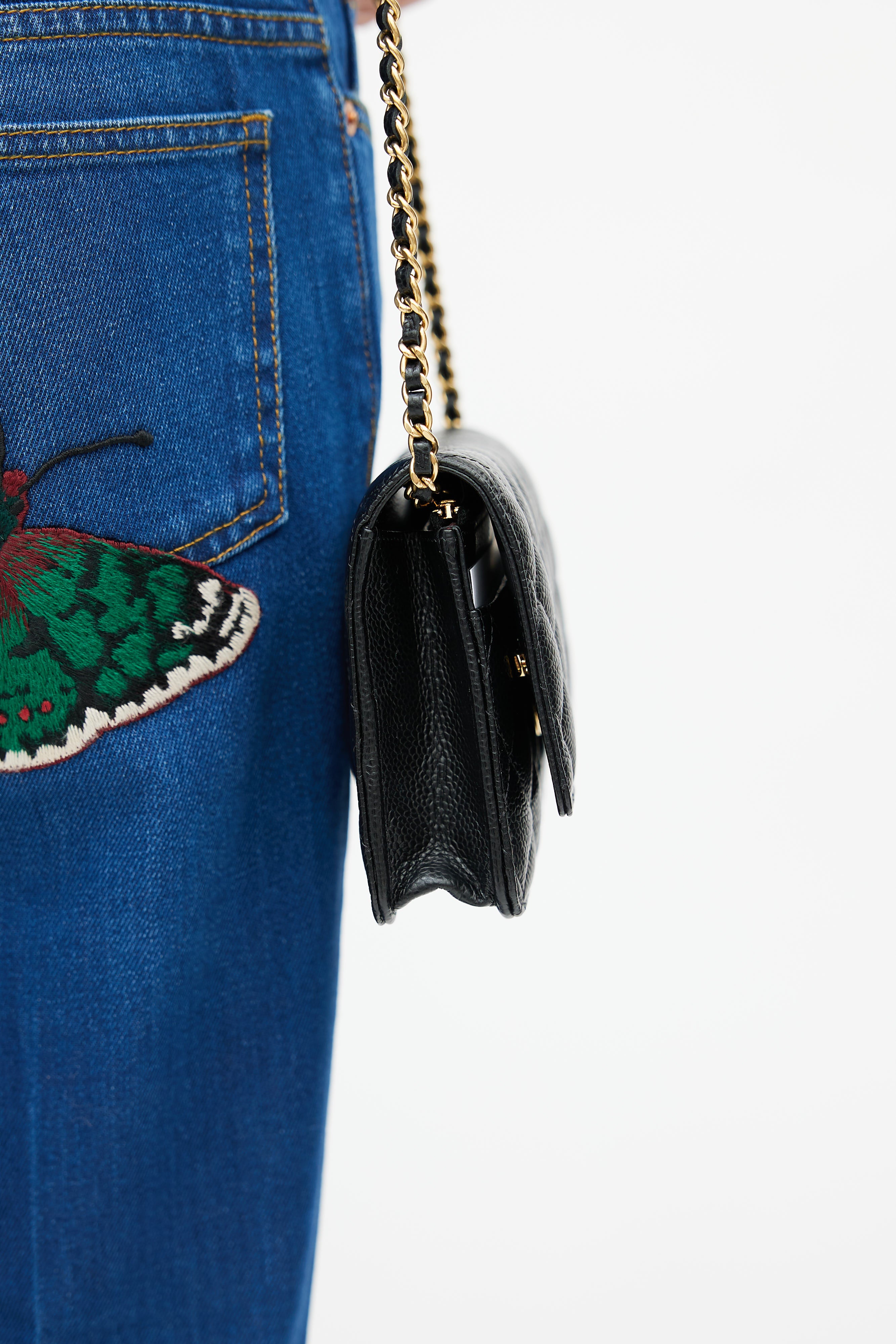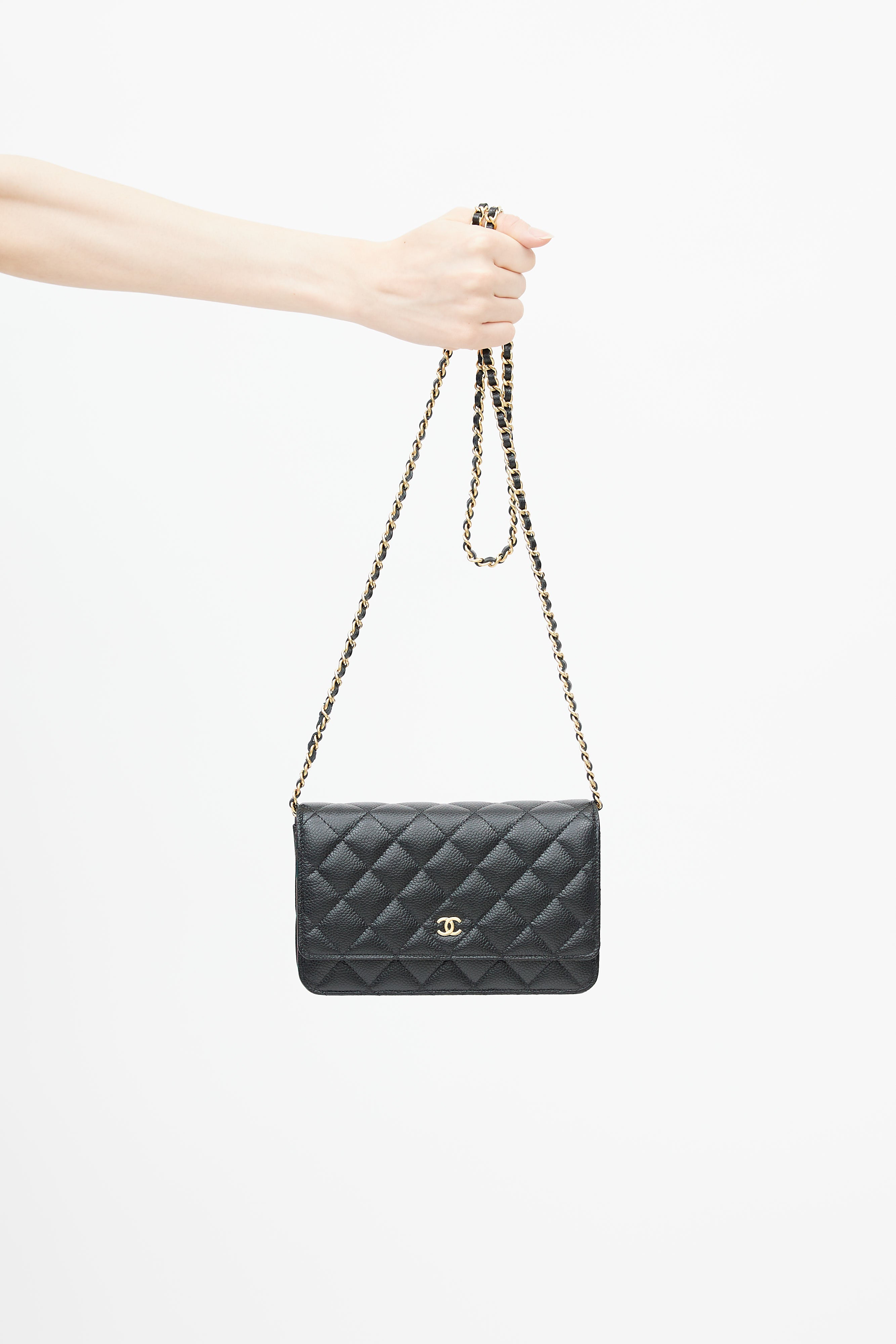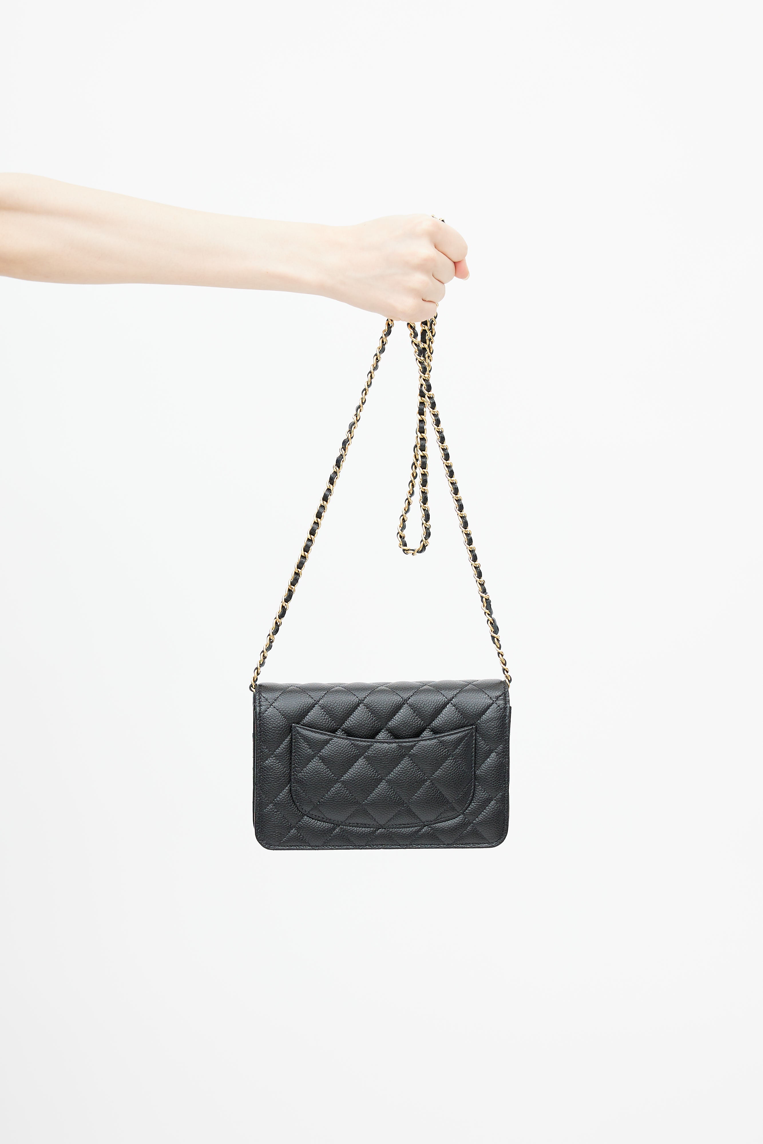2022 Black Quilted Caviar Leather Wallet On Chain