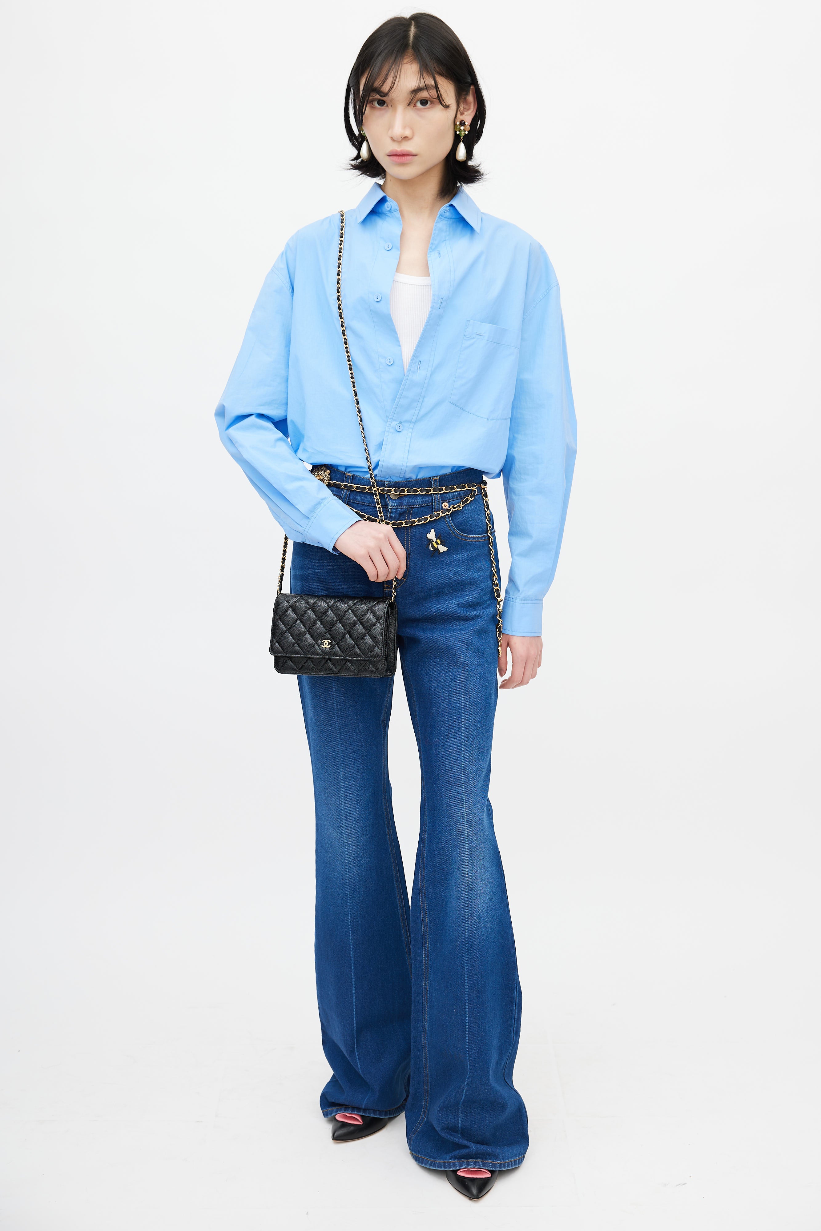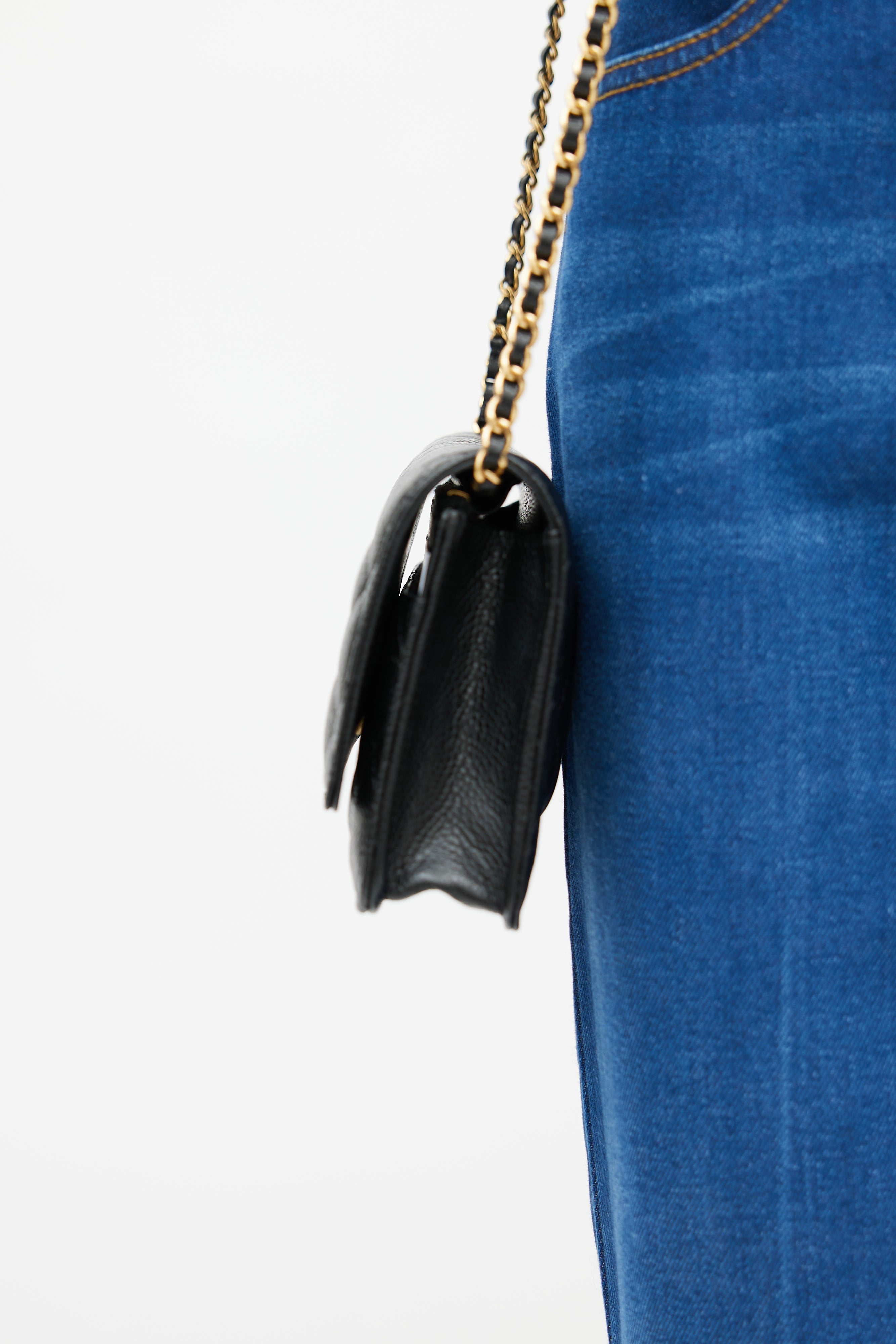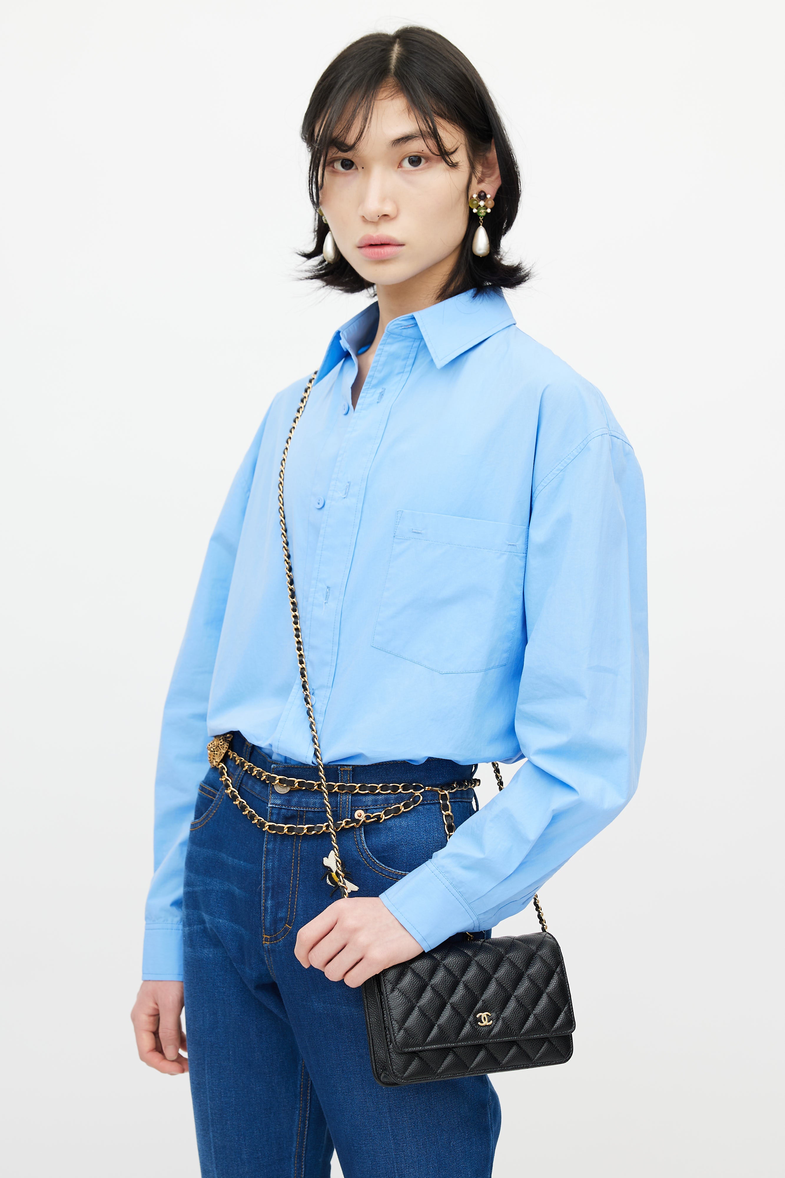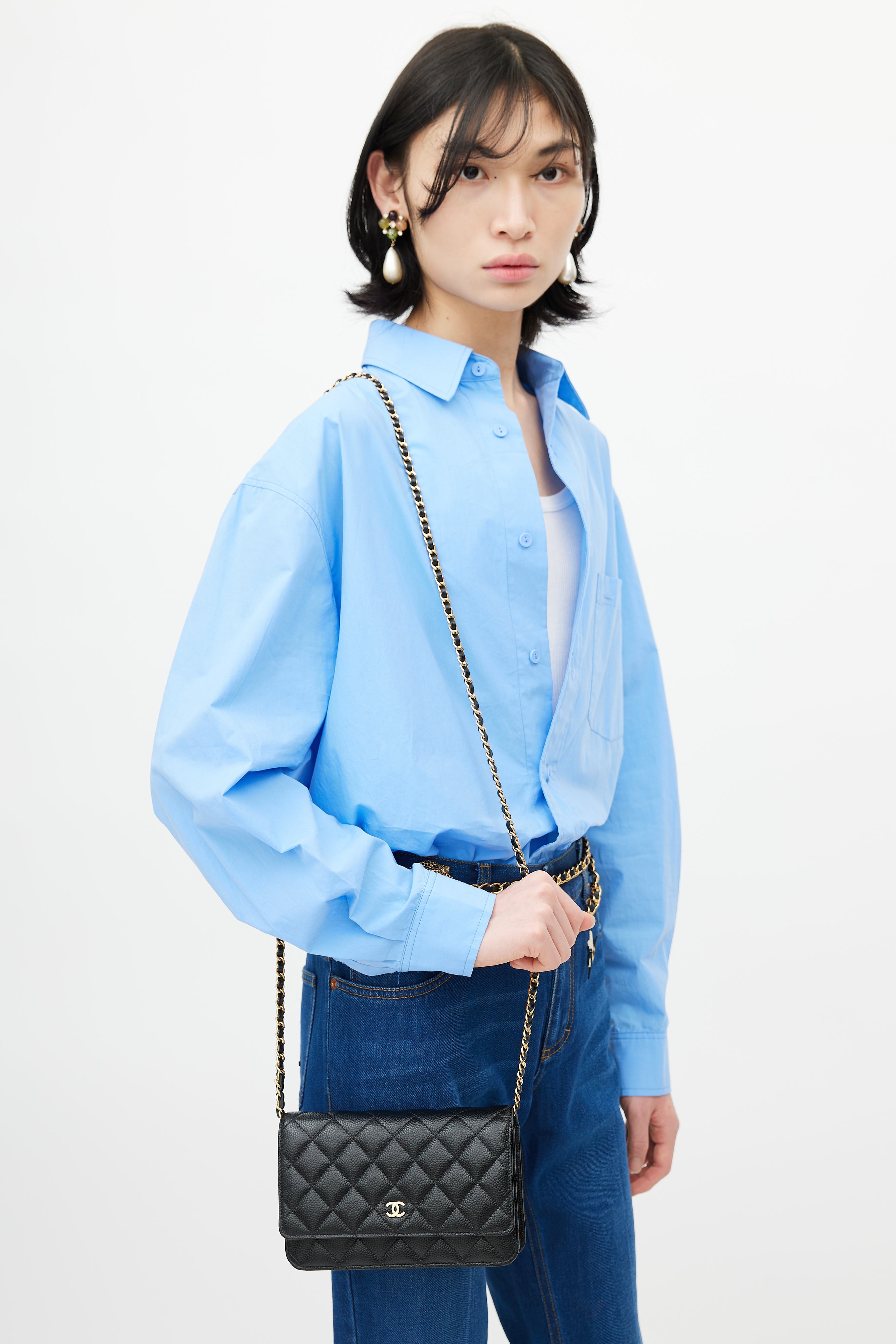 2022 Black Quilted Caviar Leather Wallet On Chain