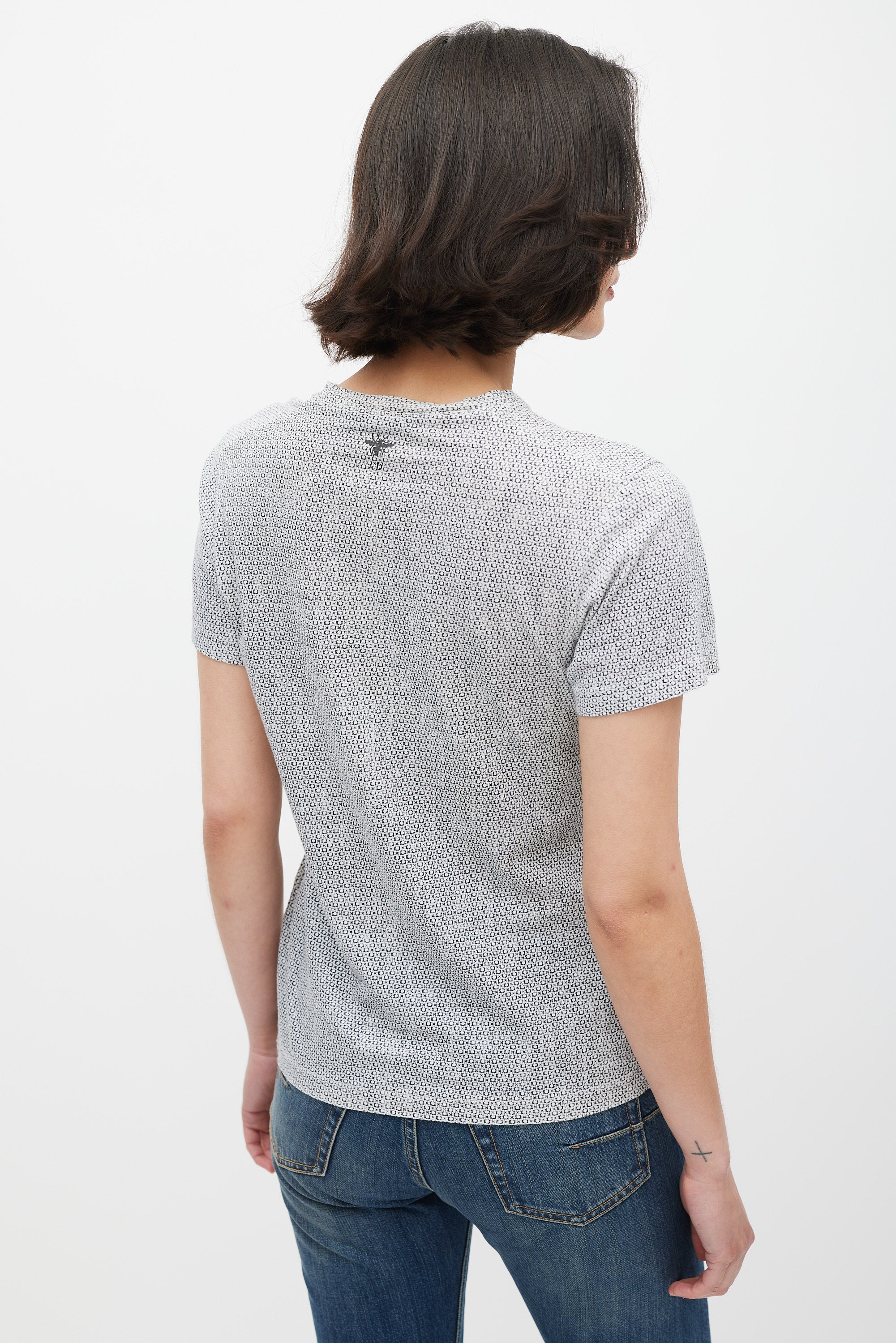 Pre-owned Christian Dior 2020 white T-shirt featuring a black monogram pattern throughout, multicolour 17 L'etoile print at front, round neckline, logo print at back, and short sleeves.