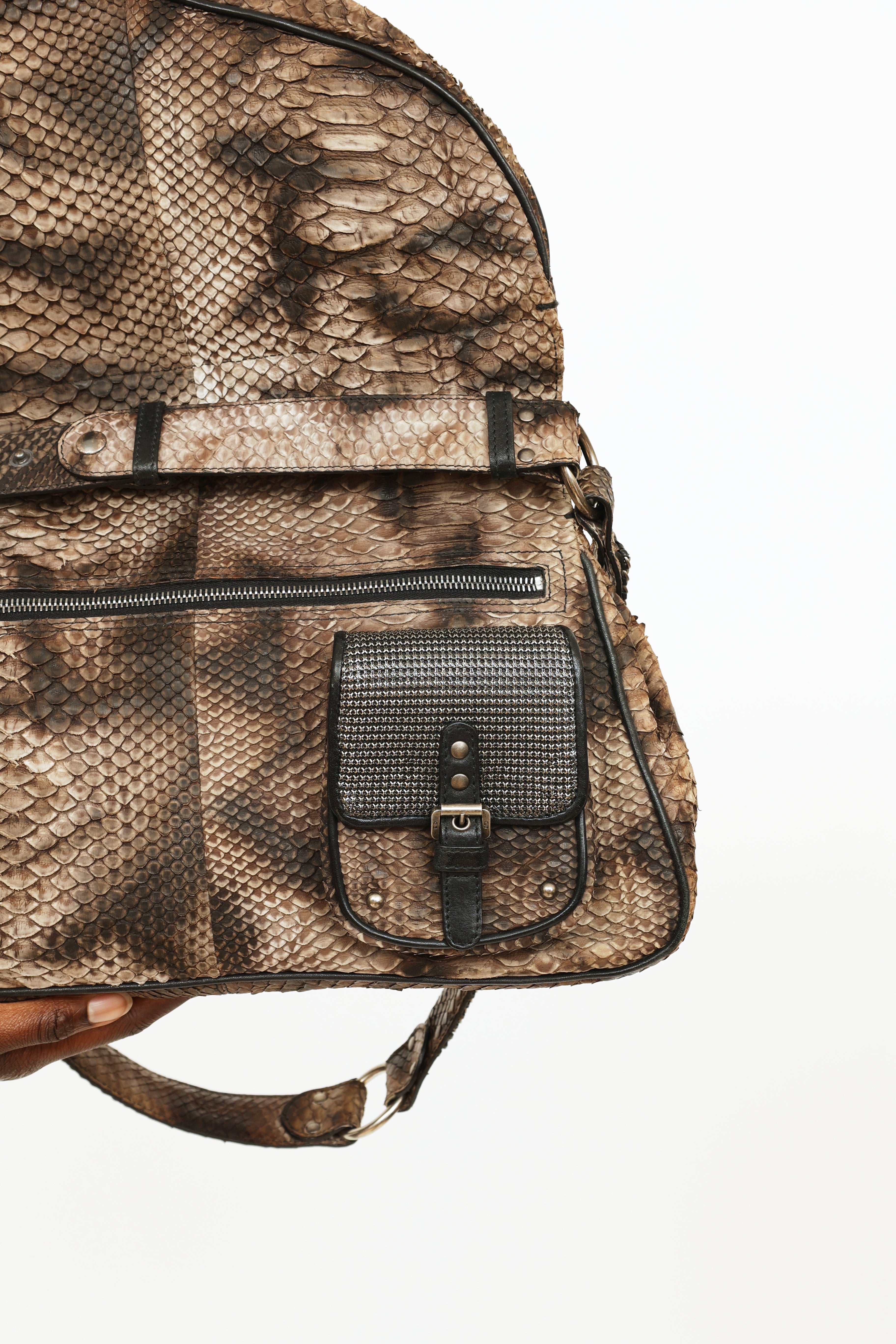 Very Good Bag shows minor signs of wear, lifting of scales, hairline scratches on hardware, interior shows minor signs of wear.