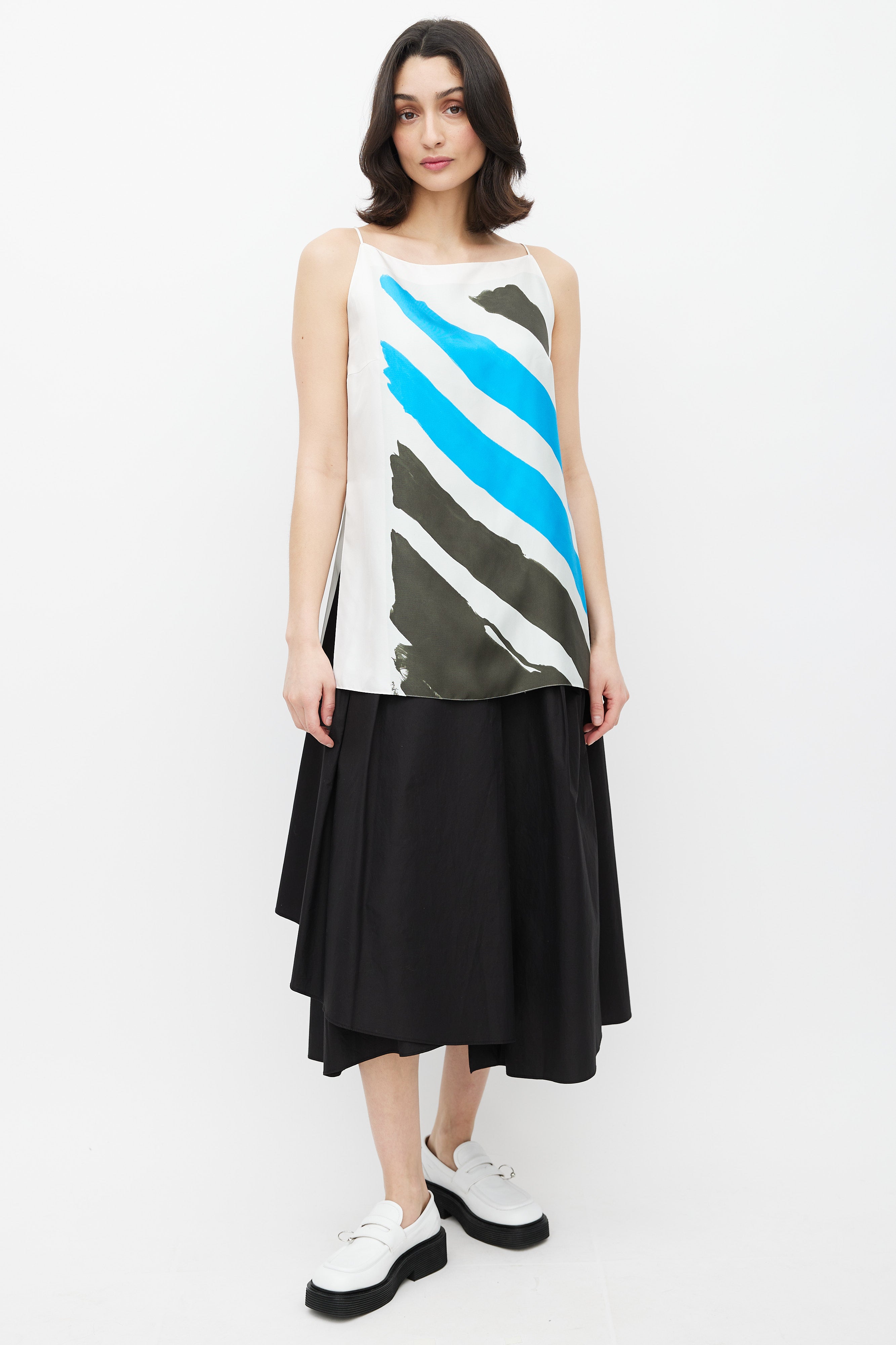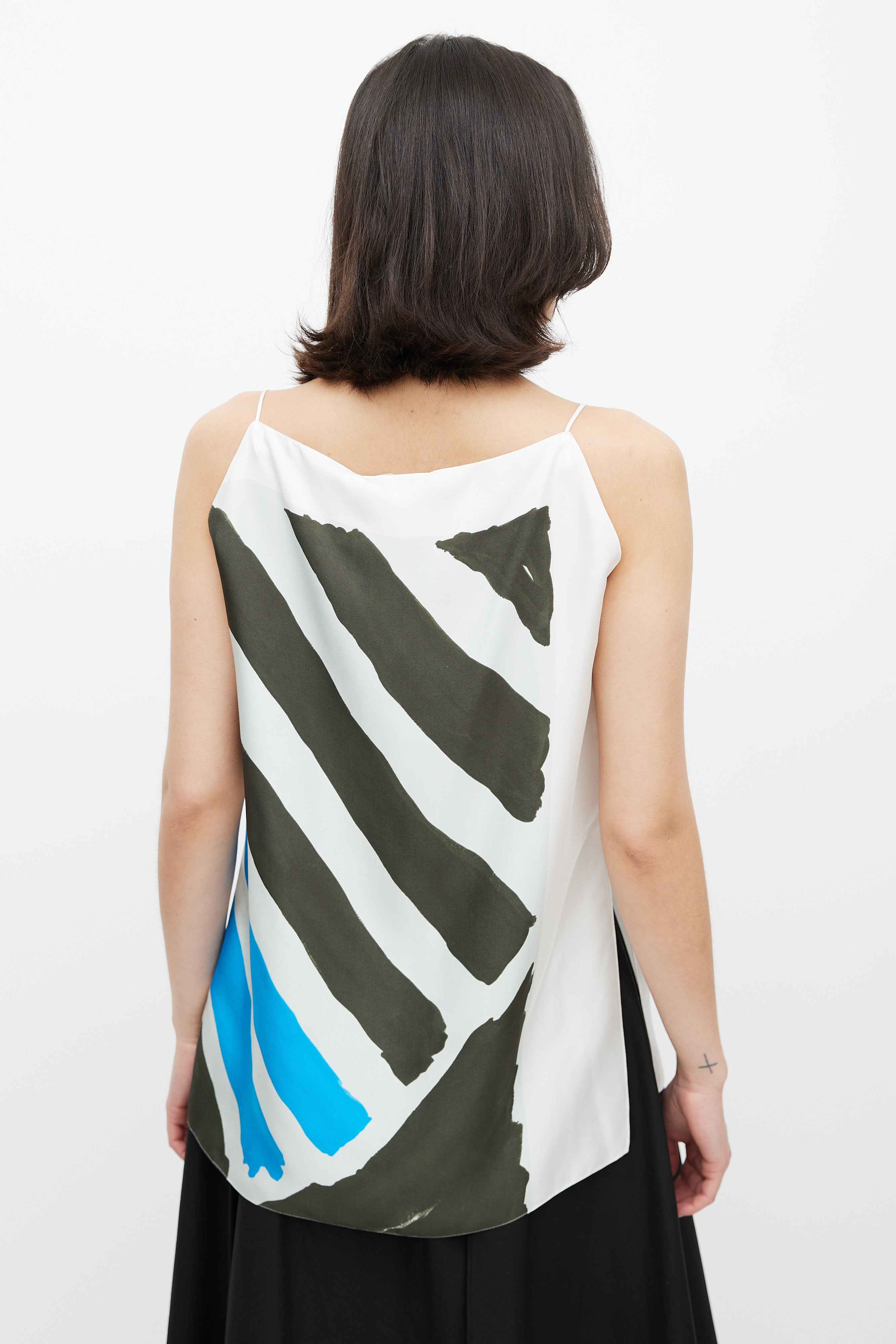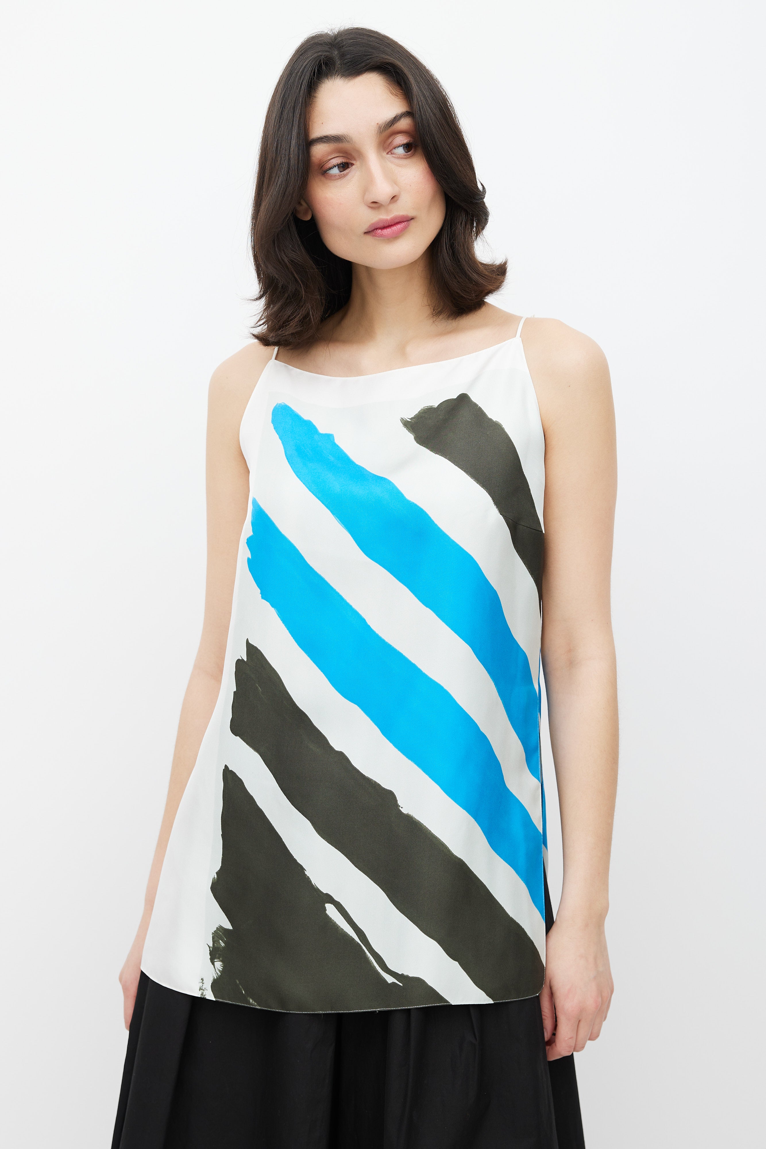 White & Multicolour Stripe Silk Tank Top US 10 Size Guide