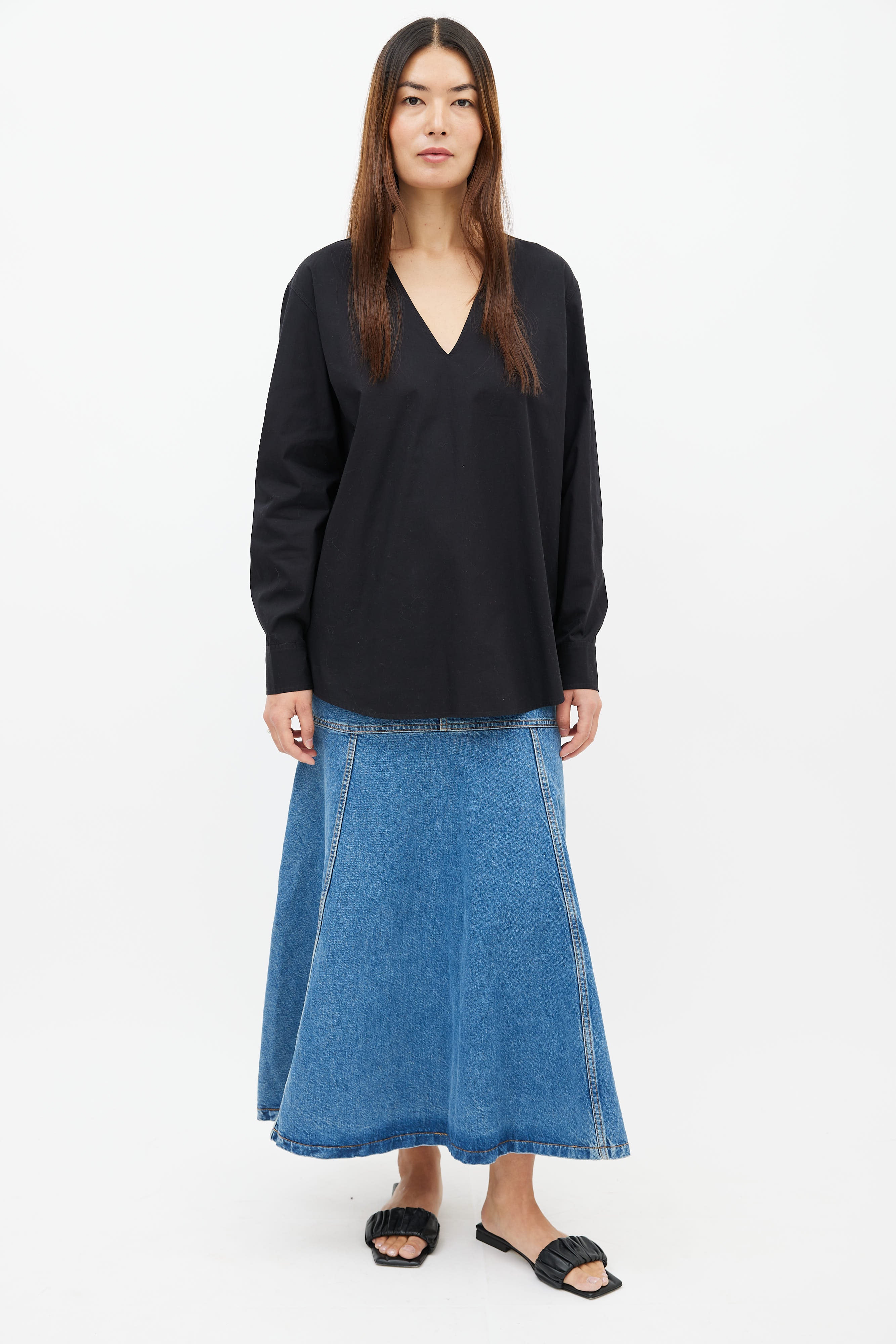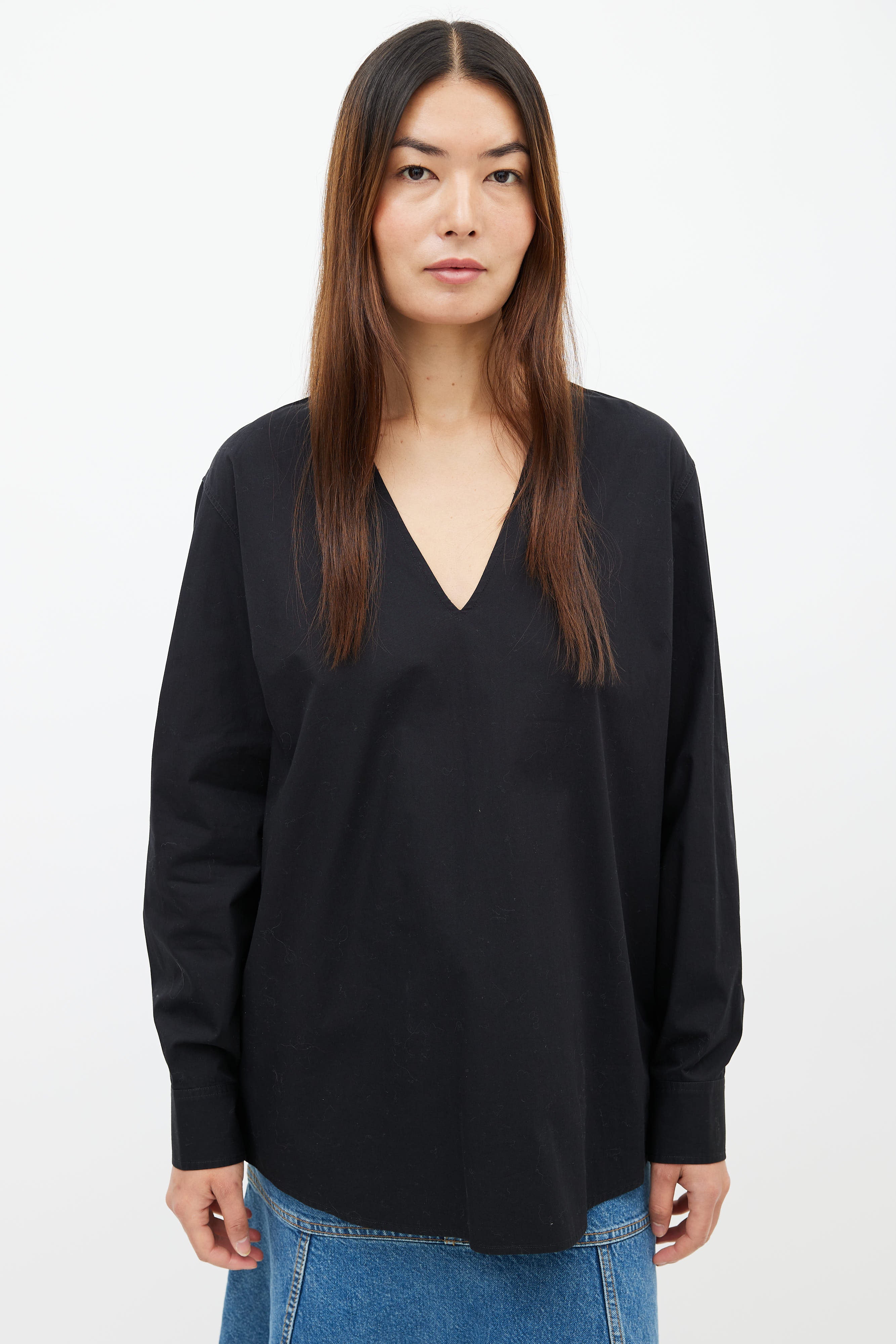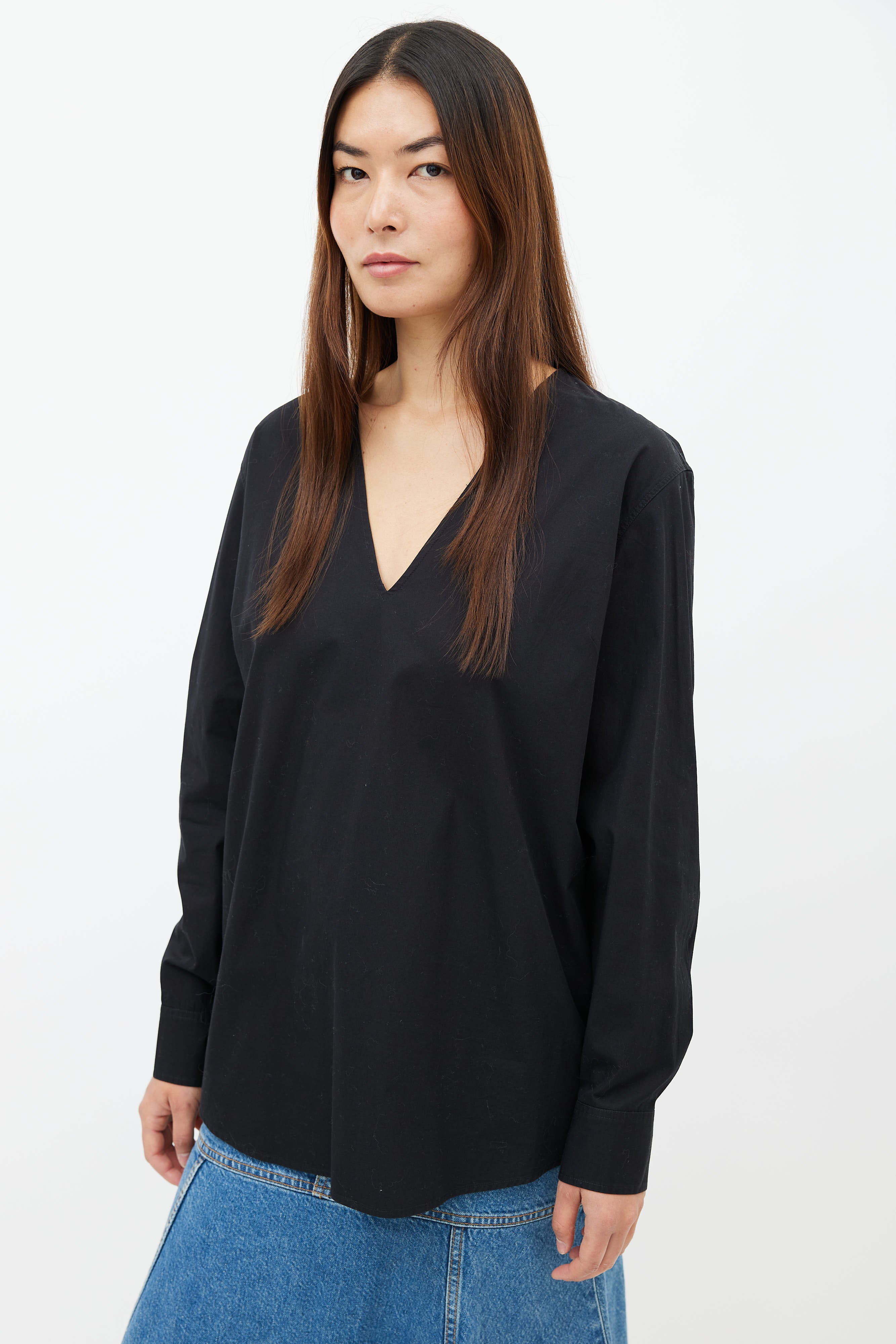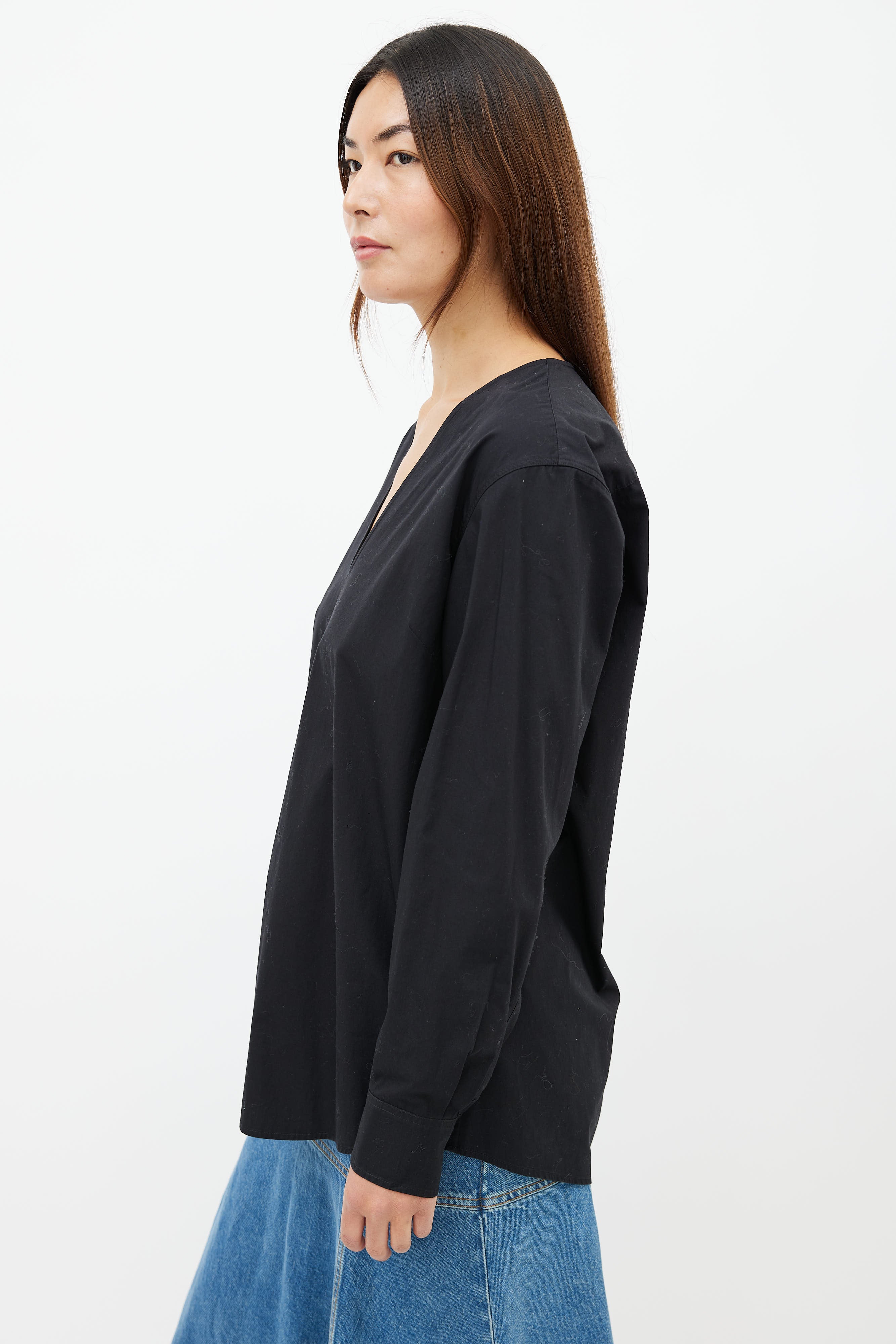 Black V-Neck Long Sleeve Shirt Large Size Guide