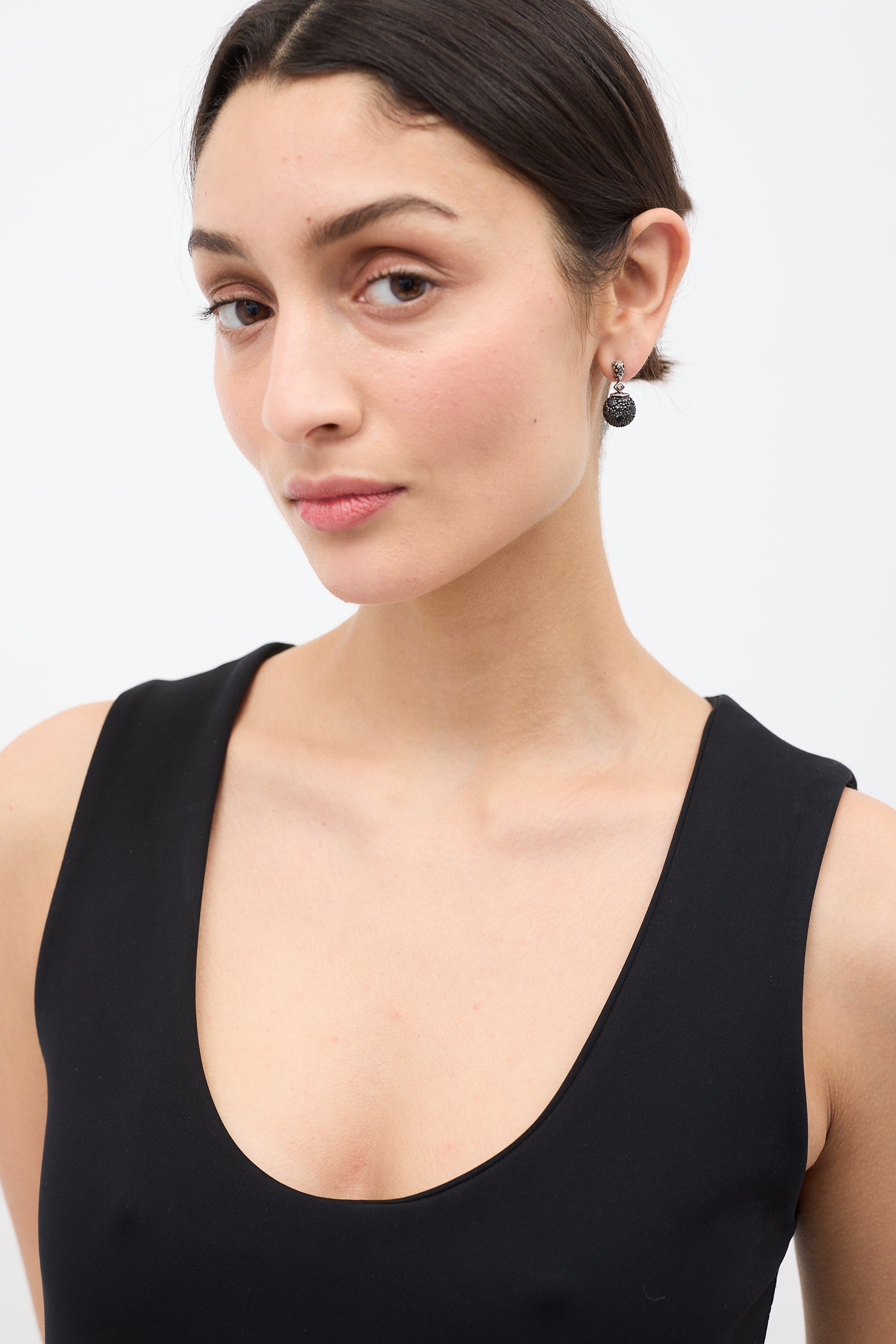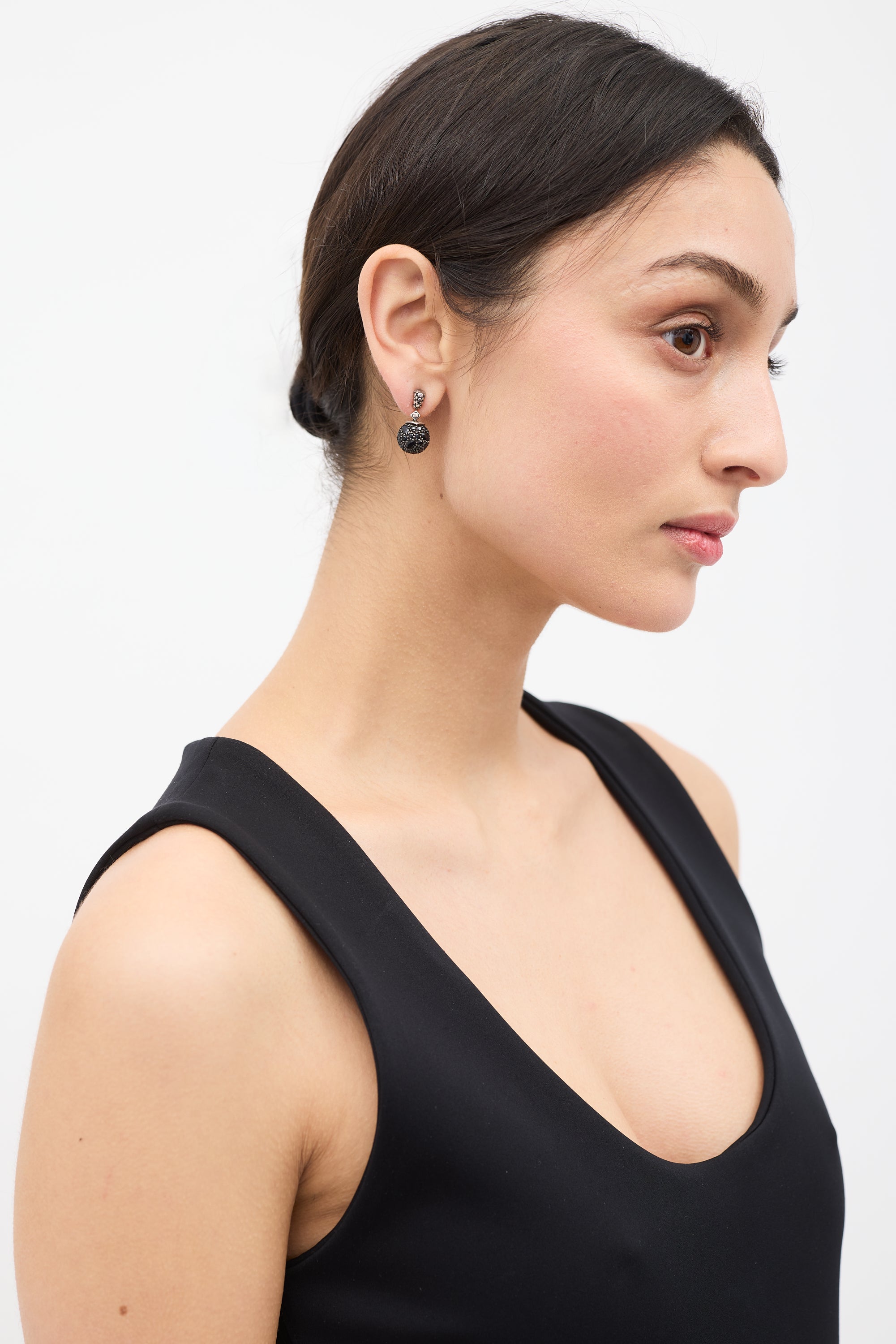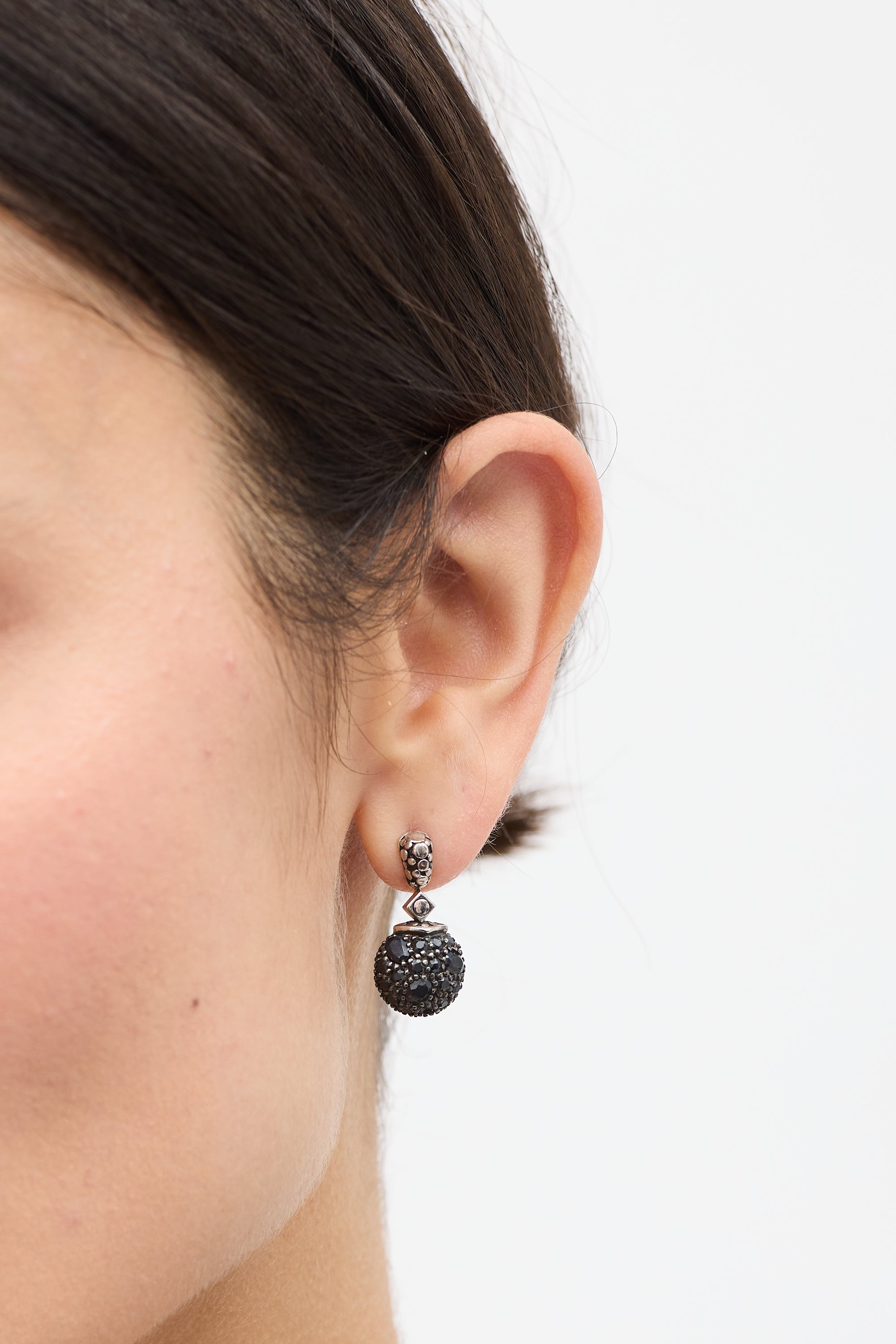 Pre-owned John Hardy sterling silver earrings featuring inset faceted natural black onyx dangle pendant and post back. Stamped with designer signature. Comes with appraisal.