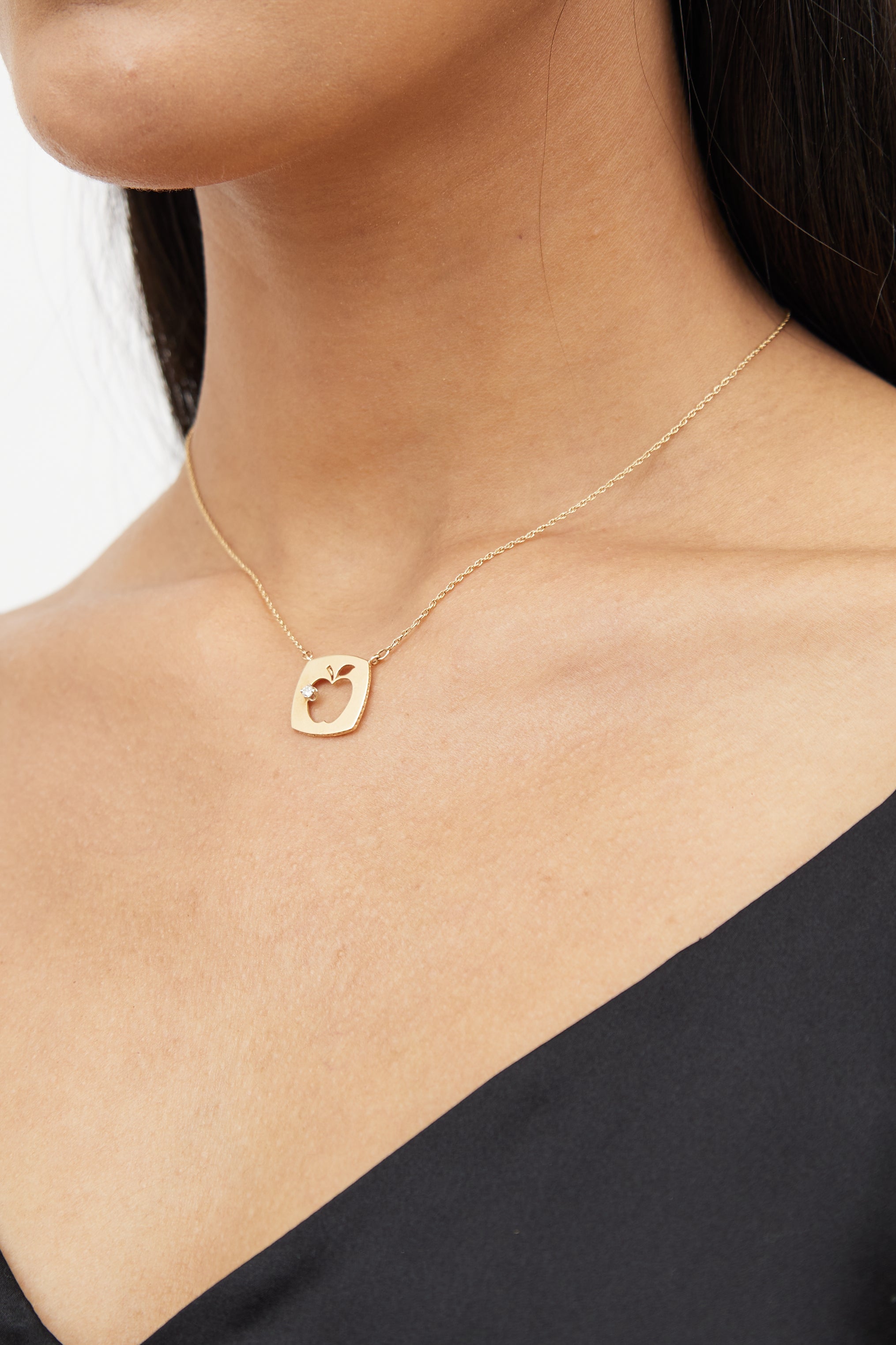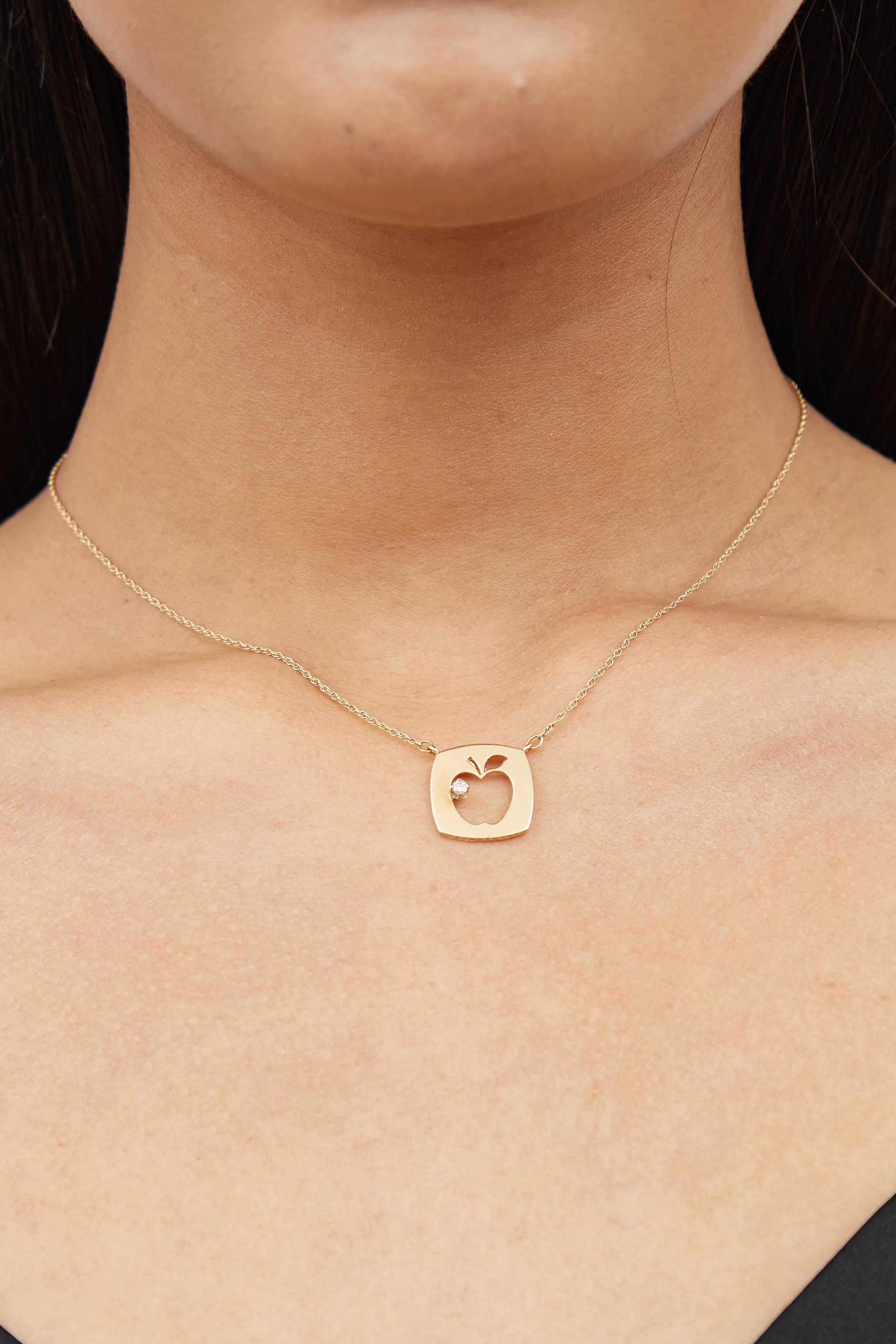 Fine Jewelry 14K Yellow Gold Diamond Apple Necklace