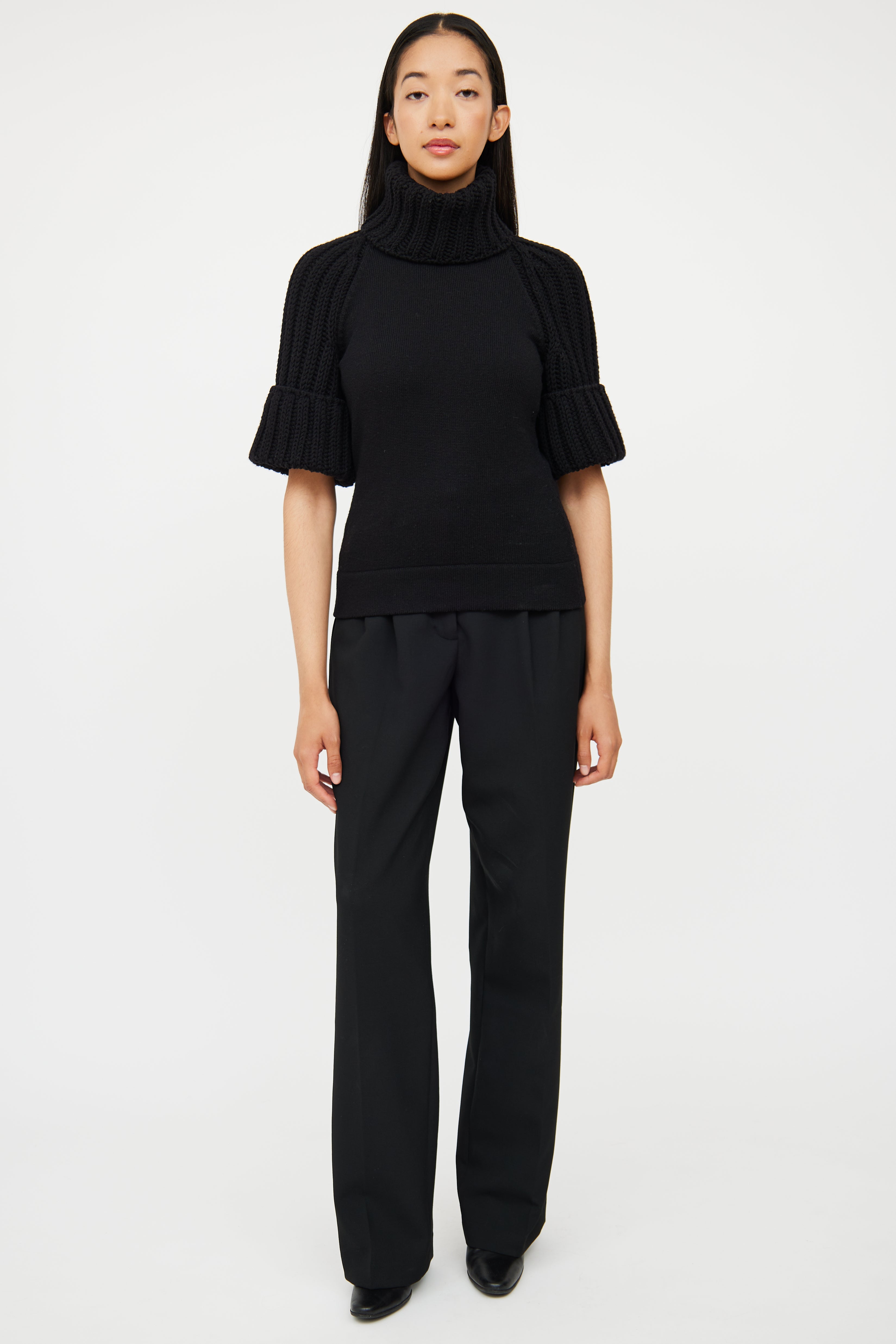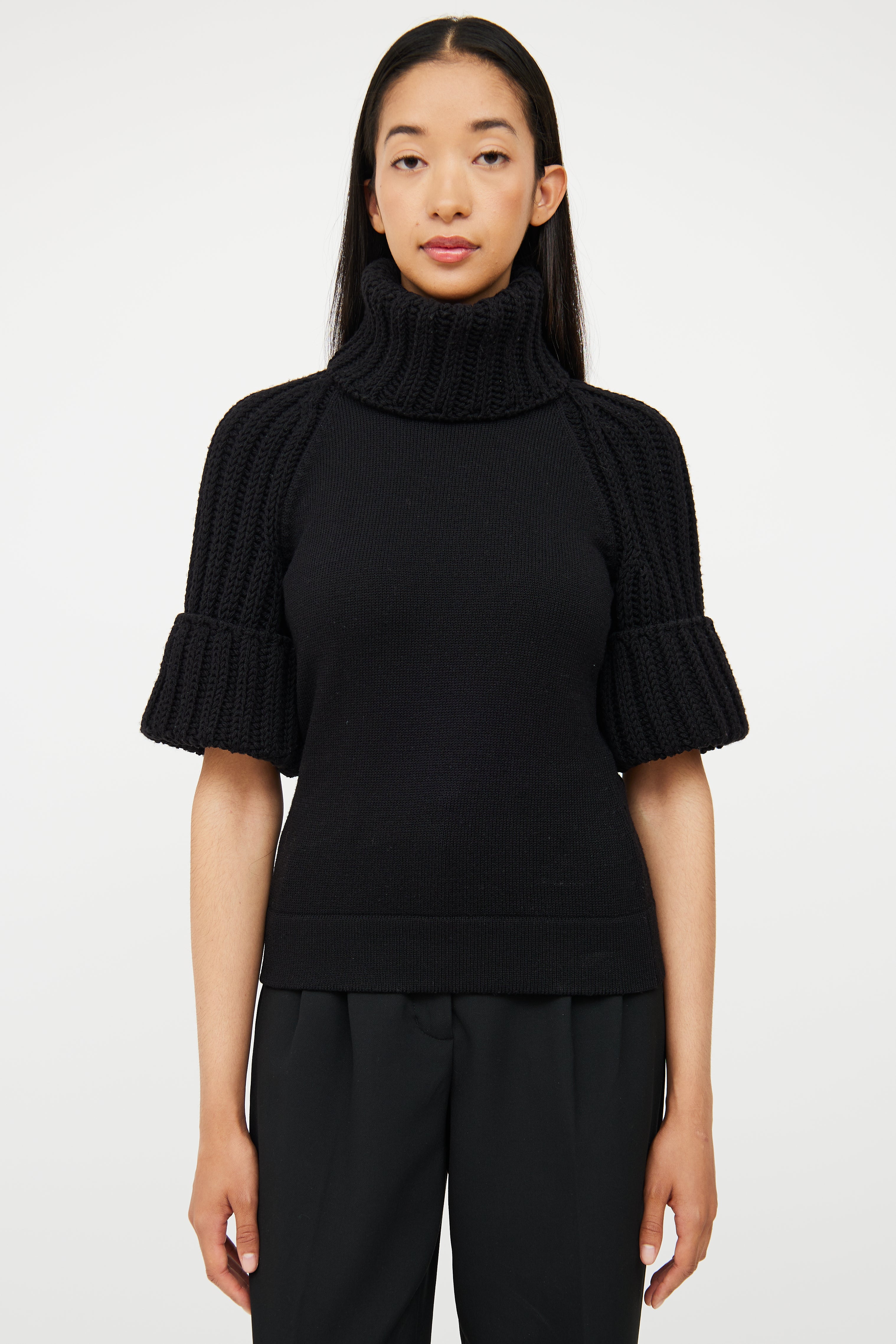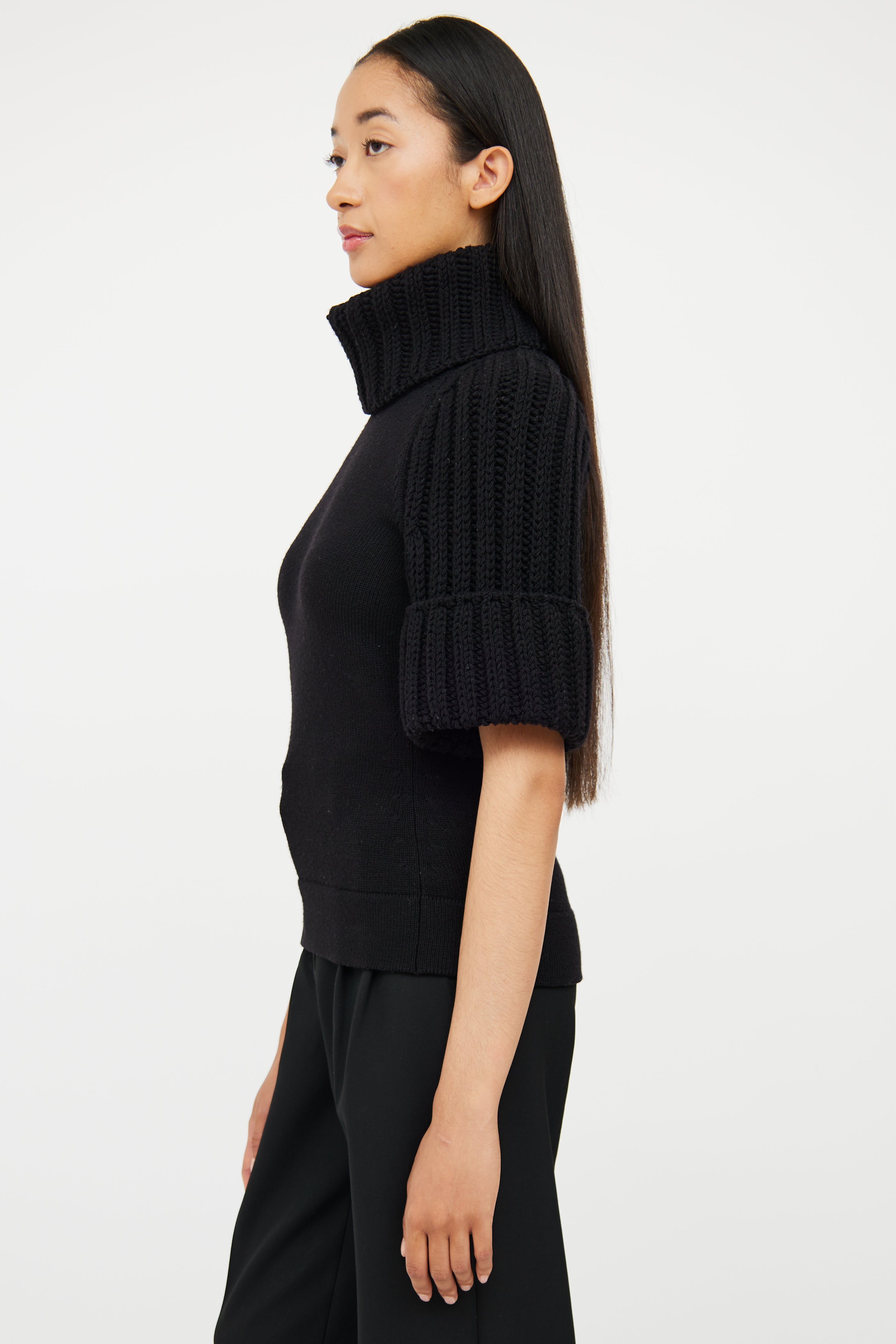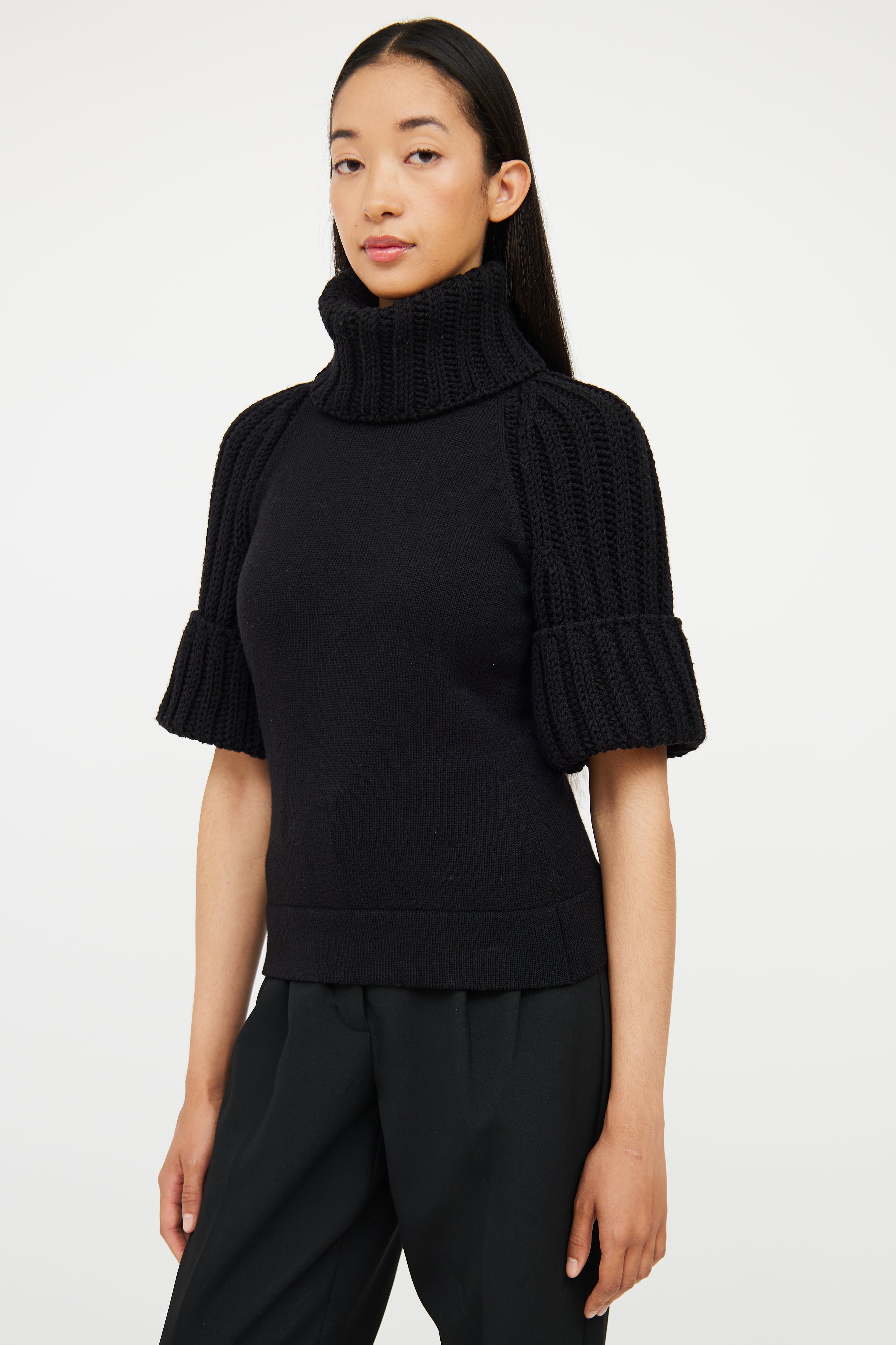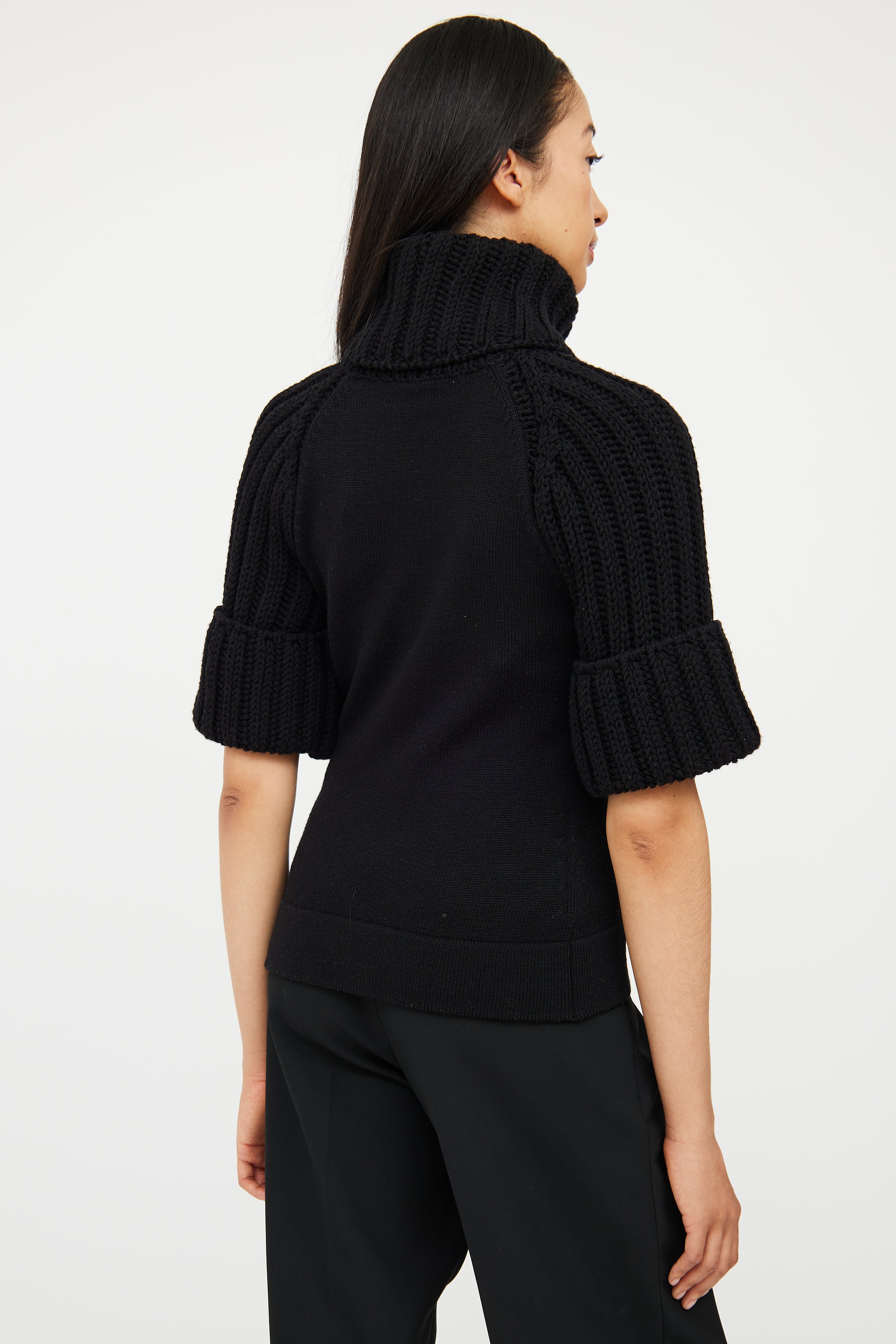 Pre-owned Fendi black wool short sleeve top featuring chunky knit turtleneck, chunky knit cuffed sleeves and ribbed body.