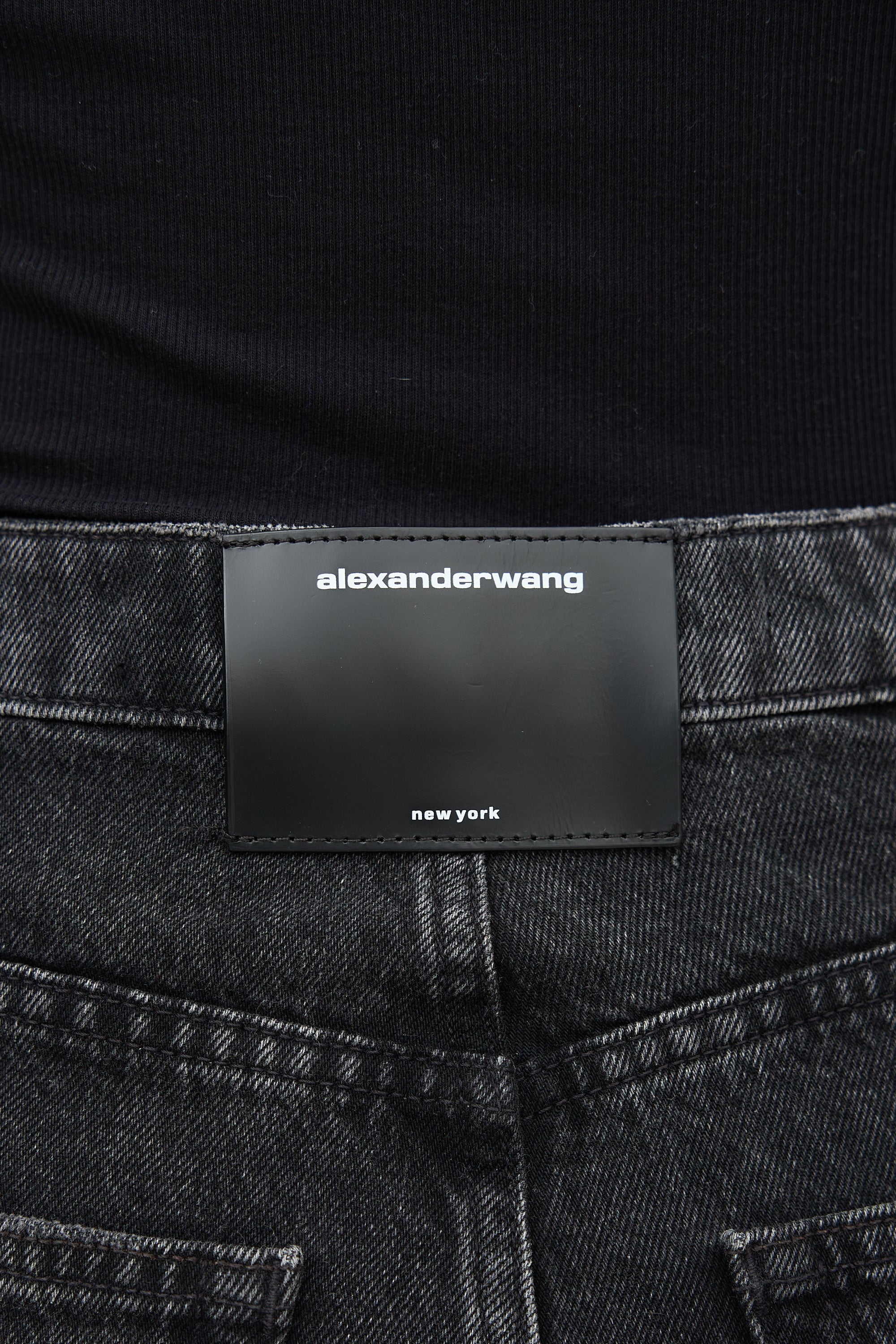 Pre-owned Alexander Wang washed black Bite shorts featuring foldover waist, raw hem, four pocket styling, black leather Jacron patch, and button fly.