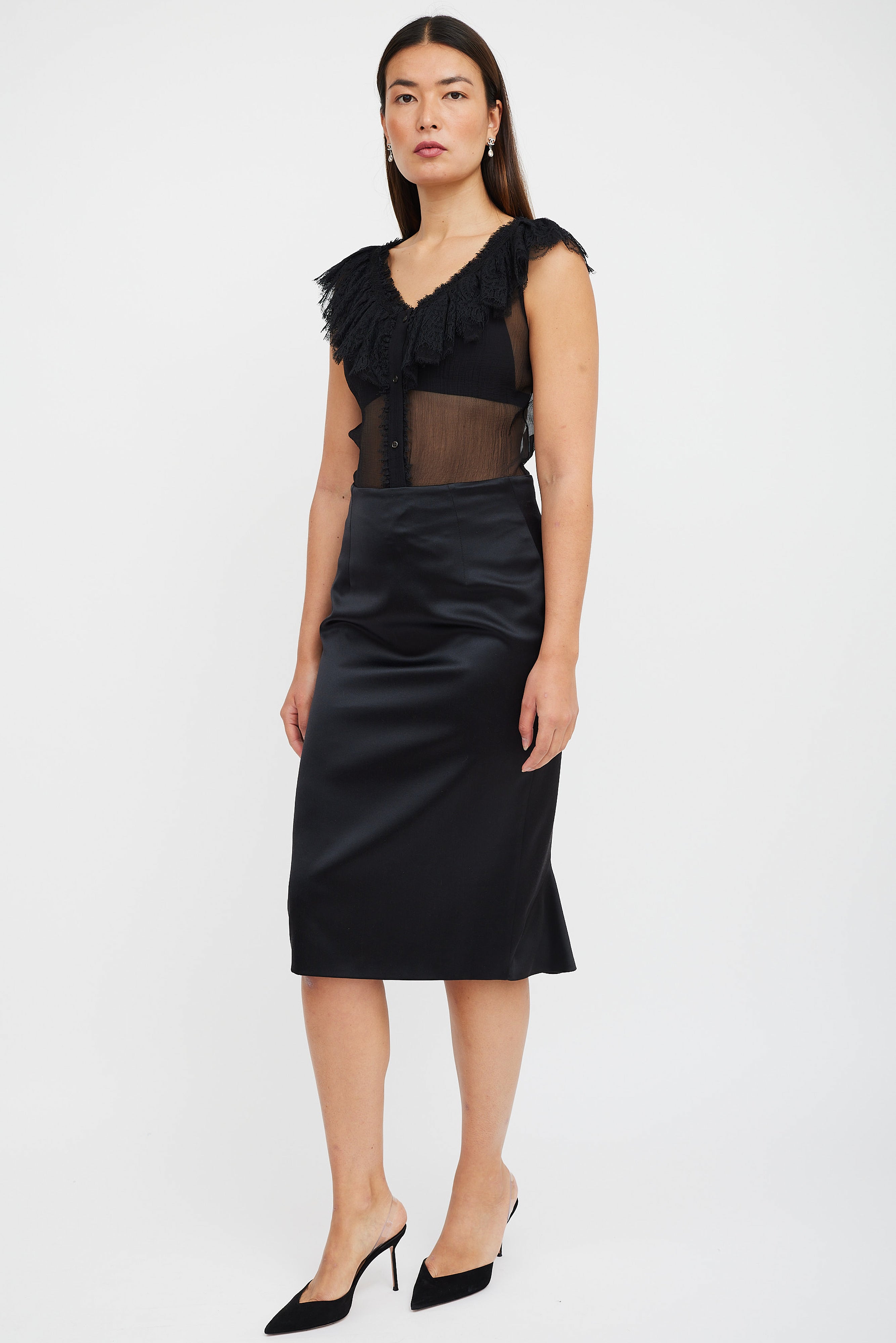 Black Silk Ruffled Skirt IT 44 Size Guide