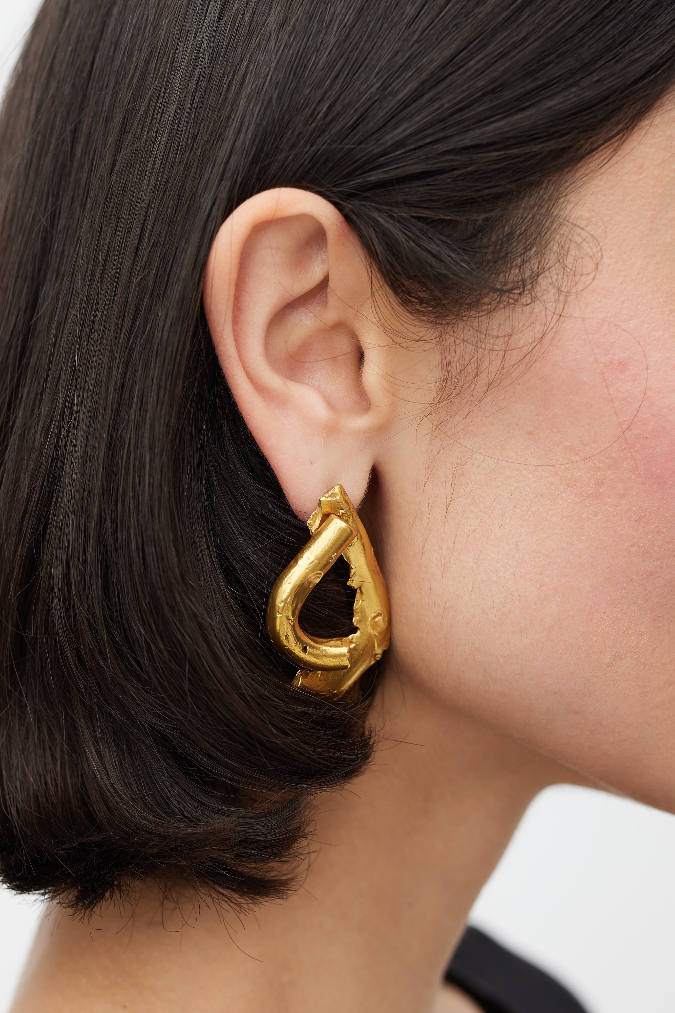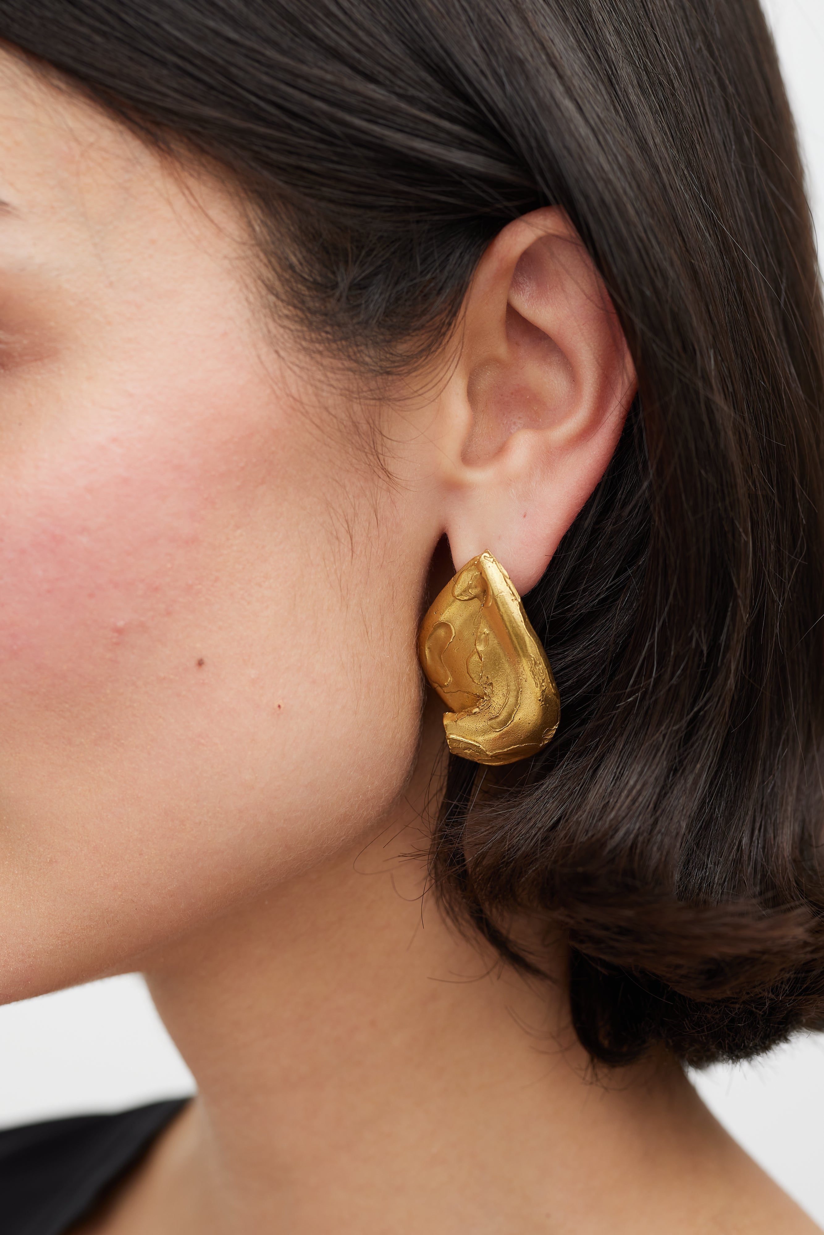 Pre-owned Alighieri gold Warrior asymmetrical earrings featuring textured abstract detailing, and push back closure.