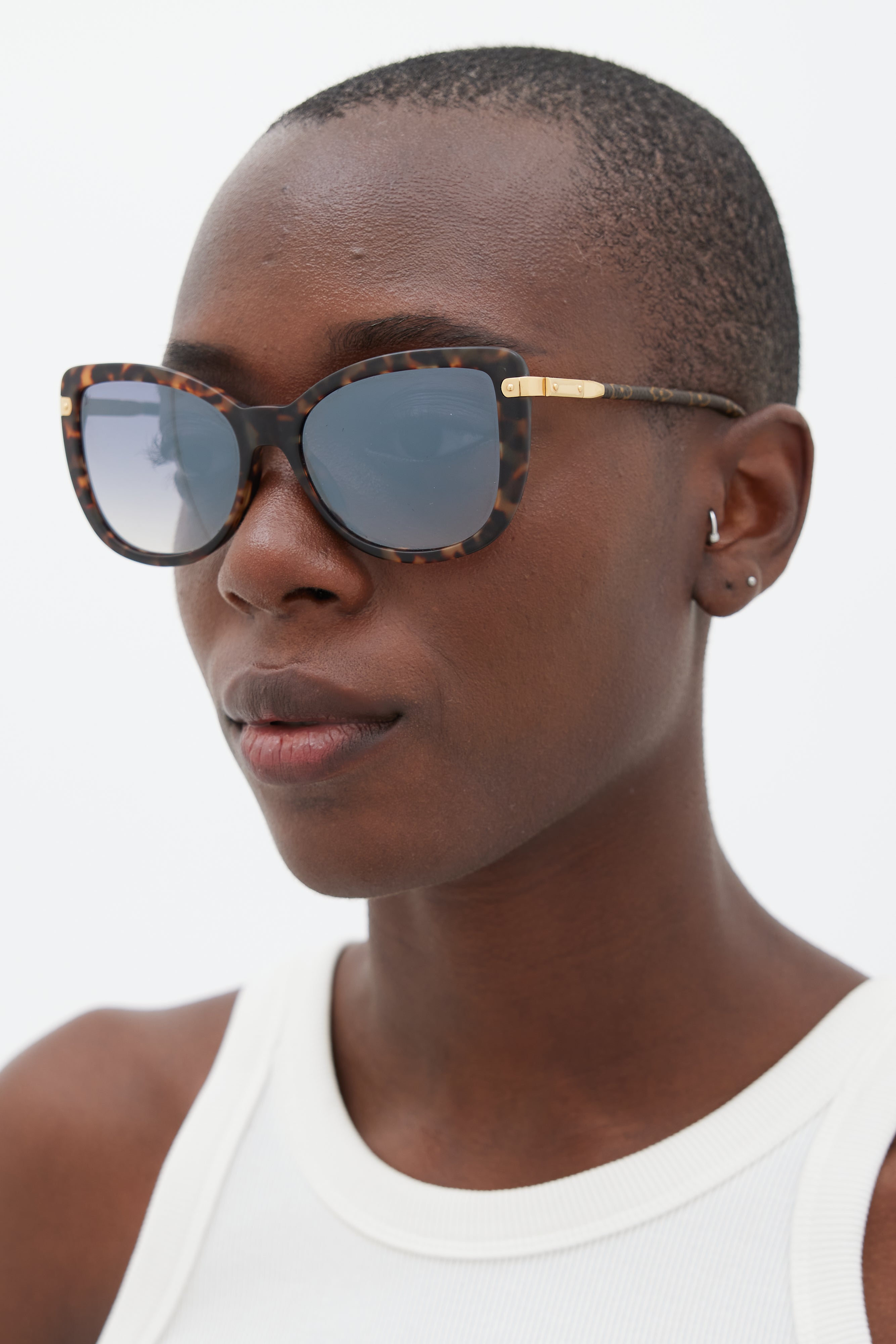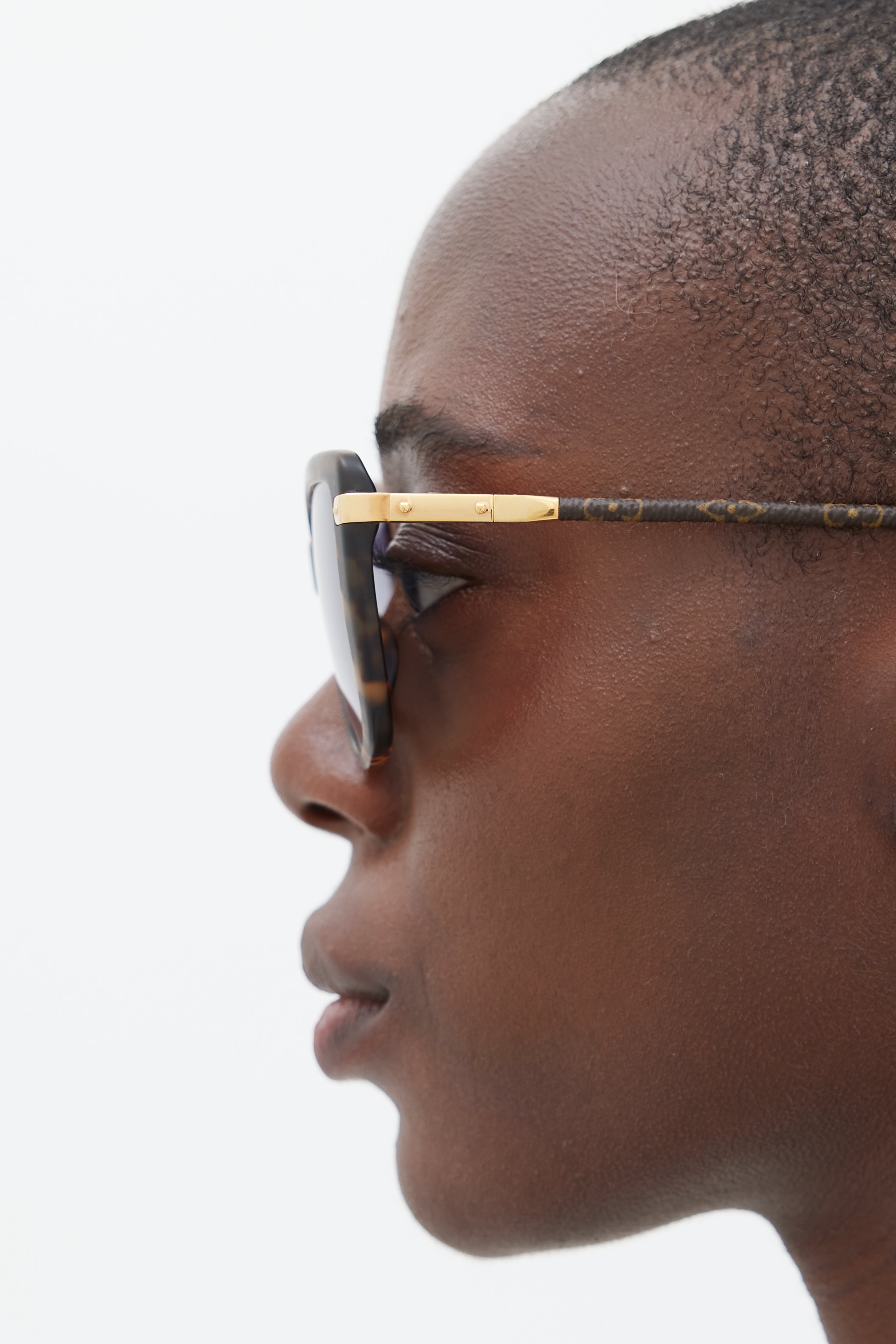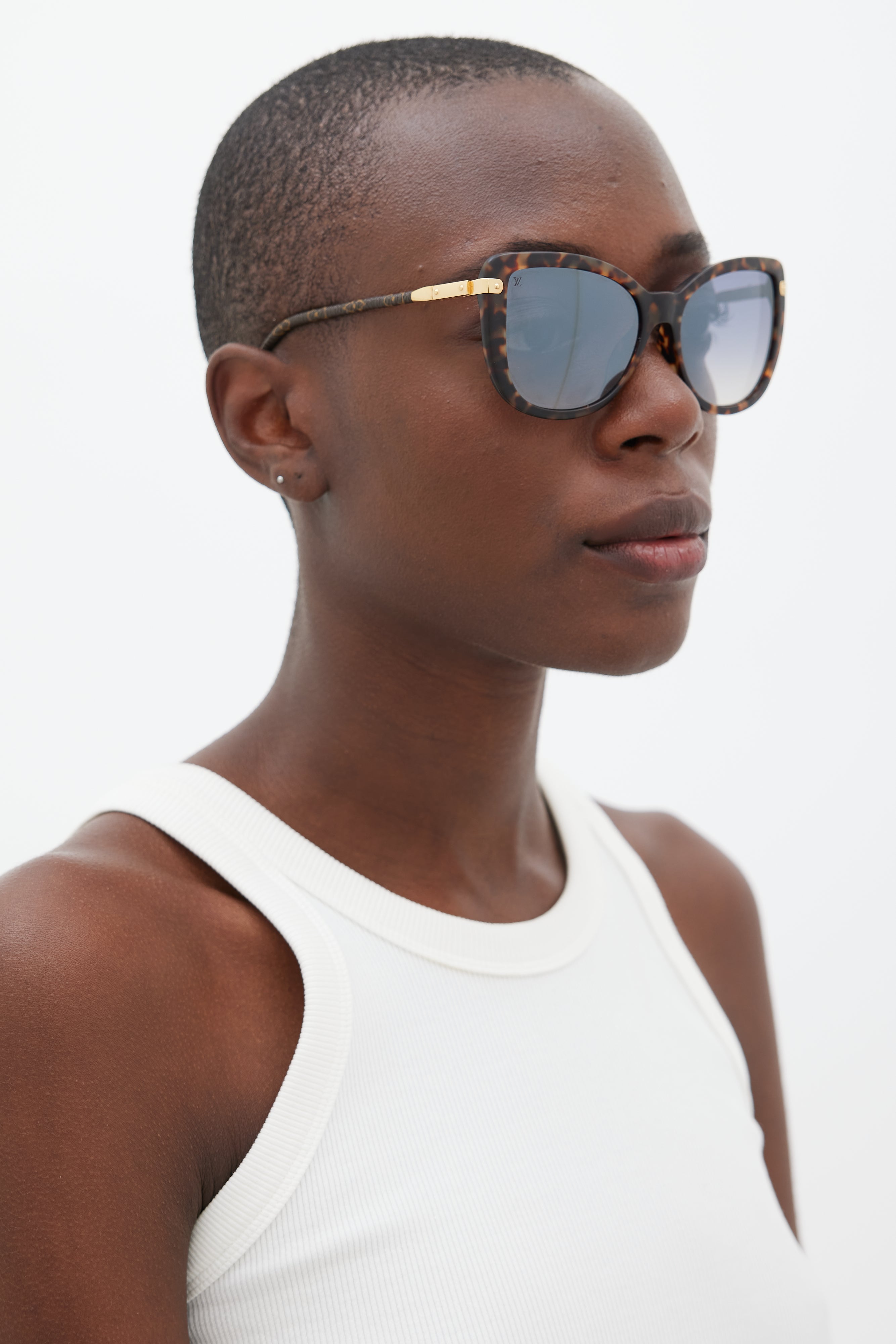Pre-owned Louis Vuitton brown Z0629E sunglasses featuring a cateye tortoise shell frame, tinted lenses, nose pads, monogram coated canvas arms, and gold tone hardware at temple. Comes with original case.
