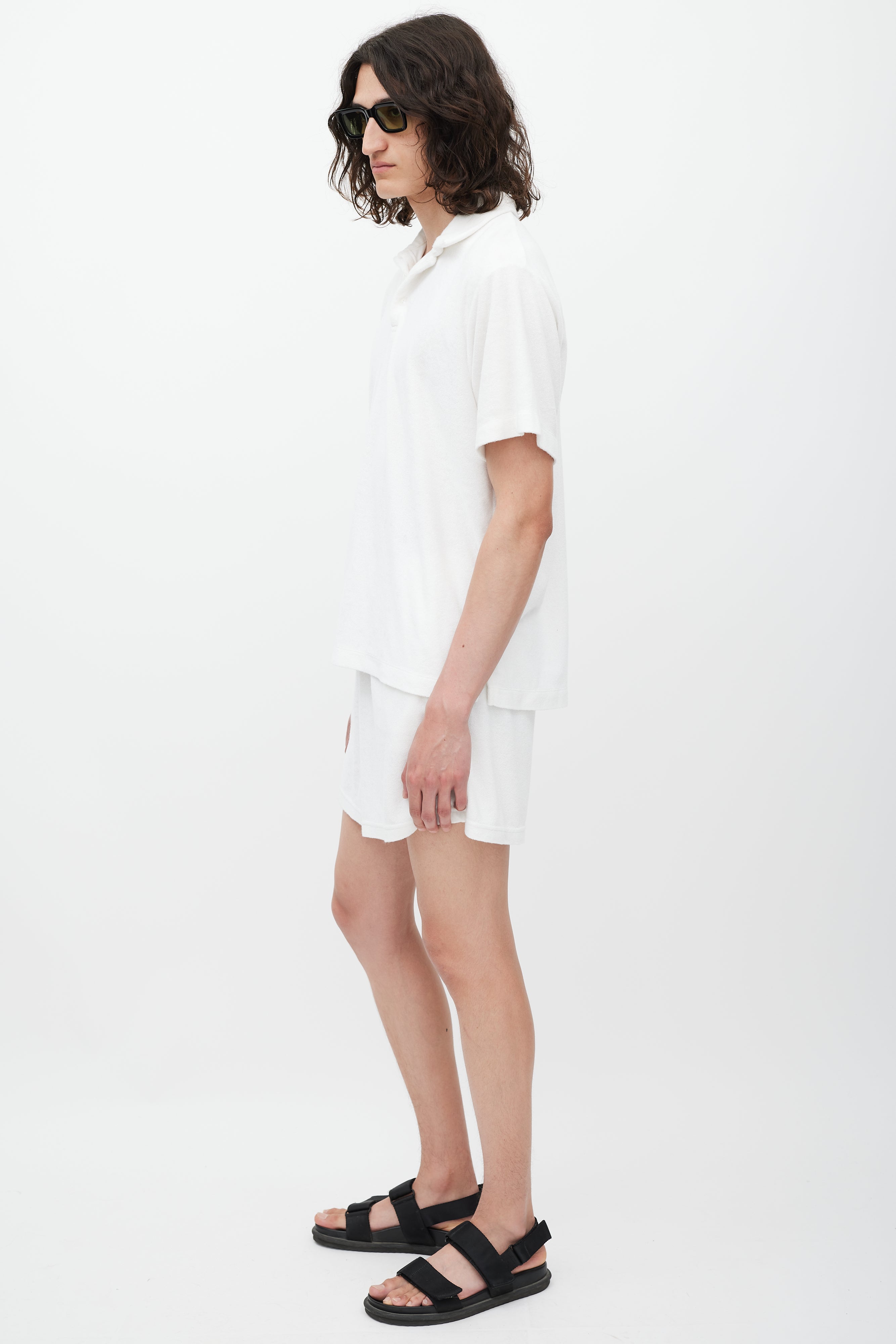 White Terry Polo Shorts Co-Ord Set Medium Size Guide