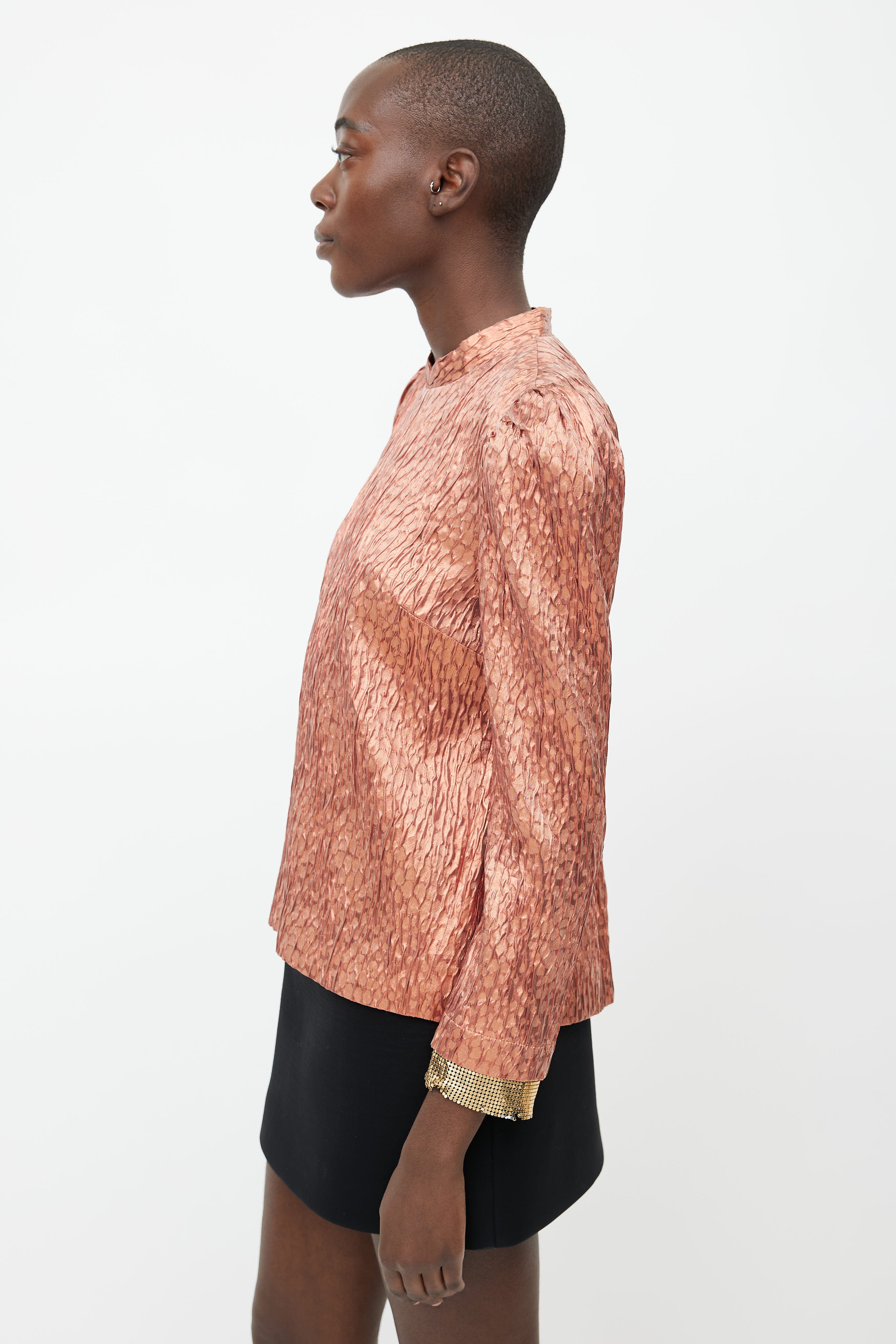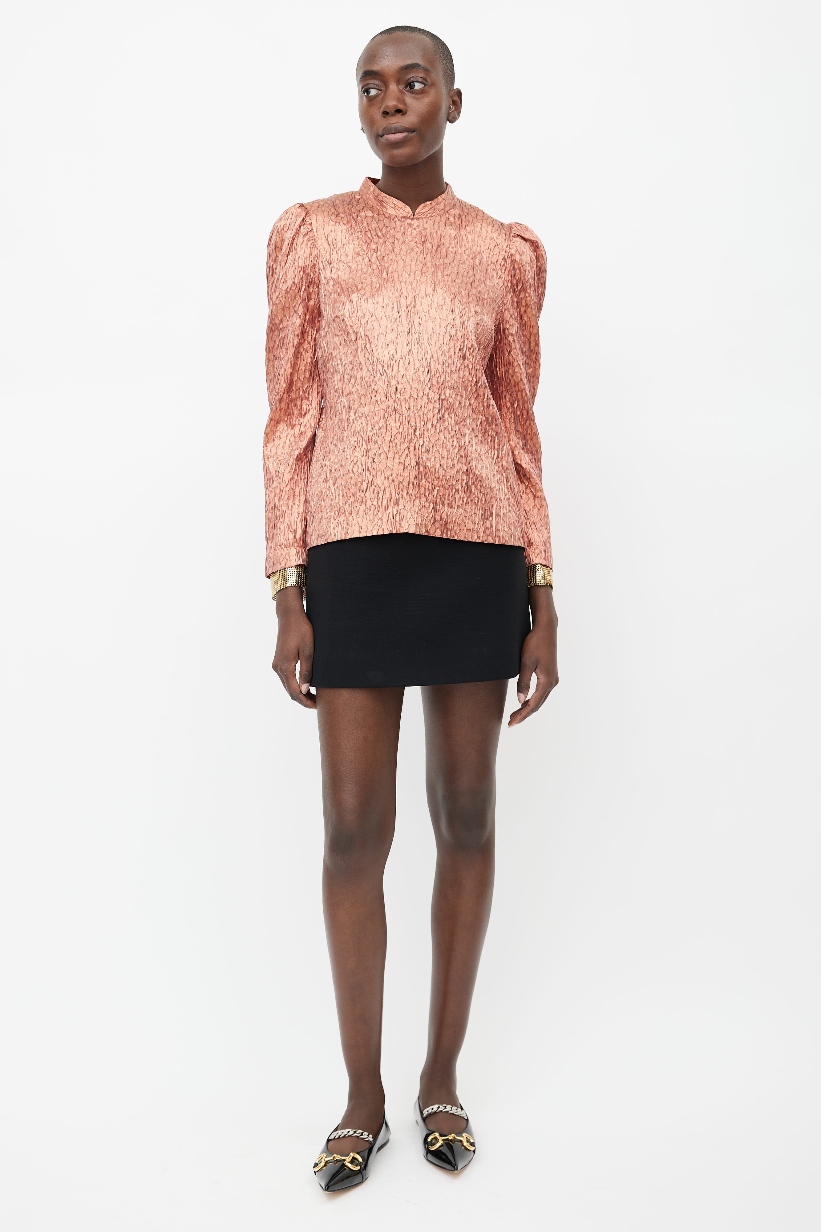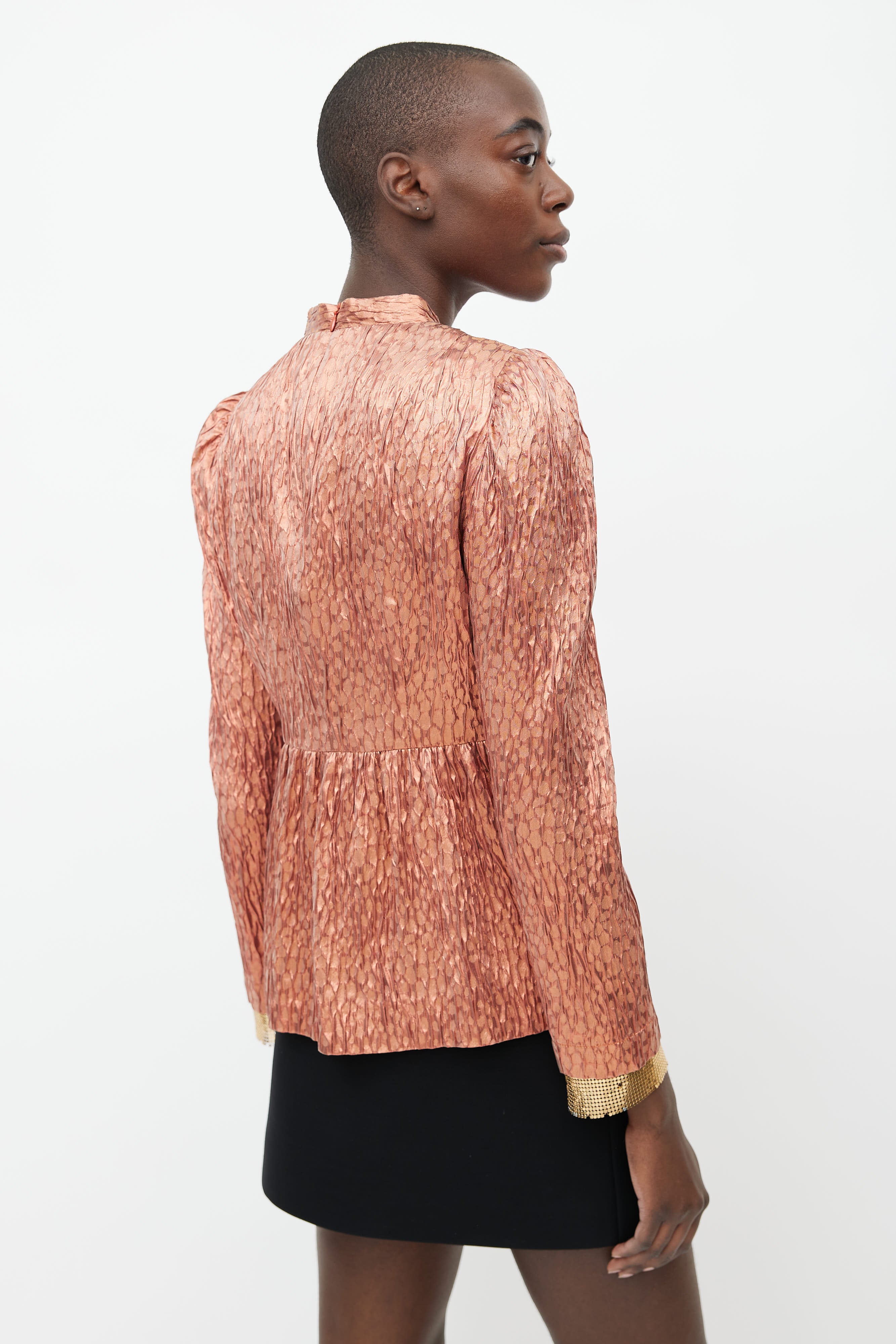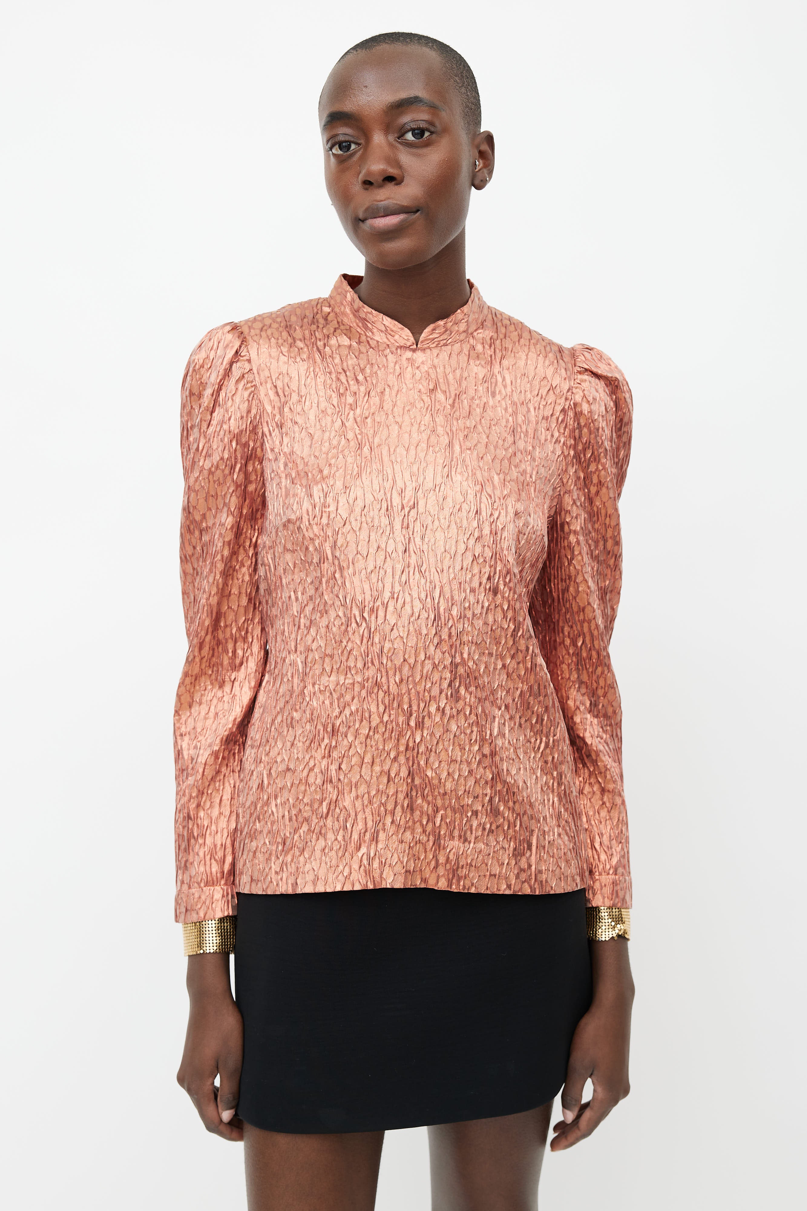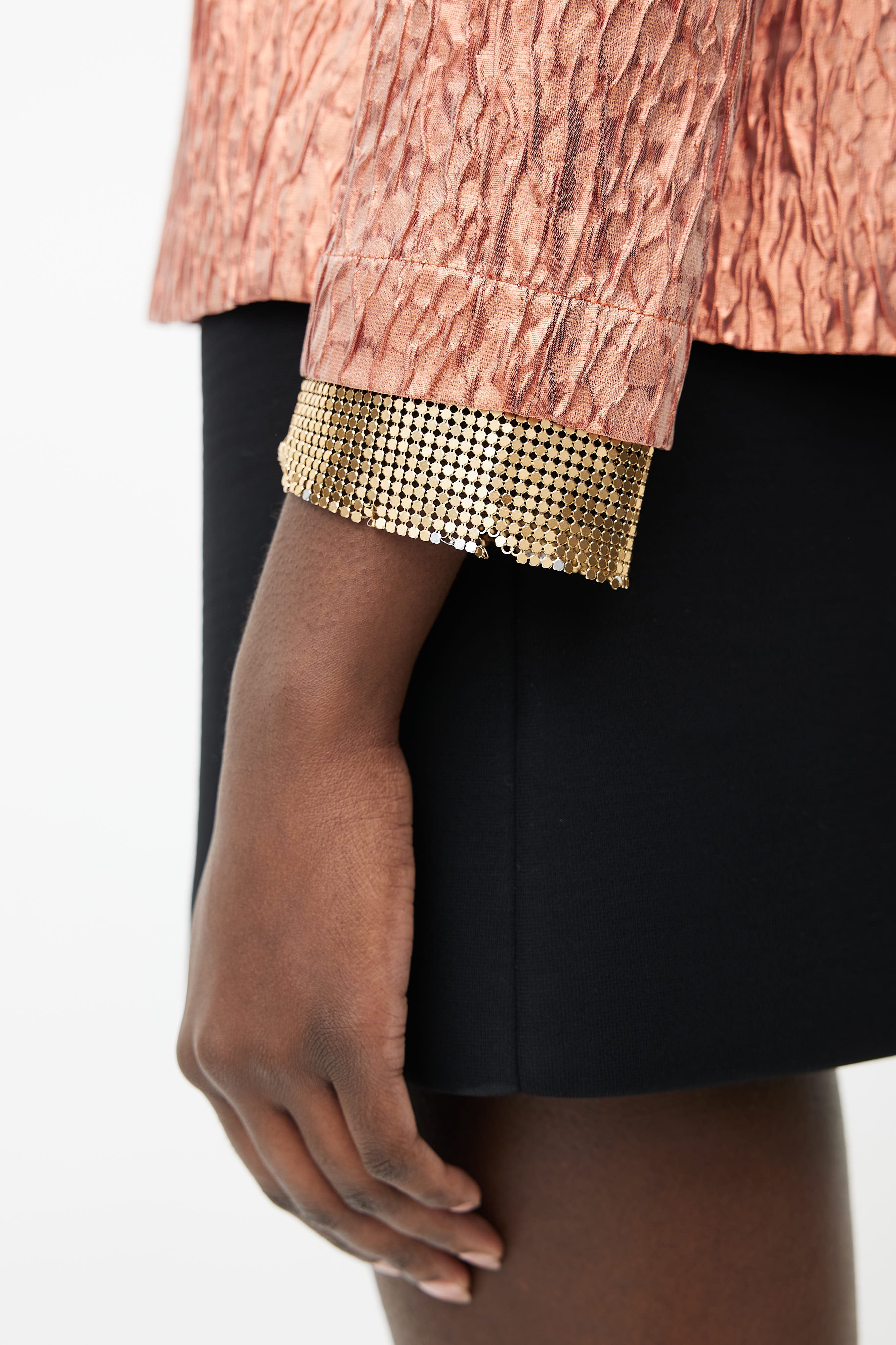Orange Metallic Silk Blend Textured Top US 4 Size Guide