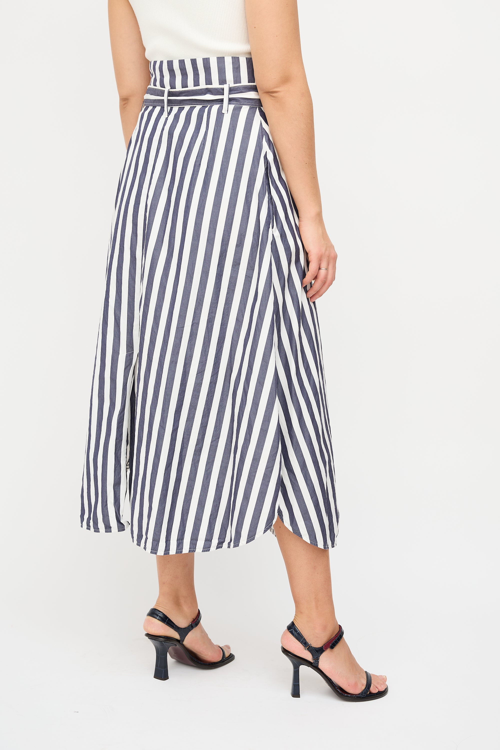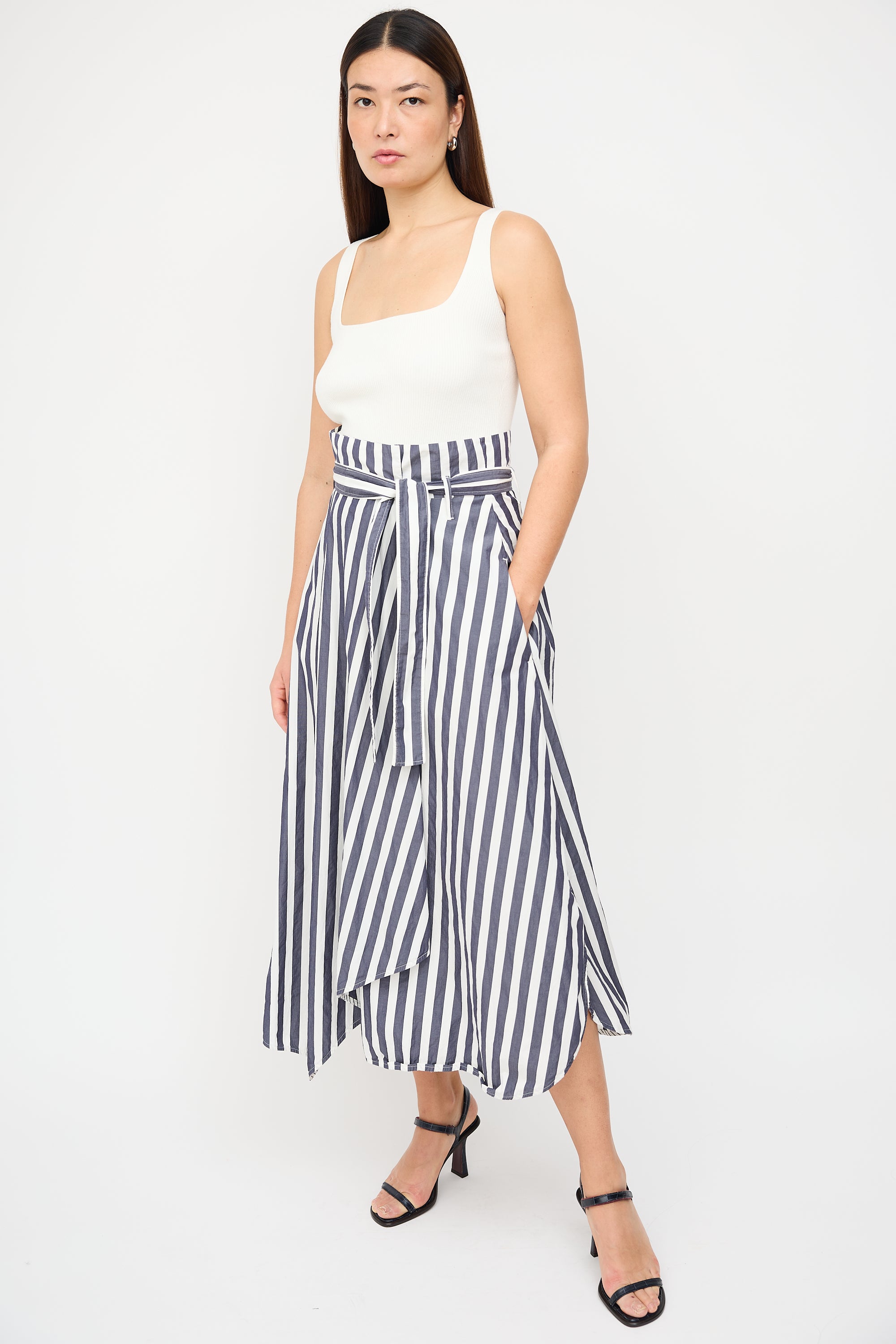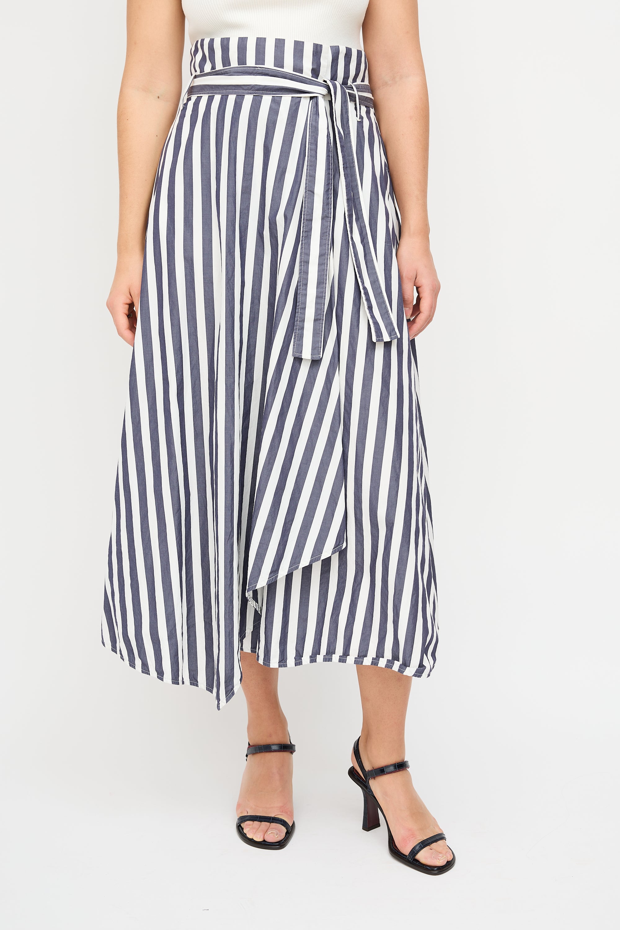 Max Mara Navy & White Stripe Midi Wrap Skirt