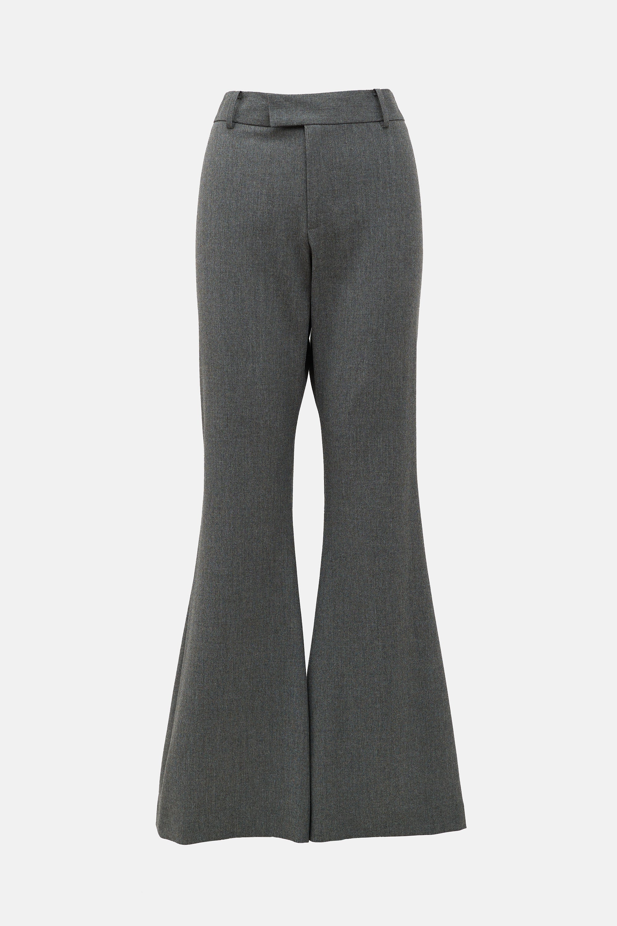 Pre-owned Smythe grey pants featuring a mid rise, zip fly, belt loops, and flared bootcut leg.