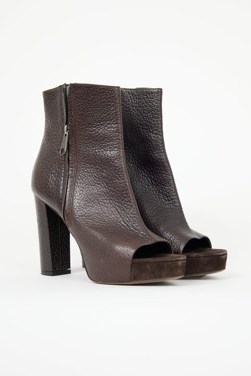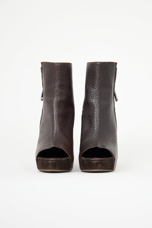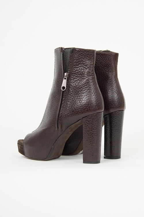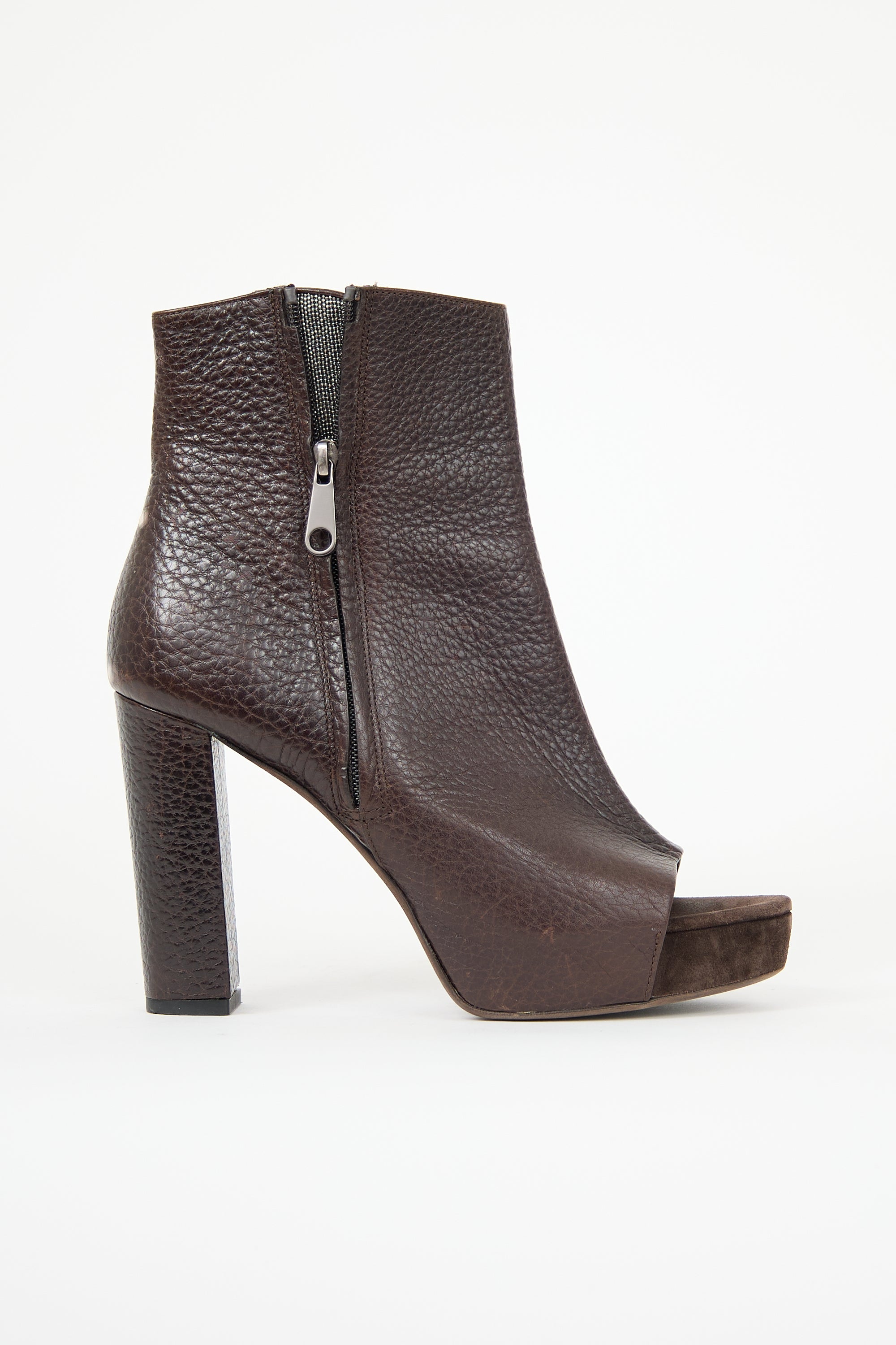 Brunello Cucinelli Leather Peep Toe Bootie IT 41