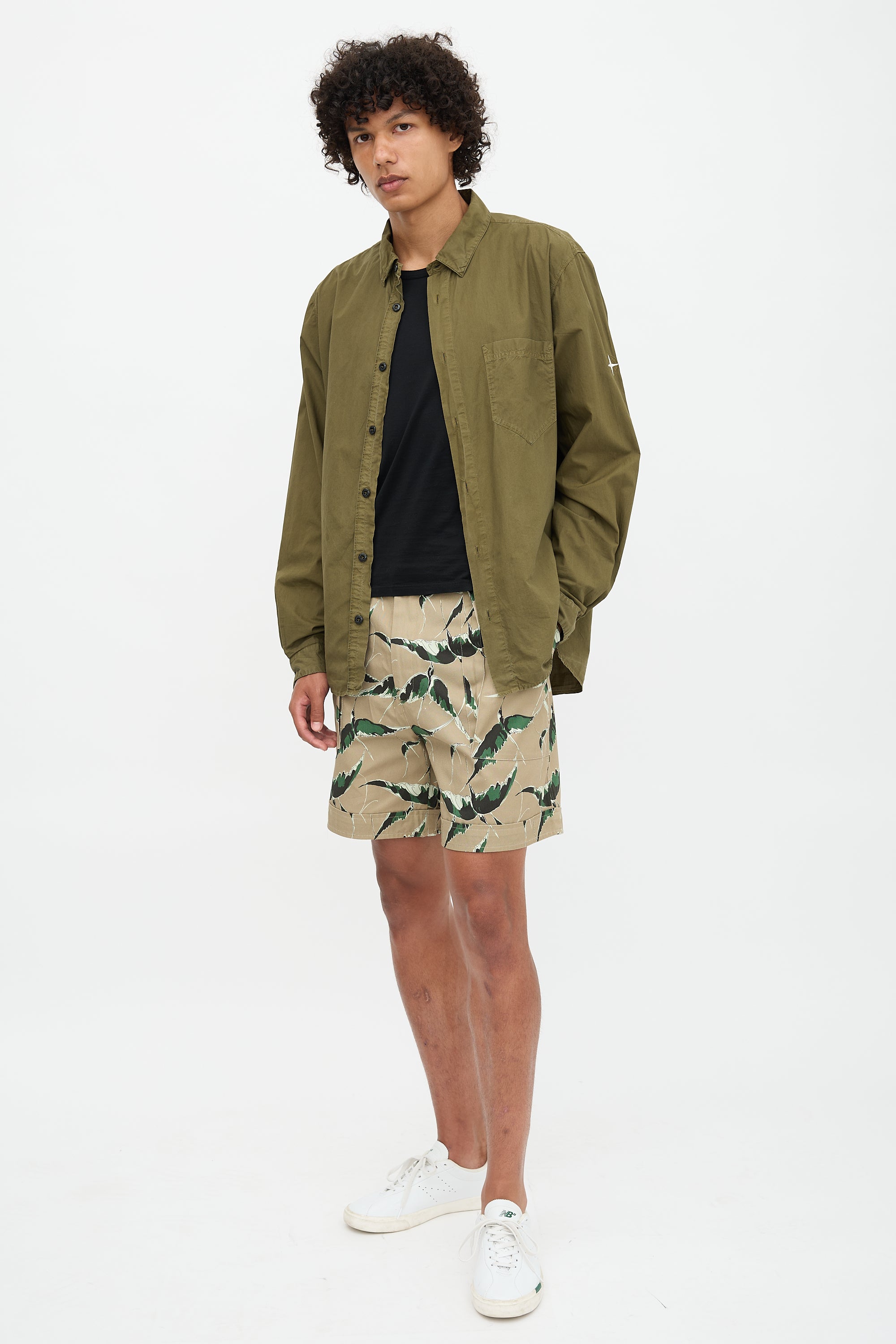 Pre-owned Valentino Hawaiian Couture beige and green Bermuda shorts featuring bird print, four pocket styling, and zip fly.