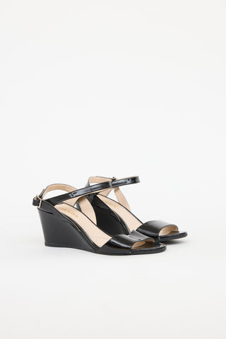 Bottega Veneta Patent Intrecciato Wedge Sandal Bottega Veneta Patent Intrecciato Wedge Sandal