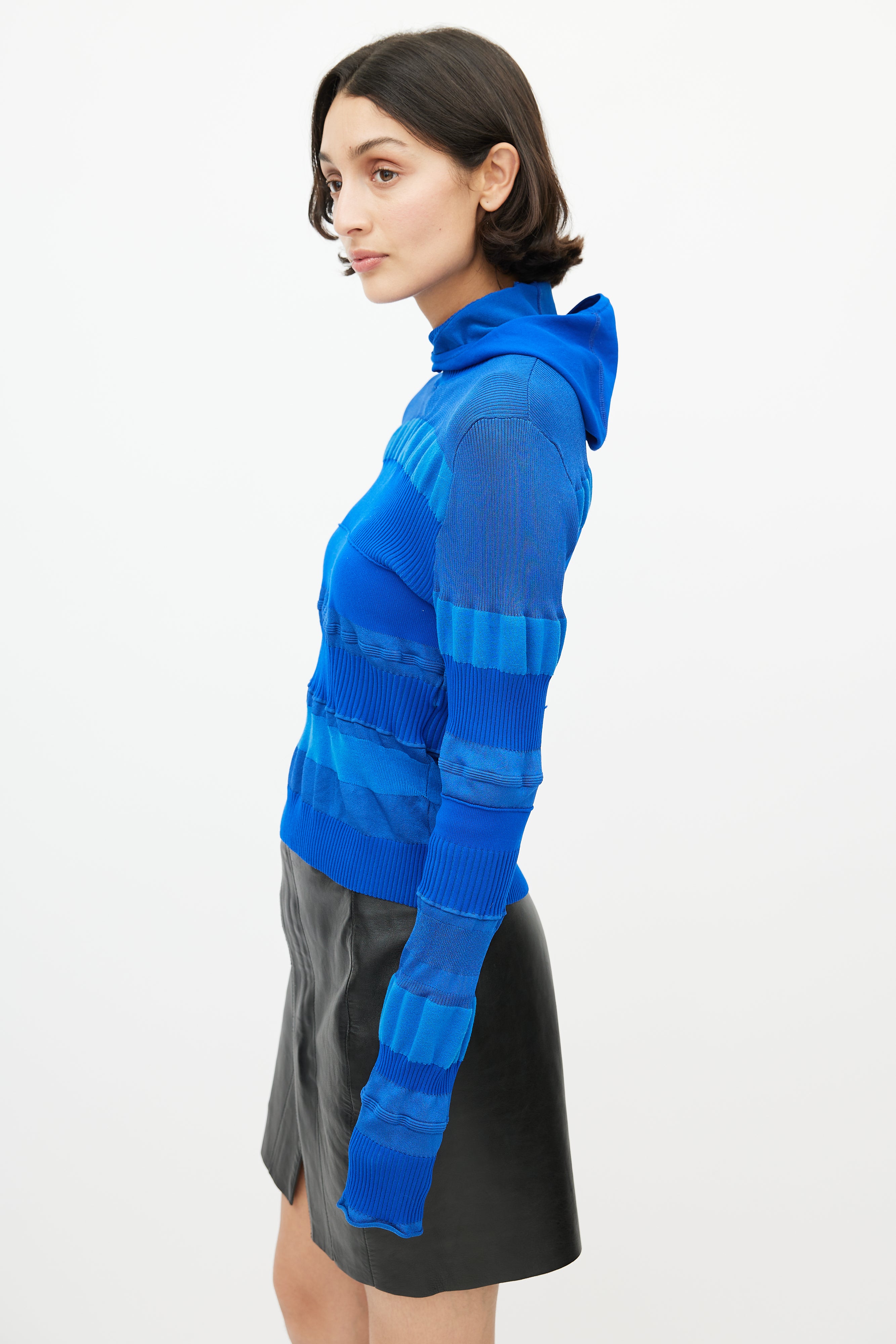 Blue Ribbed Hooded Knit Top Large Size Guide