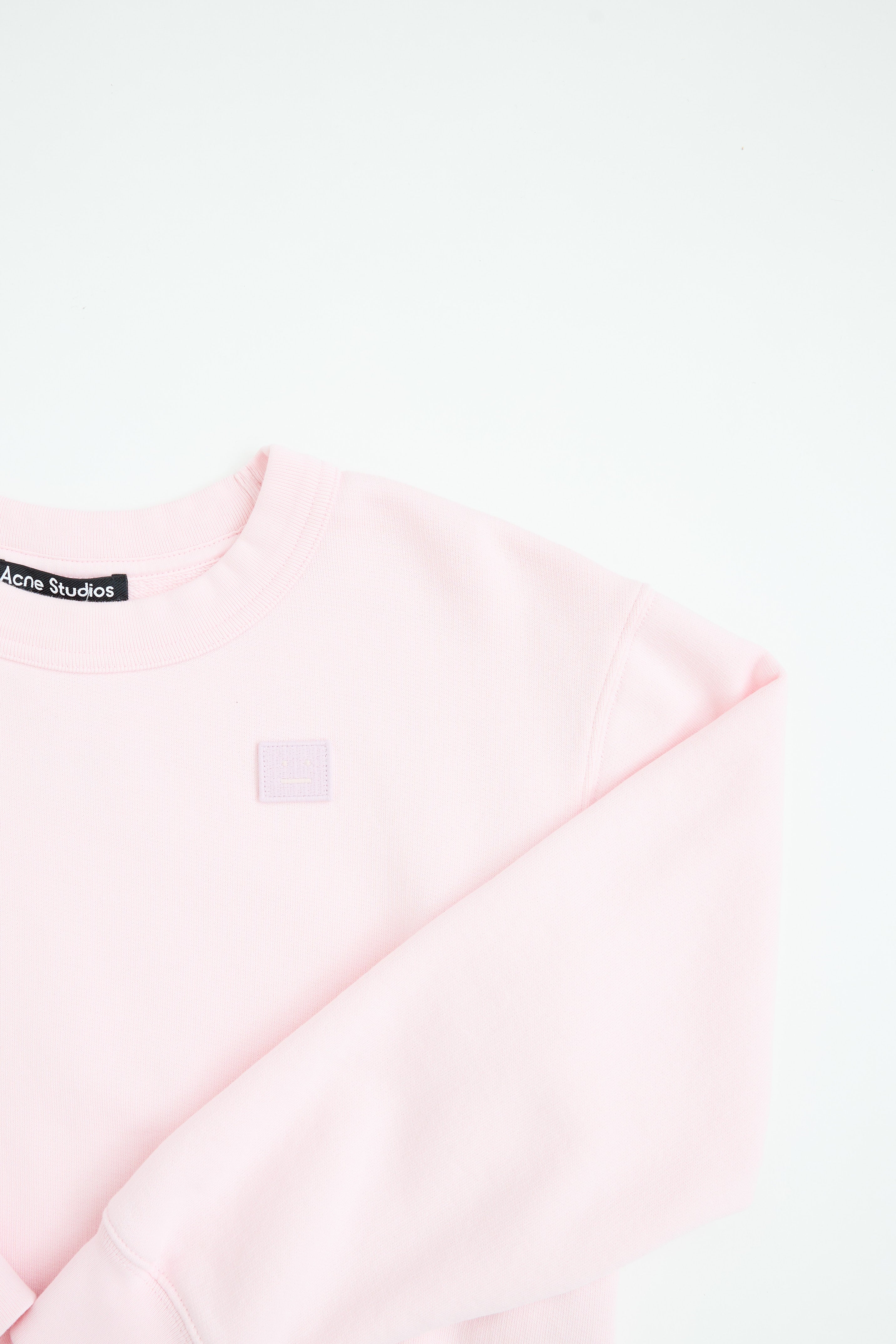 Pre-owned Acne Studios light pink cotton Face logo cotton co-ord set featuring patch logo at chest, long sleeves, crewneck and ribbed trim throughout. Sweatpants featuring patch logo at front, elastic waist with drawstrings, patch pocket art back and elastic cuff at hem.