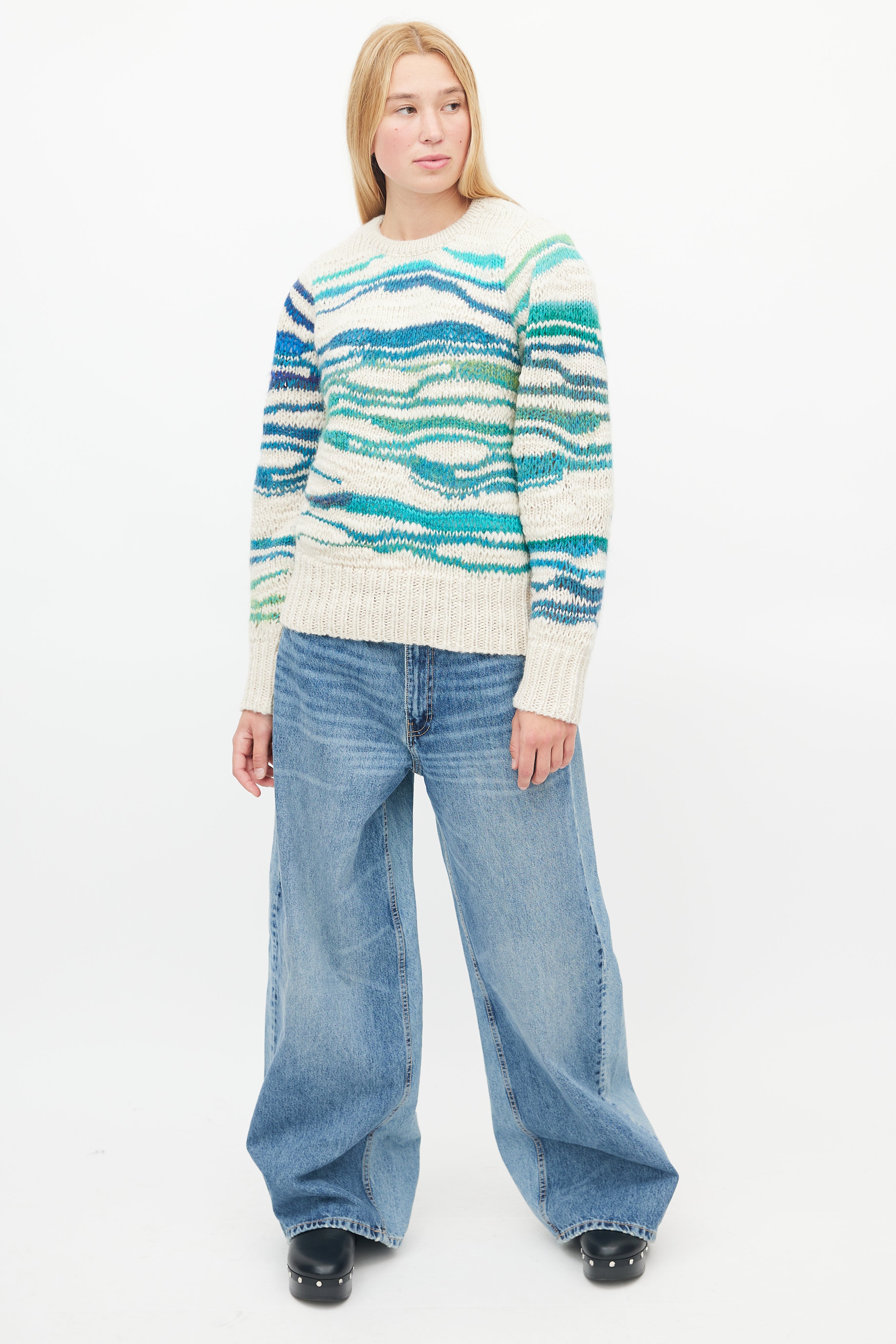 Beige & Blue Loose Knit Sweater IT 40 Size Guide