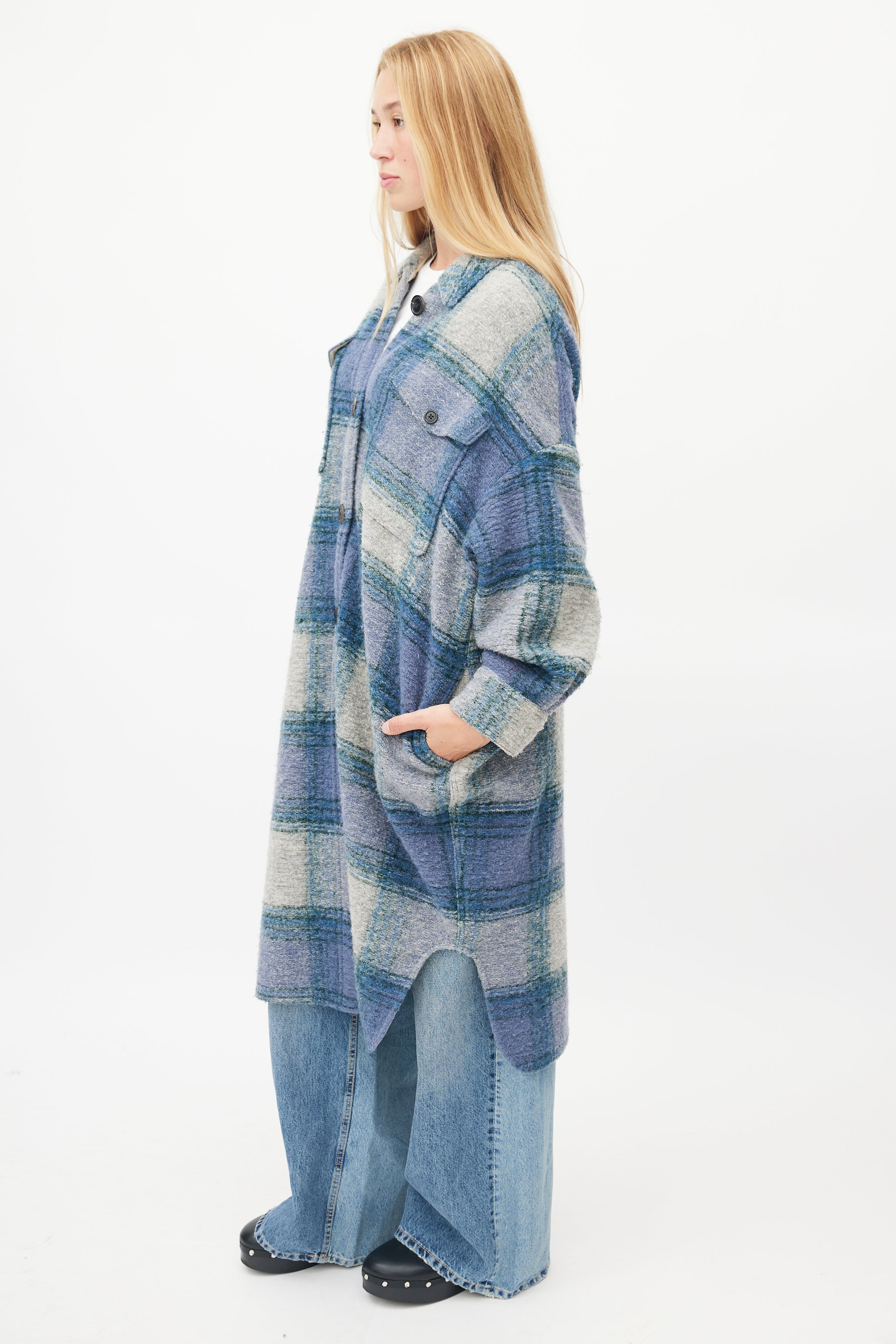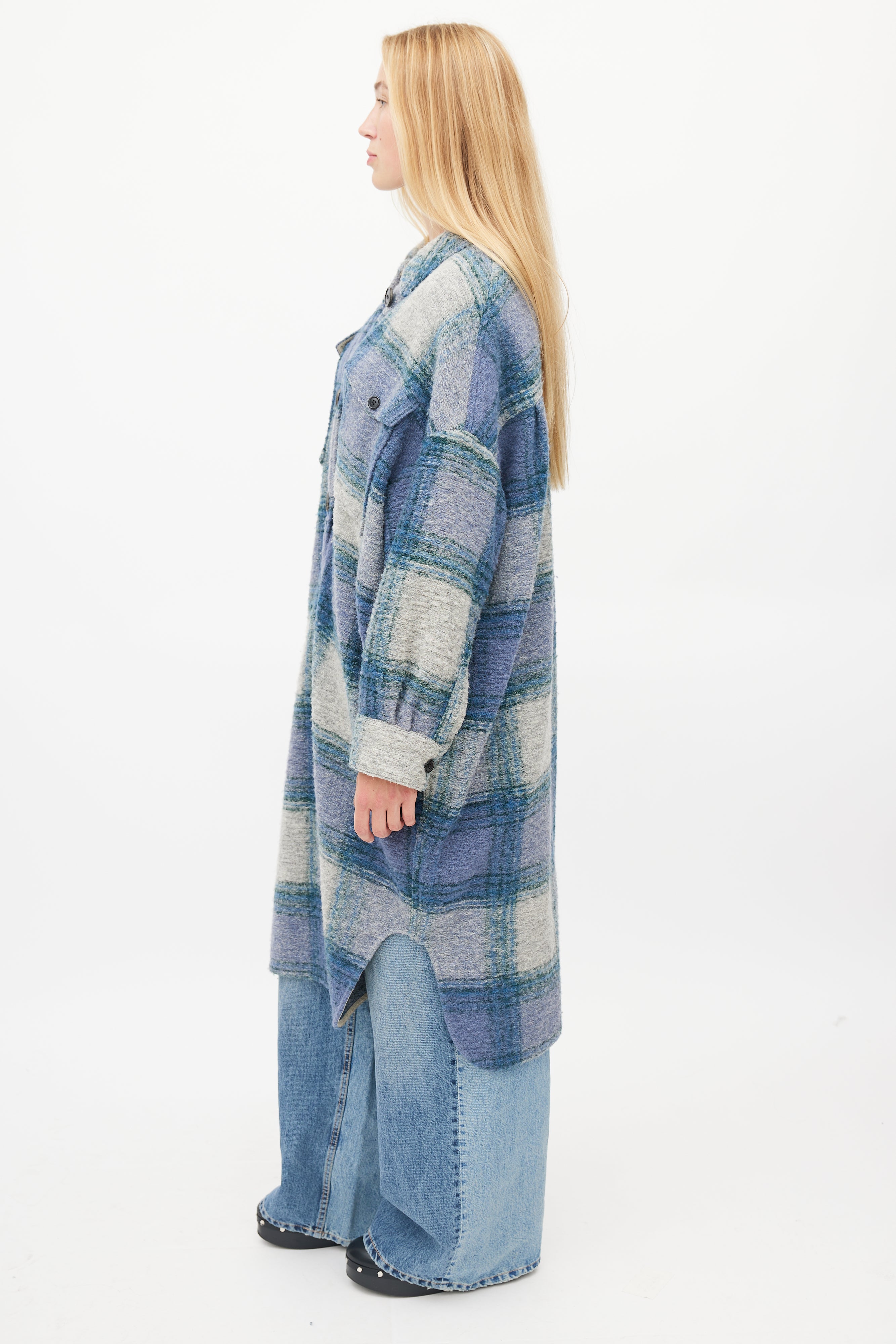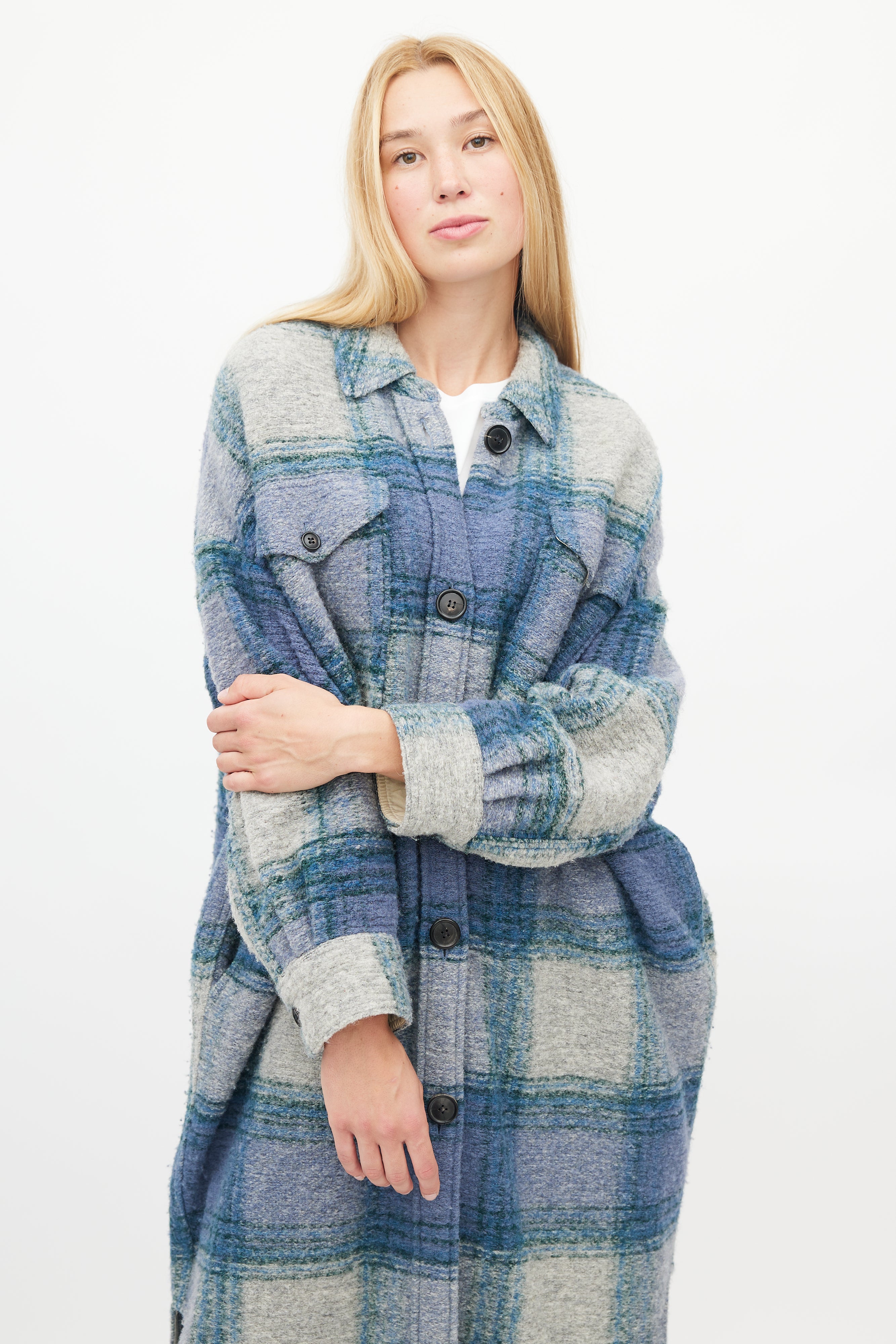 Blue & Grey Plaid Button Up Coat X-Small Size Guide
