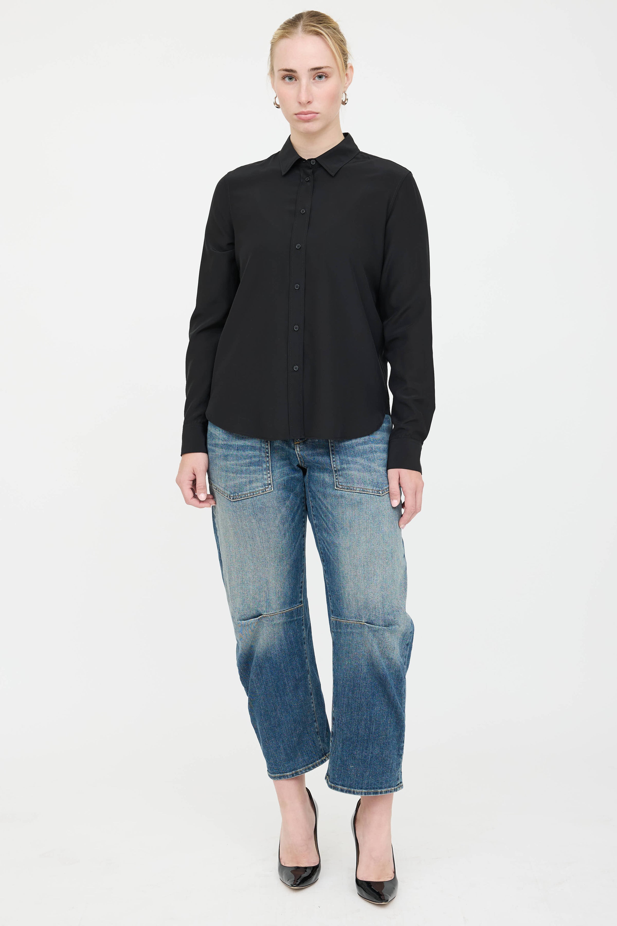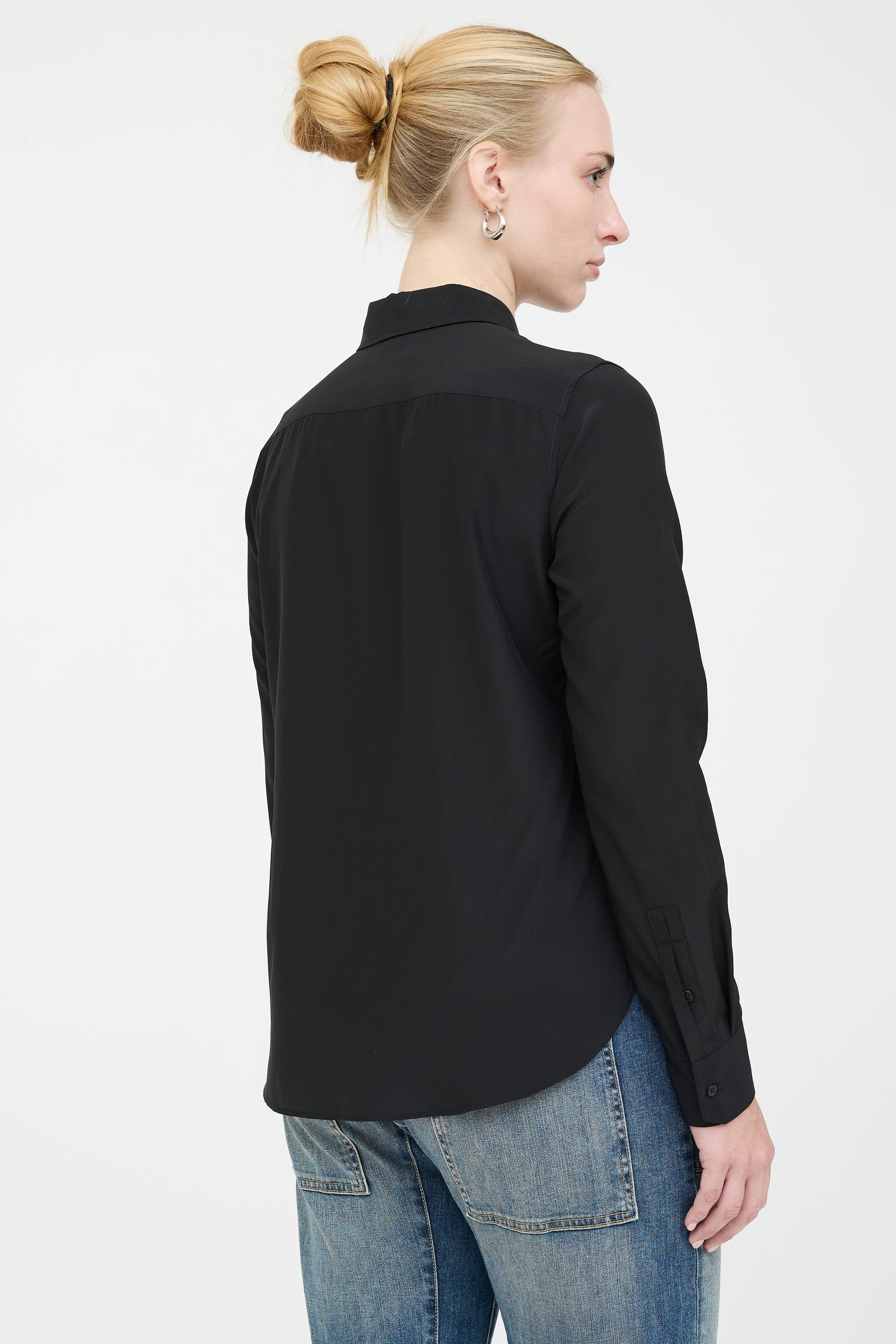 Pre-owned Nili Lotan black long sleeve shirt featuring pointed collar, button front, and buttoned cuffs.