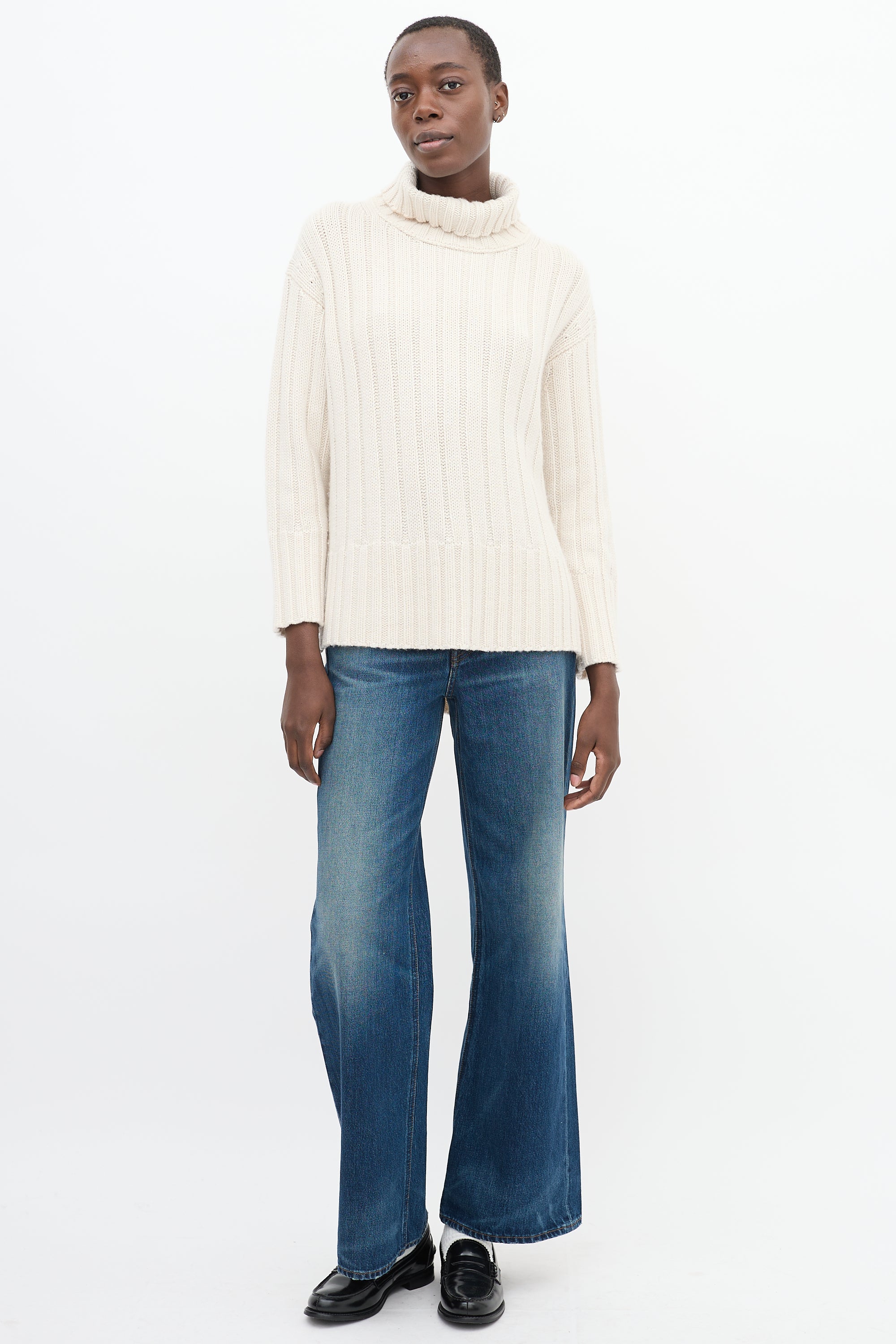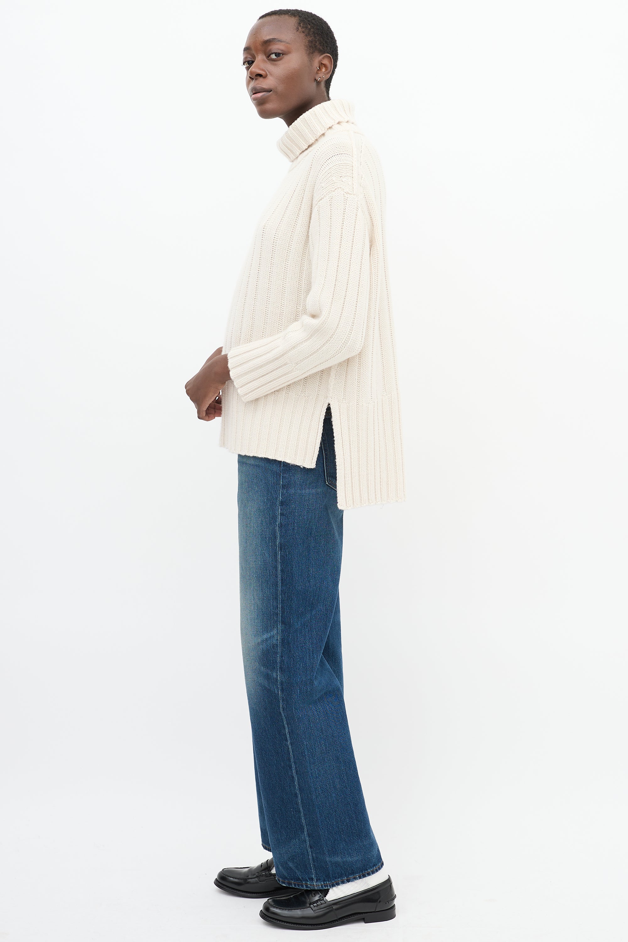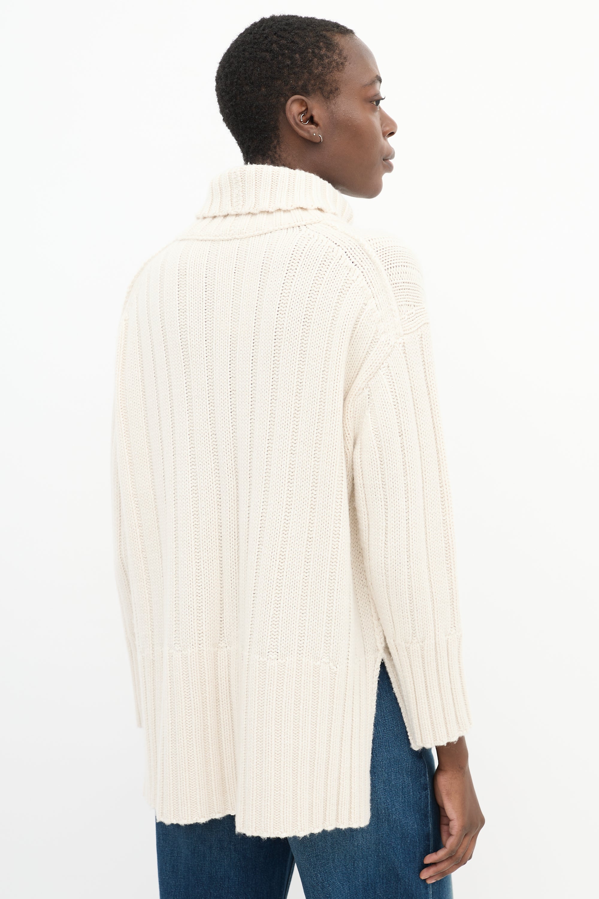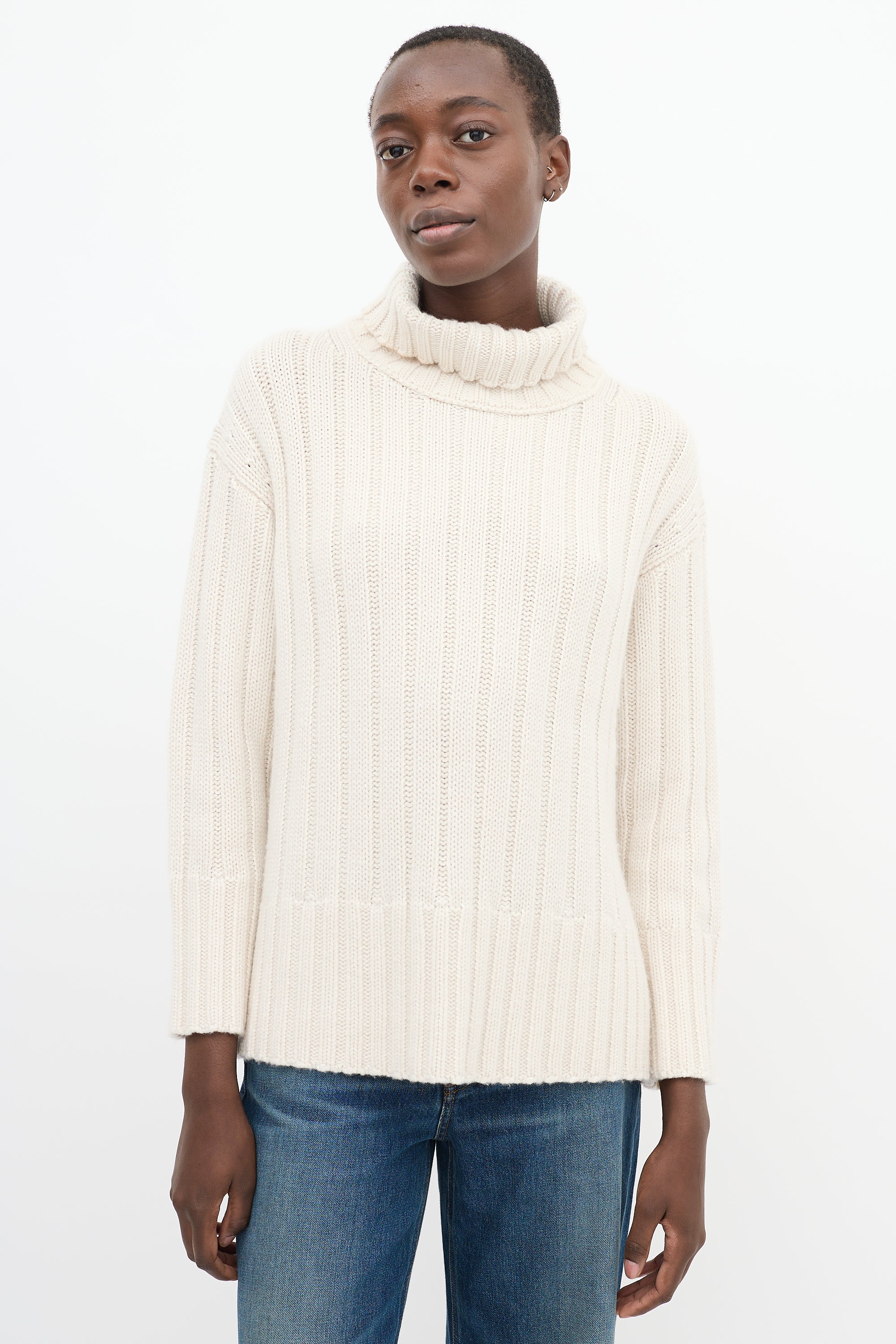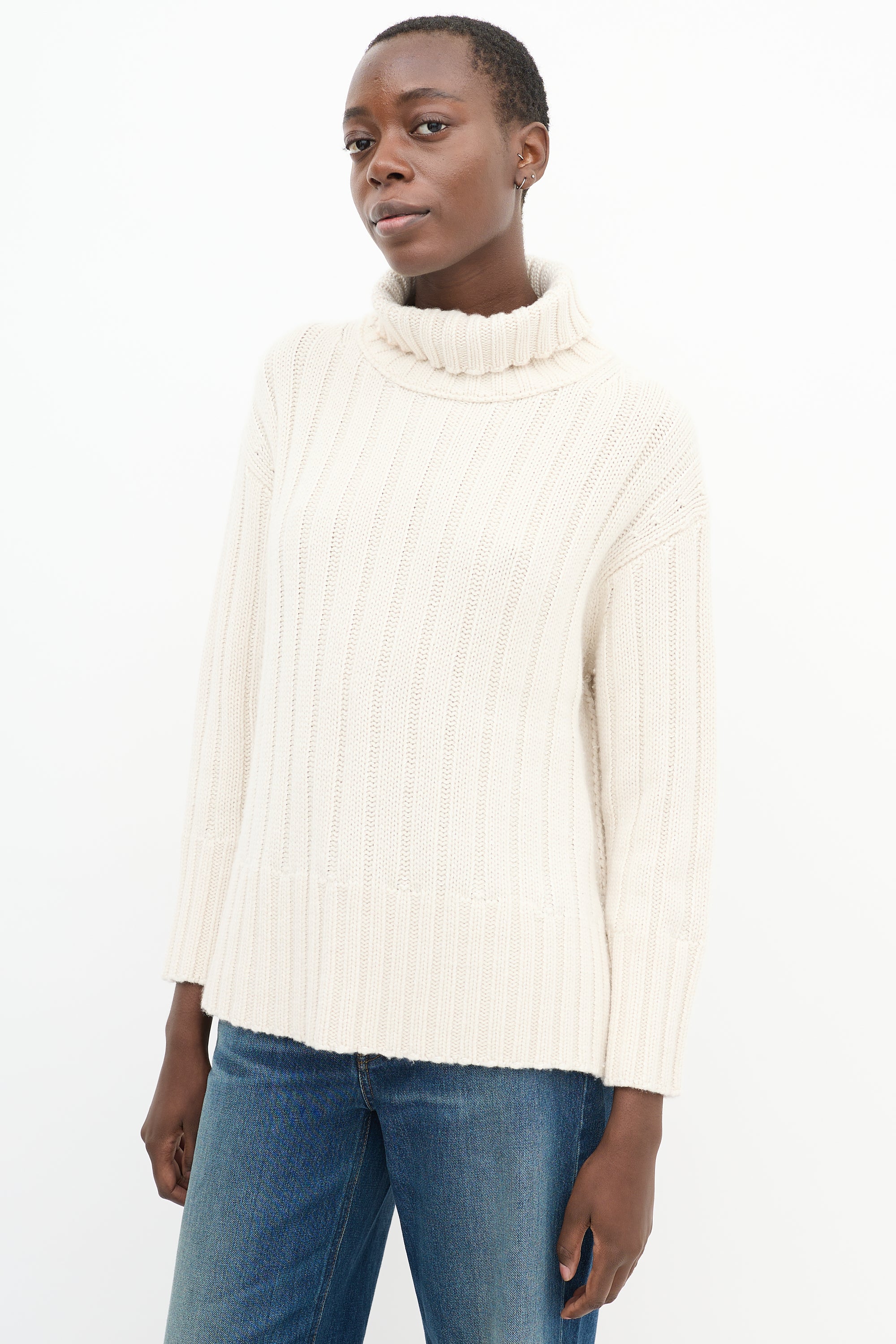 Cream Cashmere Knit High Low Turtleneck Sweater Small Size Guide