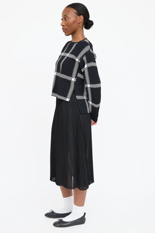 Pre-owned Stella McCartney white and black knit long sleeve top featuring ribbed round collar, side vents, high low hemline and cuffed sleeves.