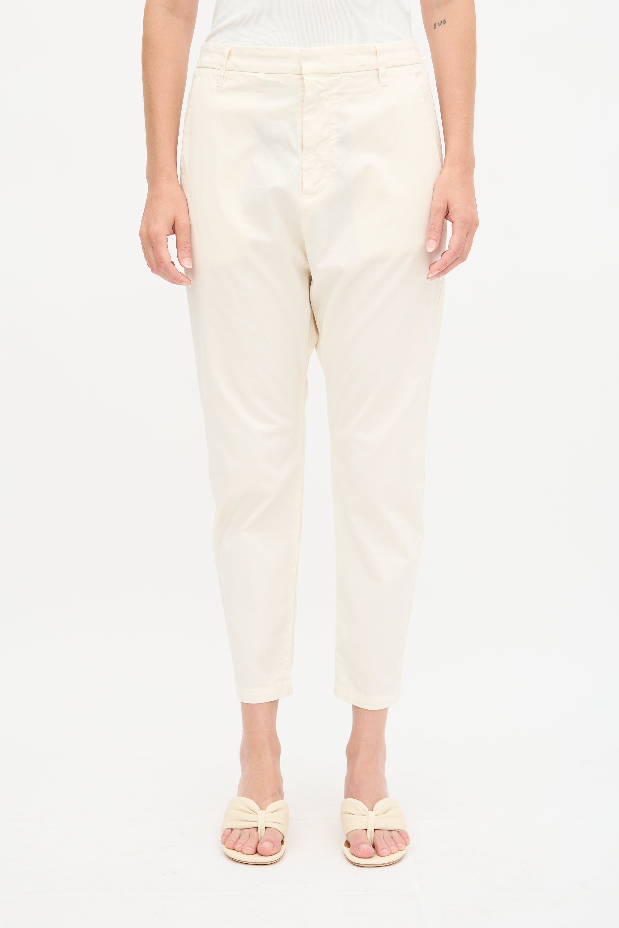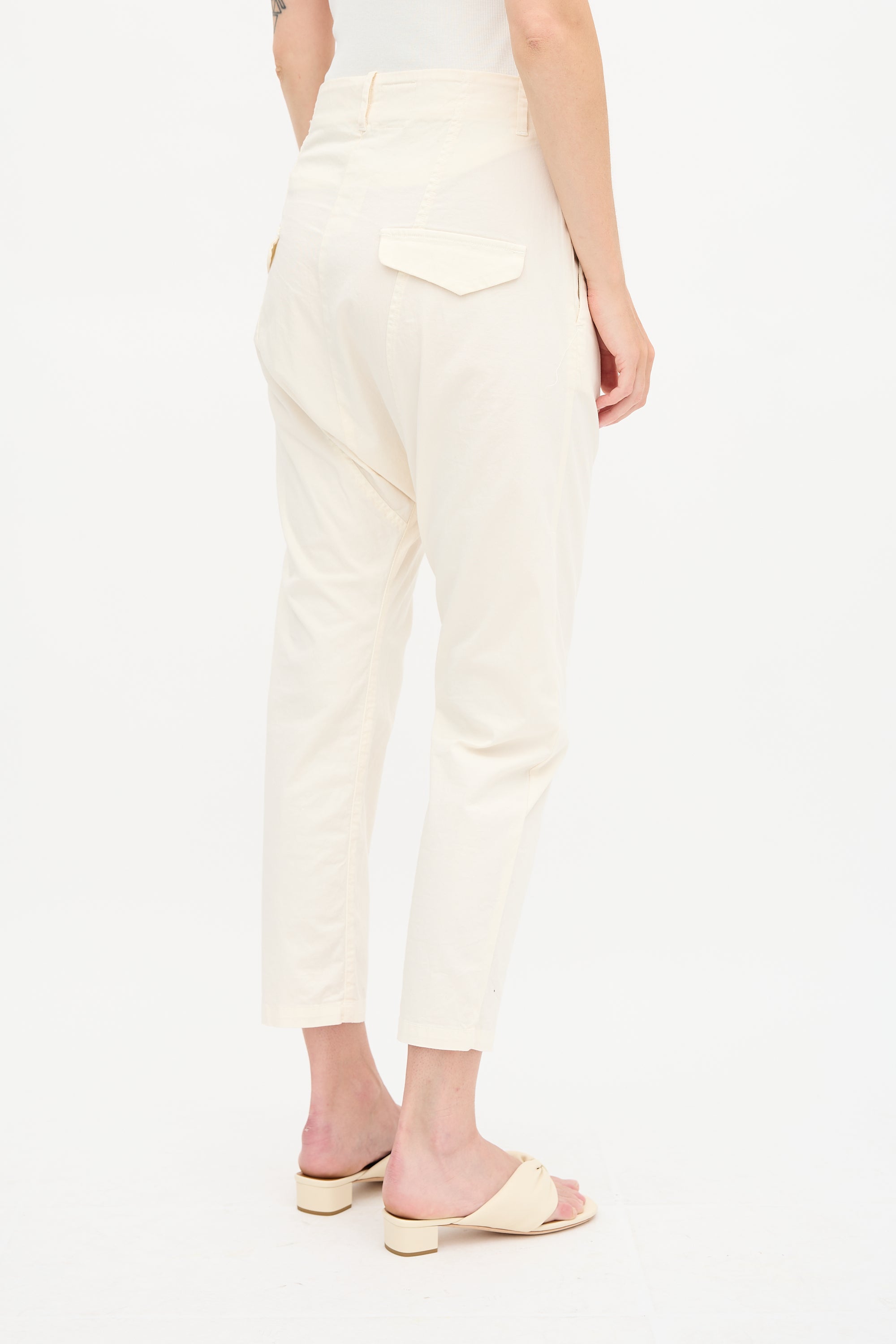 Pre-owned Nili Lotan cream cotton twill Paris cropped trousers featuring dropped seat, tapered leg, four pocket styling, and zip pocket.