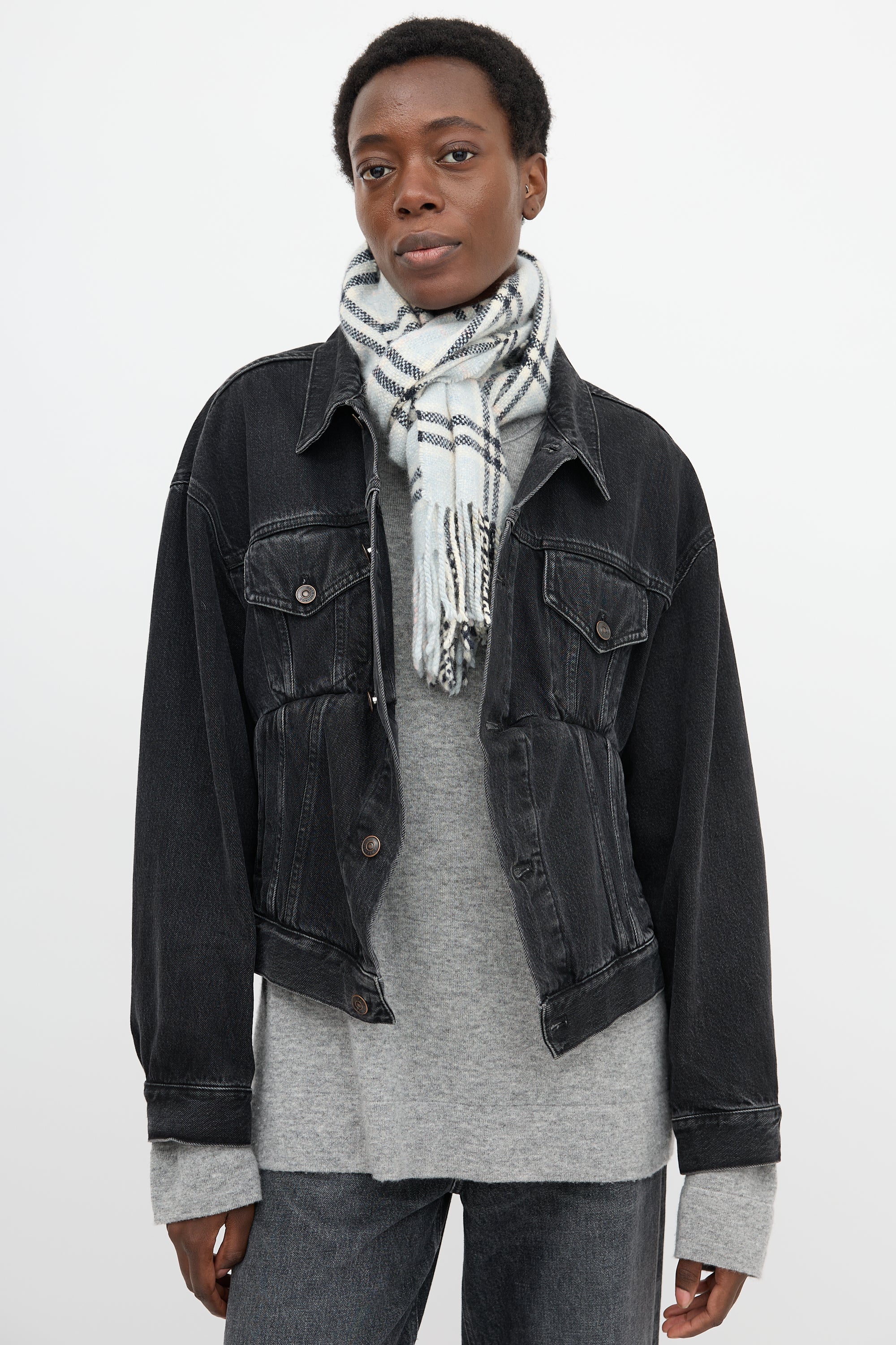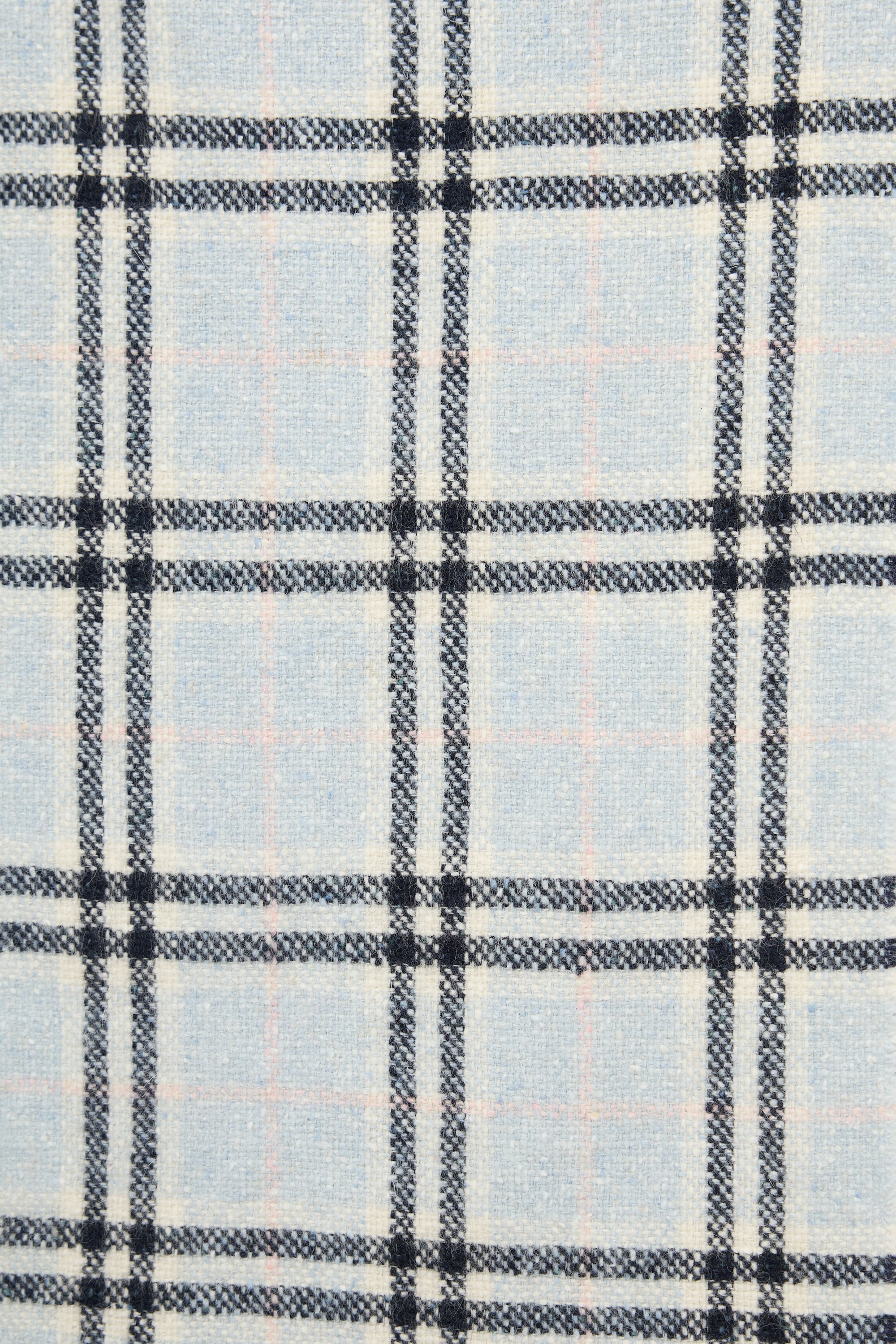 Pre-owned Burberry blue merino wool and angora blend scarf featuring a multicolour signature check pattern and fringe trim.
