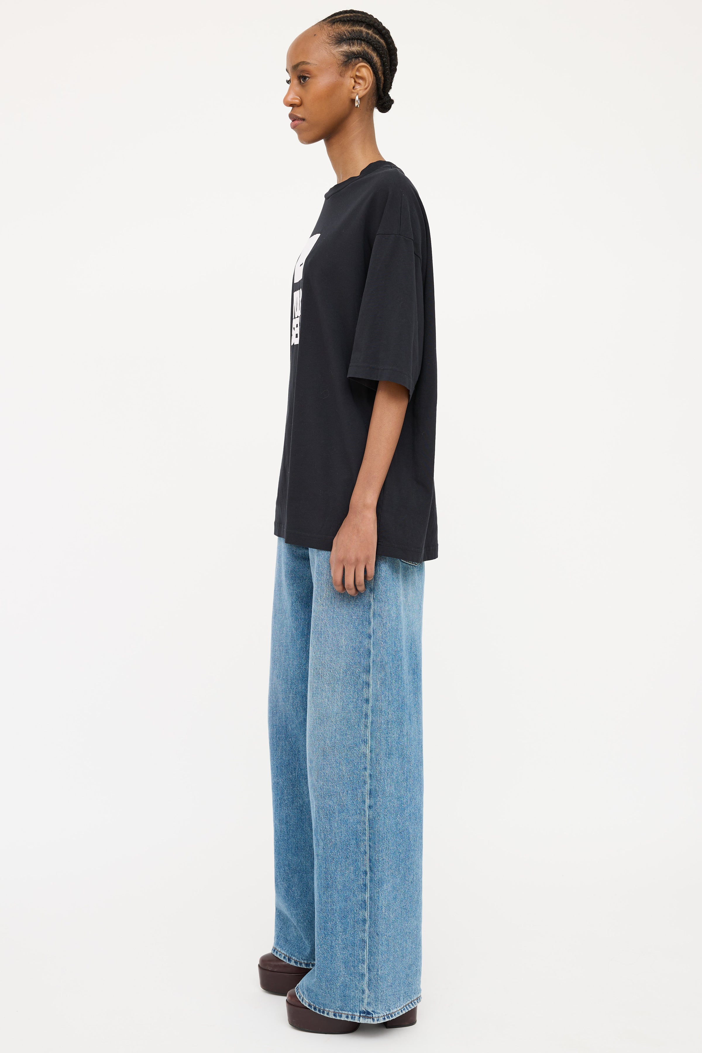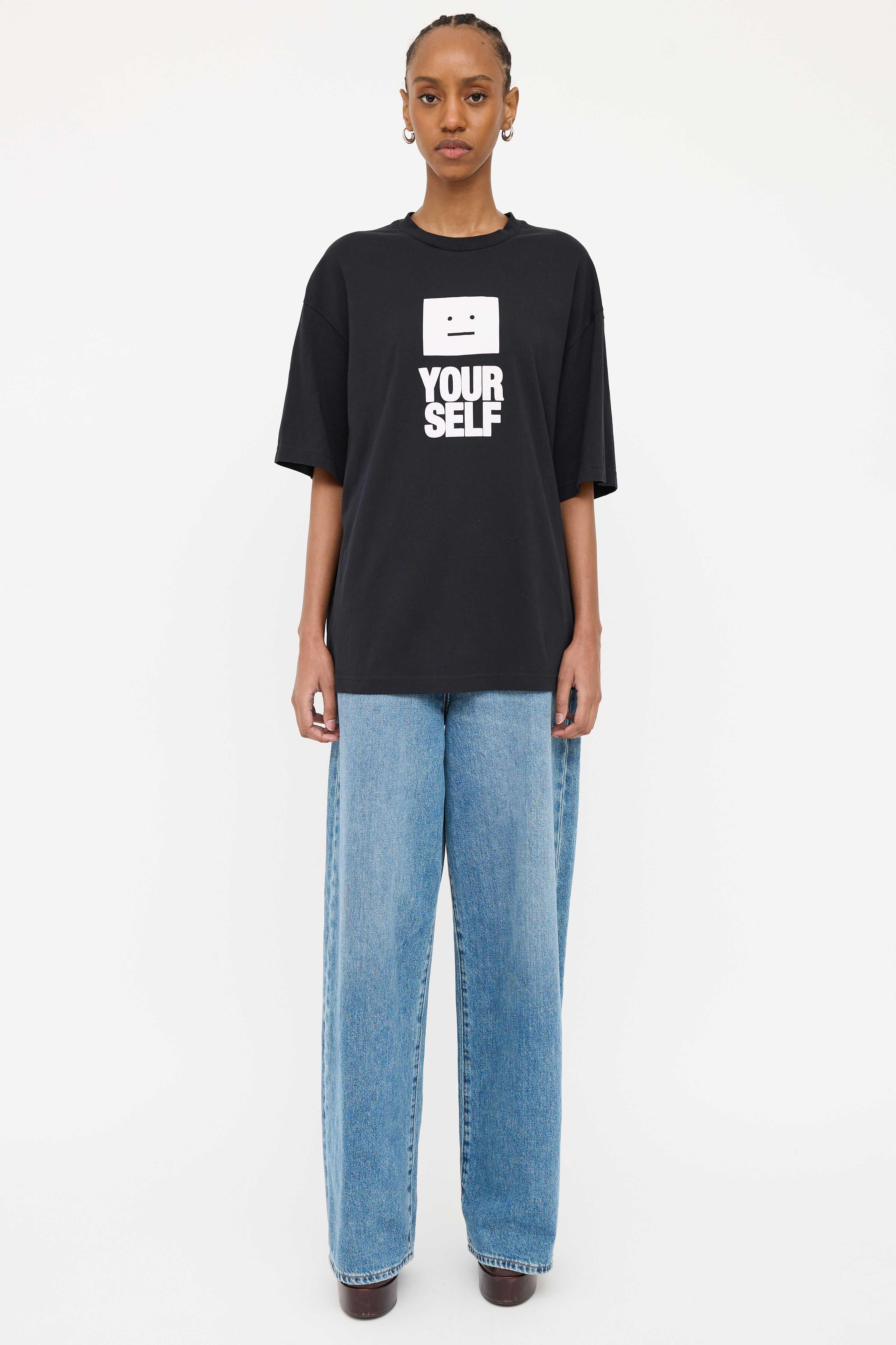 Pre-owned Acne Studios black short sleeve t-shirt featuring crew neck and white rubberized graphic across front.