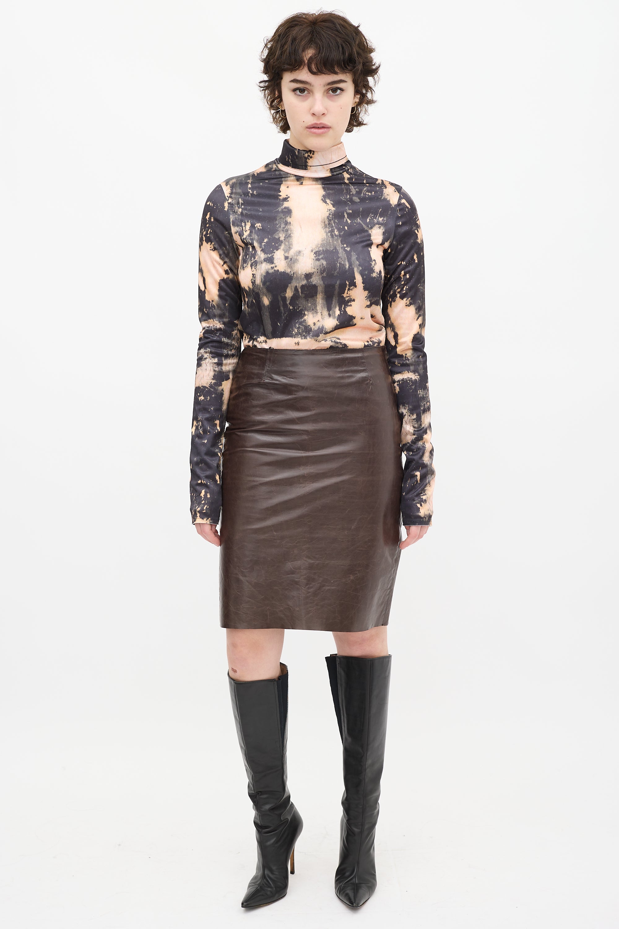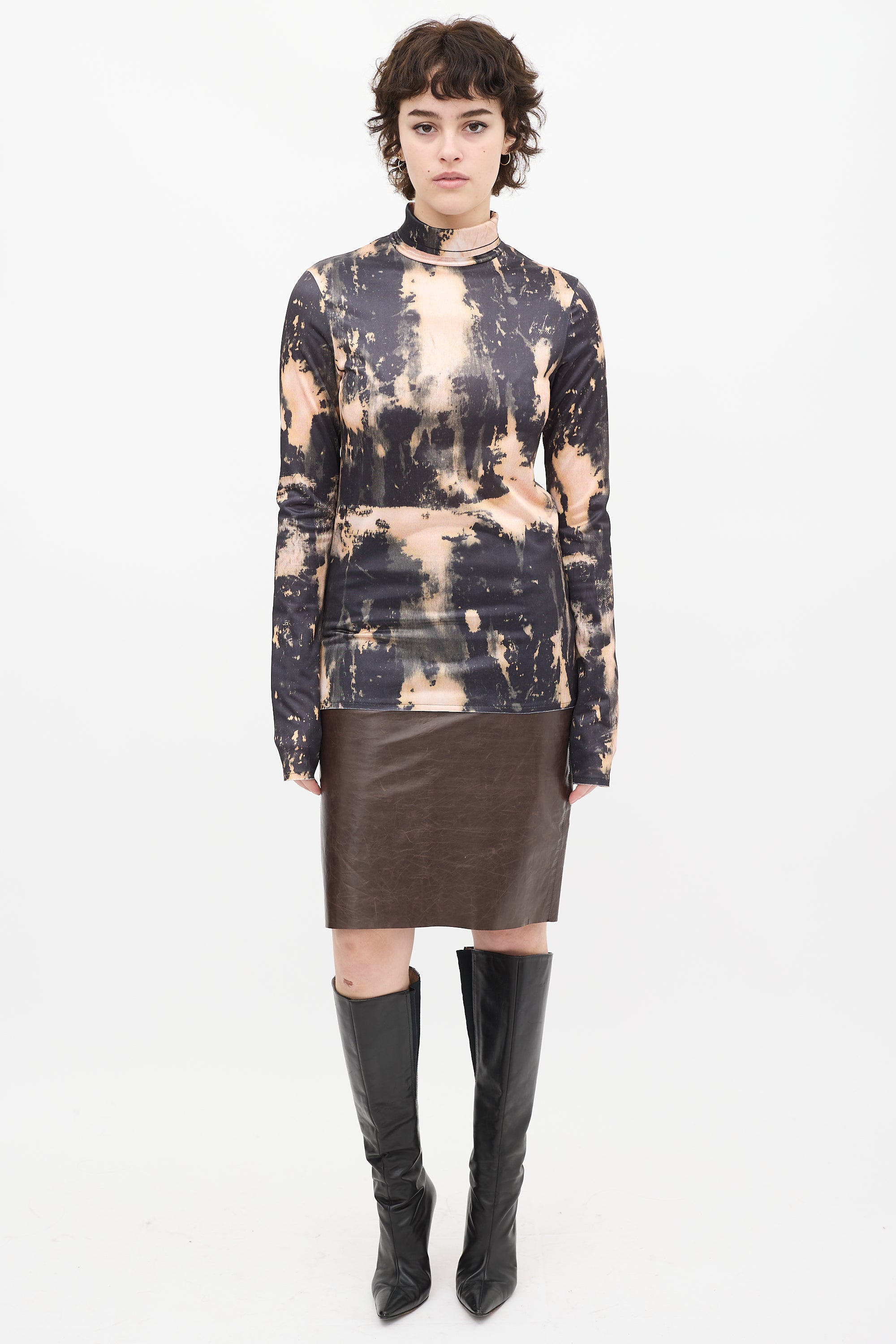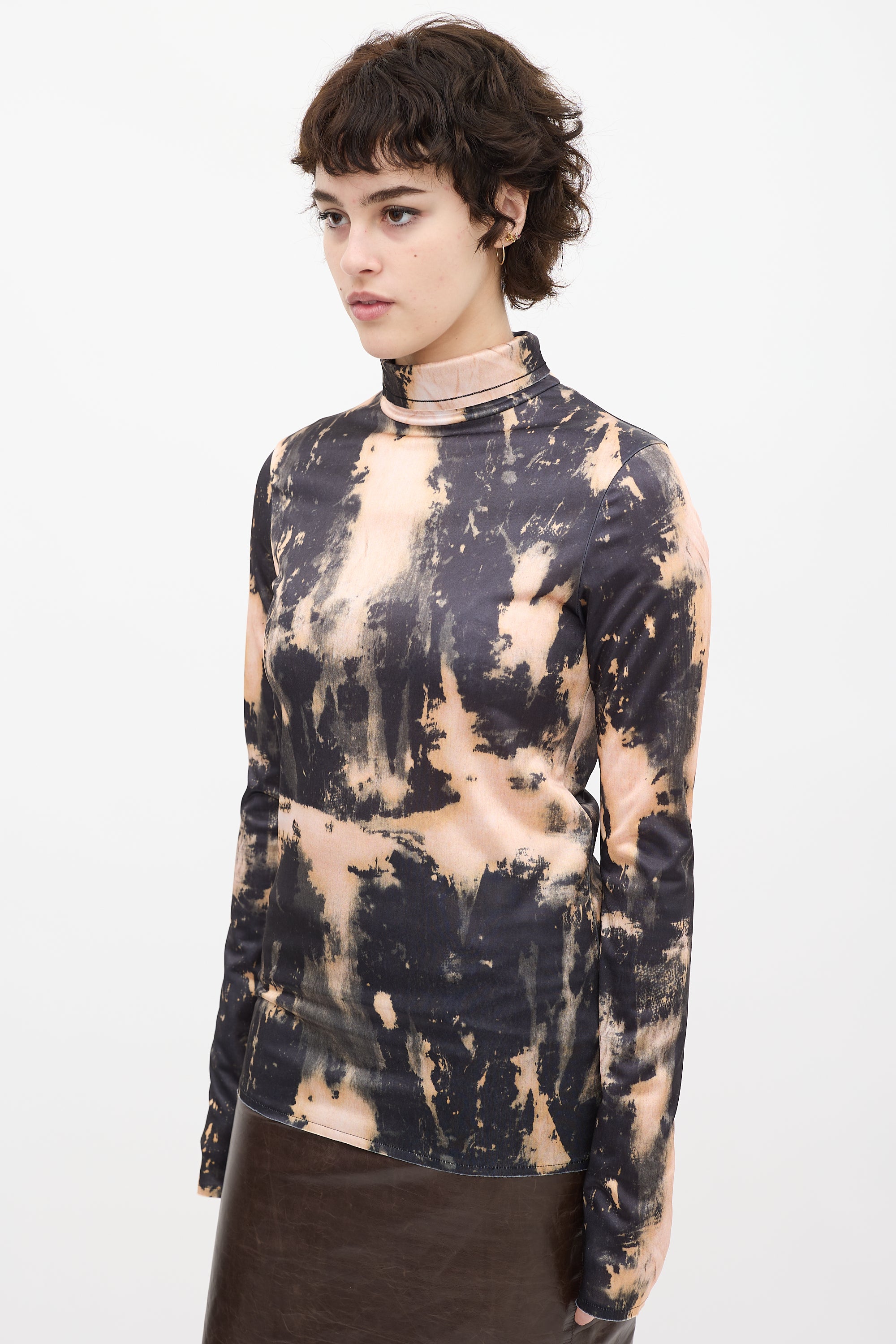 Pre-owned Acne Studios black and orange tie dye top featuring mock neck collar, long sleeves, and concealed zip closure at back.