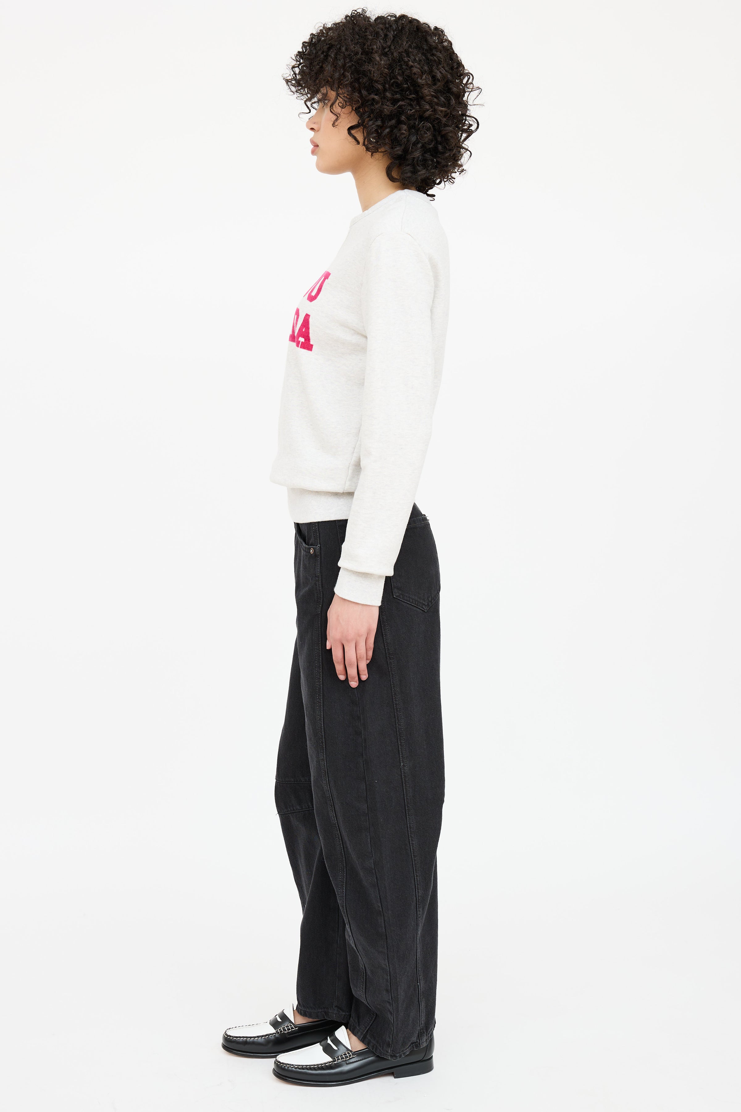 Pre-owned Ami Paris grey and pink logo long sleeve crewneck featuring round neckline, pink felt text at front and embroidered logo at back of neck.