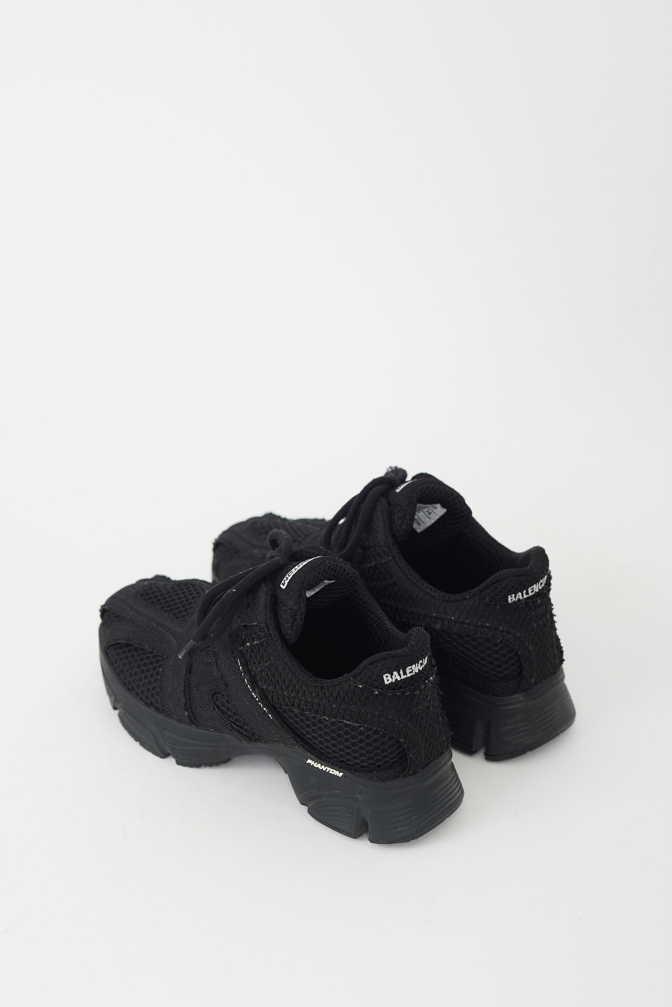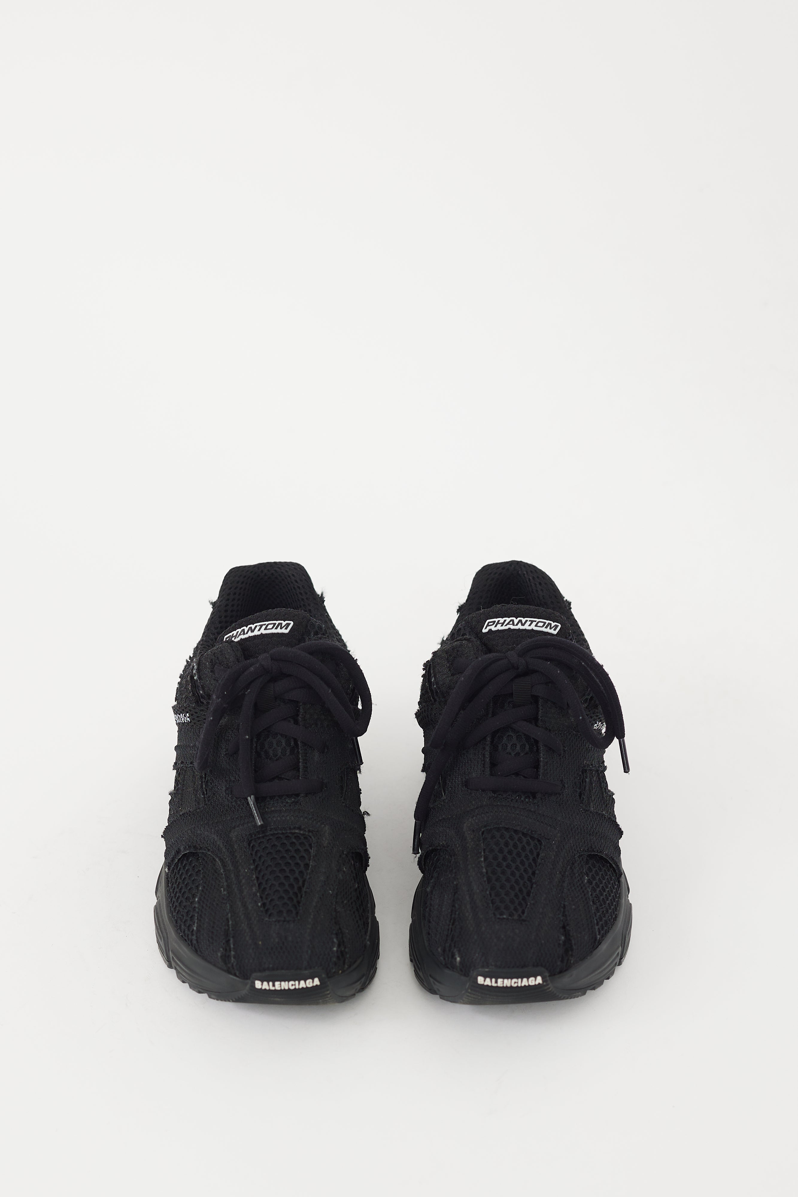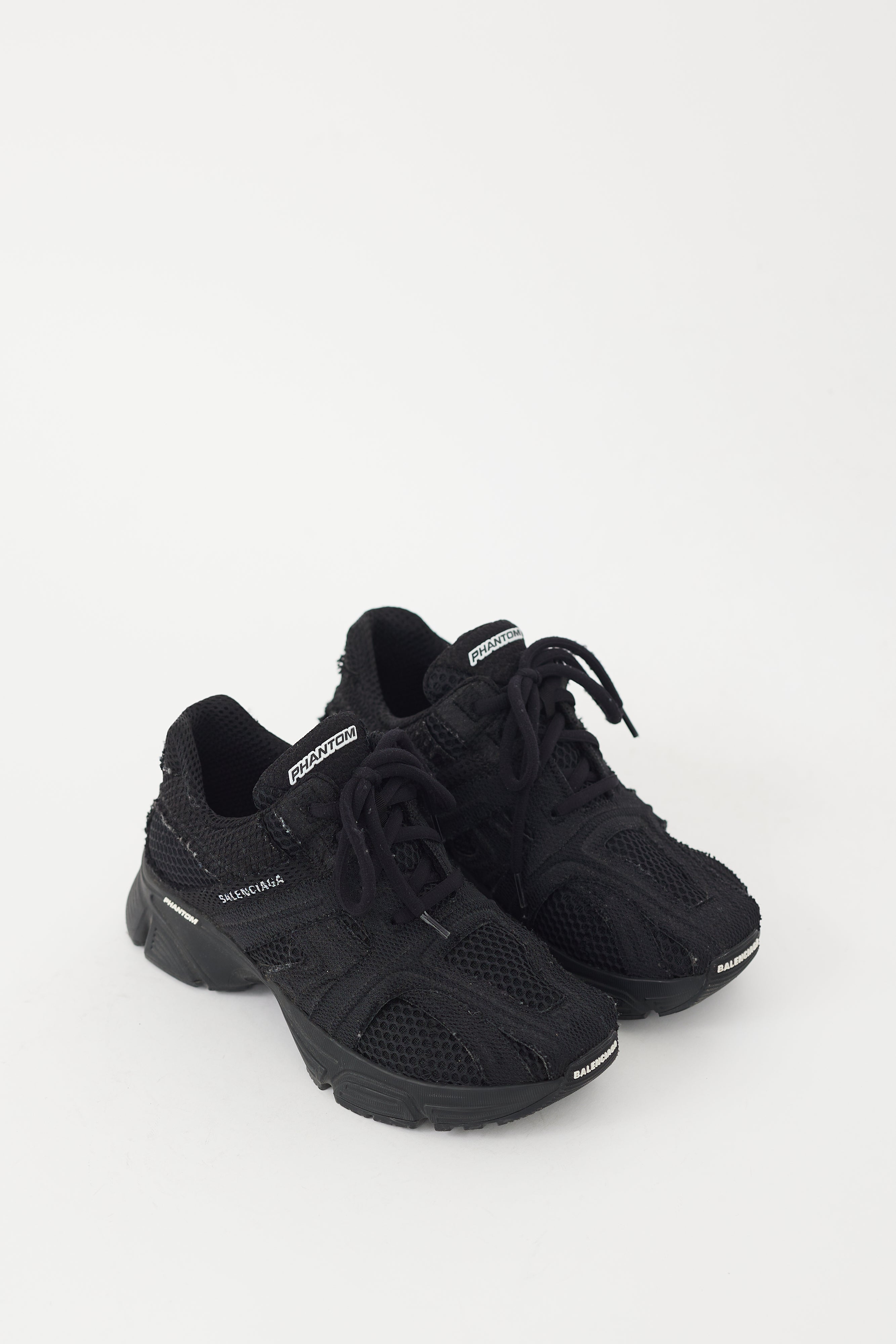 Pre-owned Balenciaga black Phantom sneakers featuring a rounded toe, mesh upper, lace up front, tonal debossed size number at toe, rubberized logo at front toe, embroidered logo at counter, printed logo at outer side, and rubberized 'Phantom' logo at outer midsole.