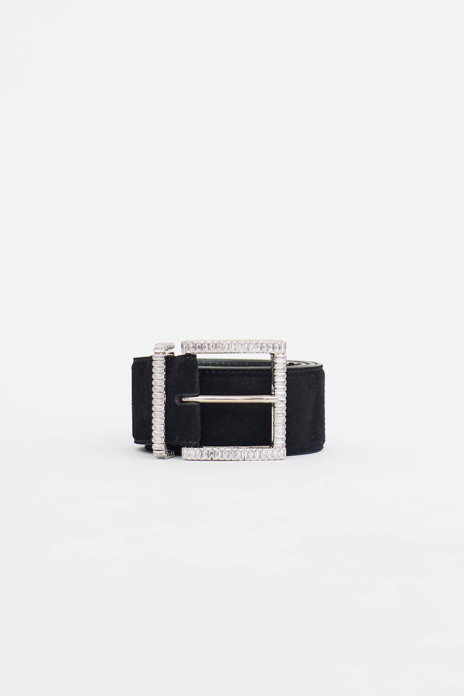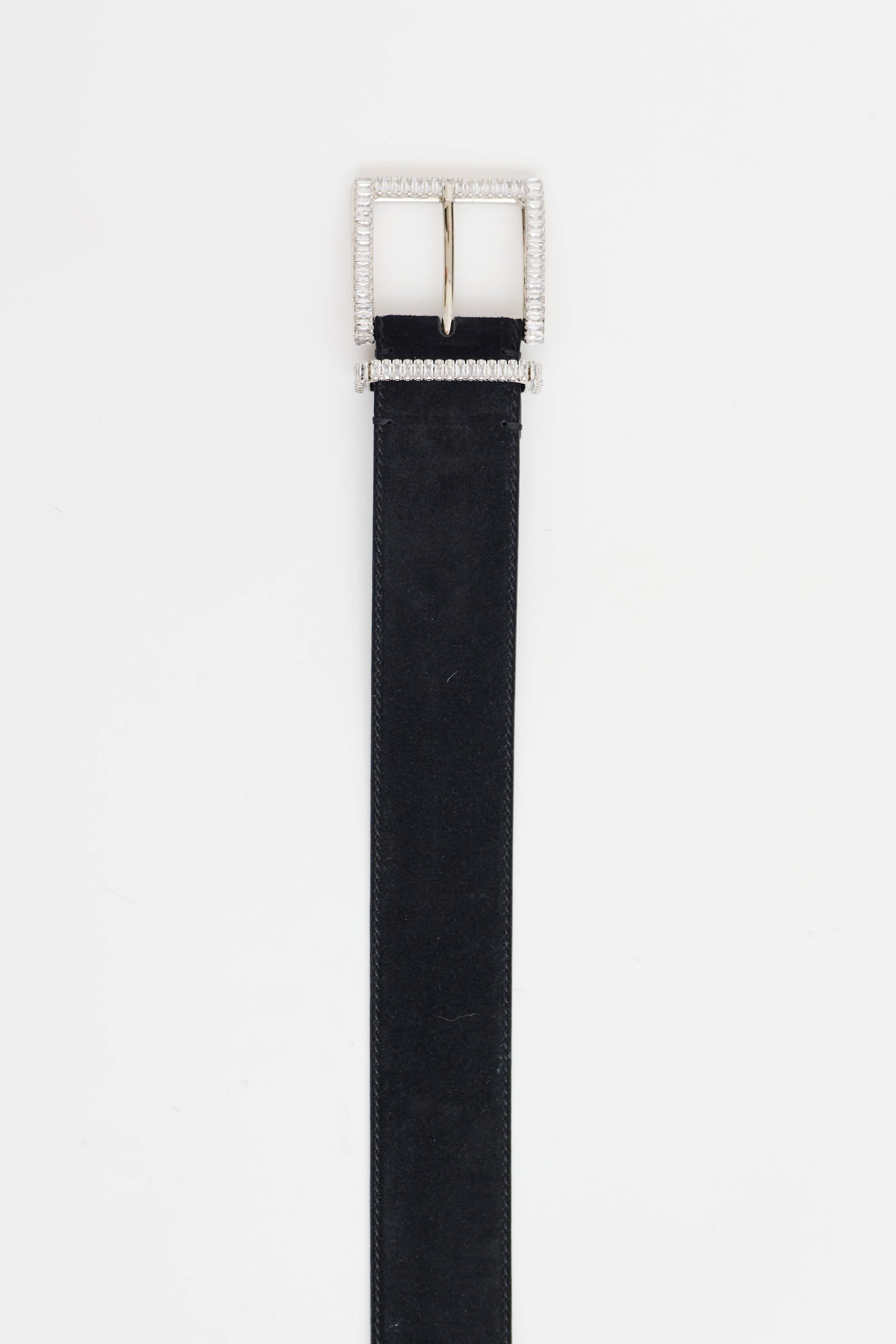 Pre-owned Ermanno Scervino black suede belt featuring crystal embellished buckle and silver tone hardware.